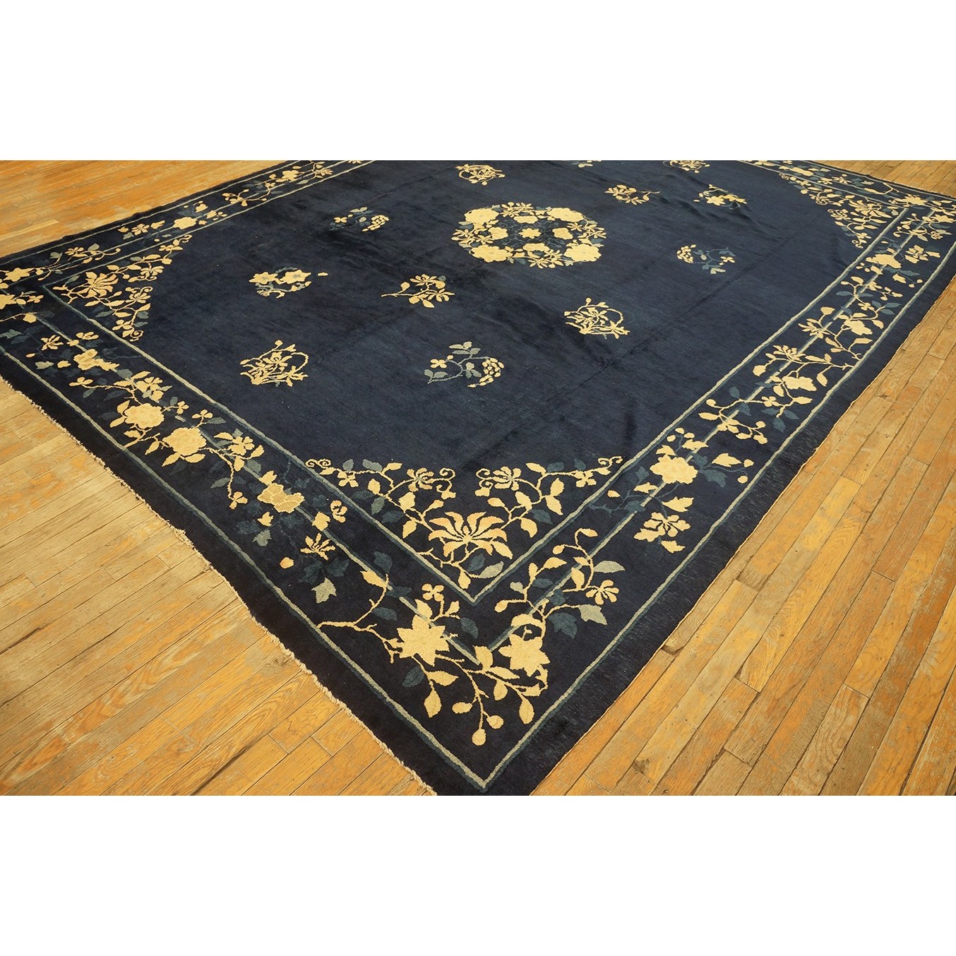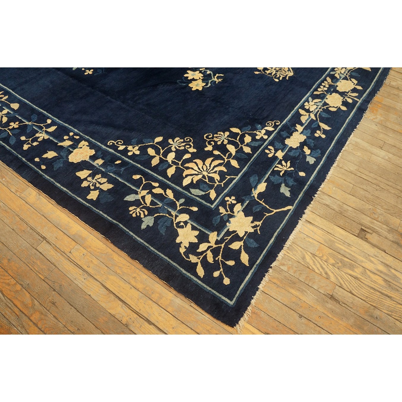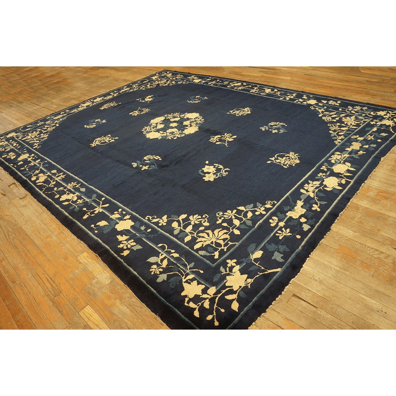DescriptionChineseCarpets made in China proper. See entries Ningshia, Peking, Art Deco. Chinese - PekingThe commercial Peking carpet is a later 19th century development, begun by importing weaves from Ningshia (see entry) to create and export industry aimed at Western markets. The foundation is cotton and the pile is a good quality carpet wool which takes dyes particularly well. The neat medium weave is in Persian (asymmetric) knots. Designs are strictly Chinese and the whole motif repertoire of Chinese art is employed. Blue and white is the most popular color combination and red is particularly rare. Sizes tend to 9 x 12 and larger, and few small pieces appear. For a short time in the early 1920s Persian designs were woven to capitalize on the death of new Iranian goods. The industry decimated by the Communist Revolution relocated to the Pearl River area. There is a good supply of antique carpets at reasonable prices. | |