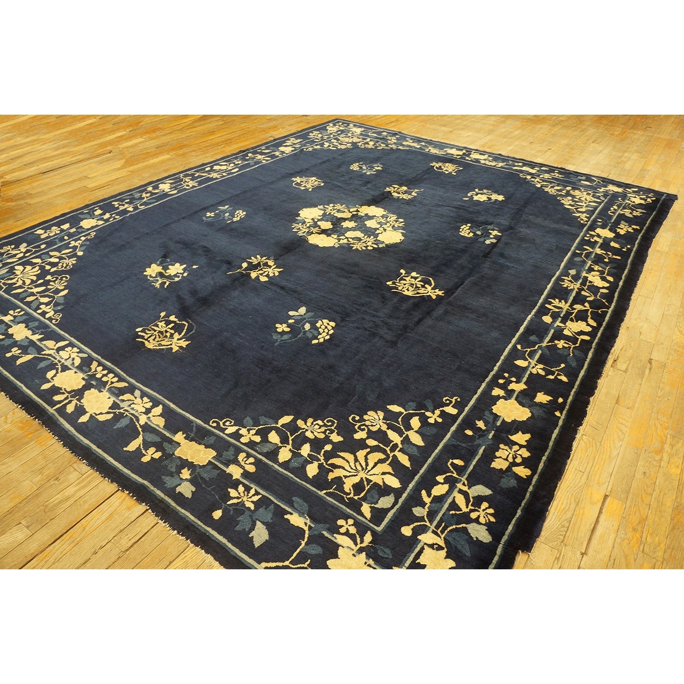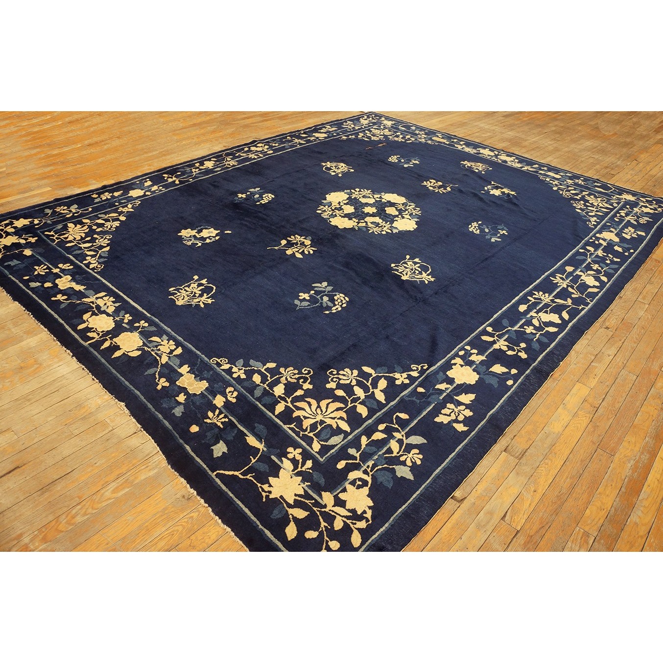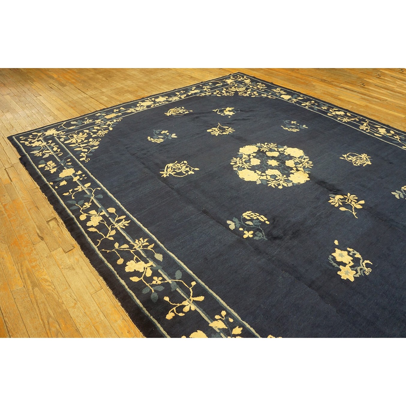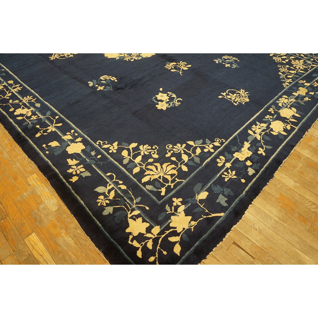 DescriptionChineseCarpets made in China proper. See entries Ningshia, Peking, Art Deco. Chinese - PekingThe commercial Peking carpet is a later 19th century development, begun by importing weaves from Ningshia (see entry) to create and export industry aimed at Western markets. The foundation is cotton and the pile is a good quality carpet wool which takes dyes particularly well. The neat medium weave is in Persian (asymmetric) knots. Designs are strictly Chinese and the whole motif repertoire of Chinese art is employed. Blue and white is the most popular color combination and red is particularly rare. Sizes tend to 9 x 12 and larger, and few small pieces appear. For a short time in the early 1920s Persian designs were woven to capitalize on the death of new Iranian goods. The industry decimated by the Communist Revolution relocated to the Pearl River area. There is a good supply of antique carpets at reasonable prices. | |
