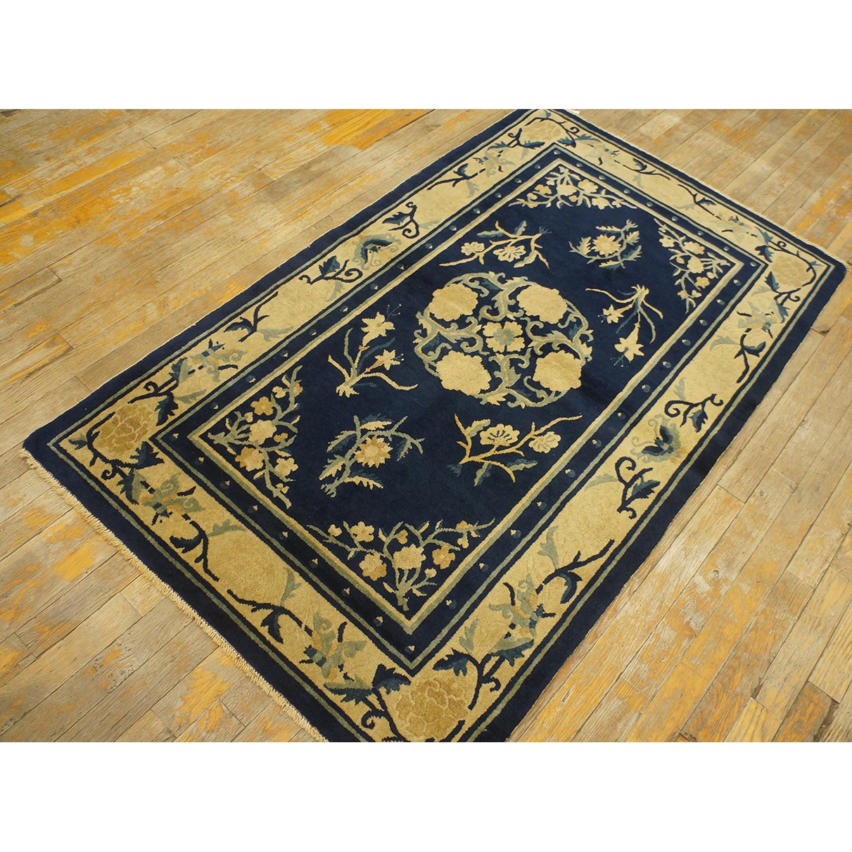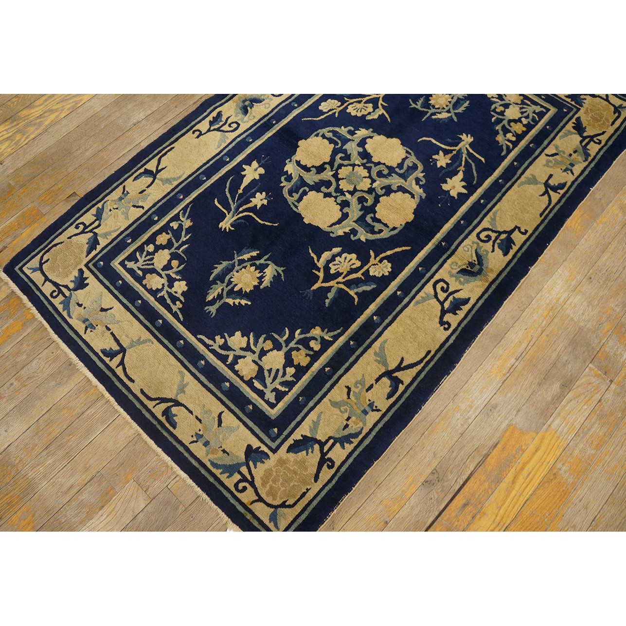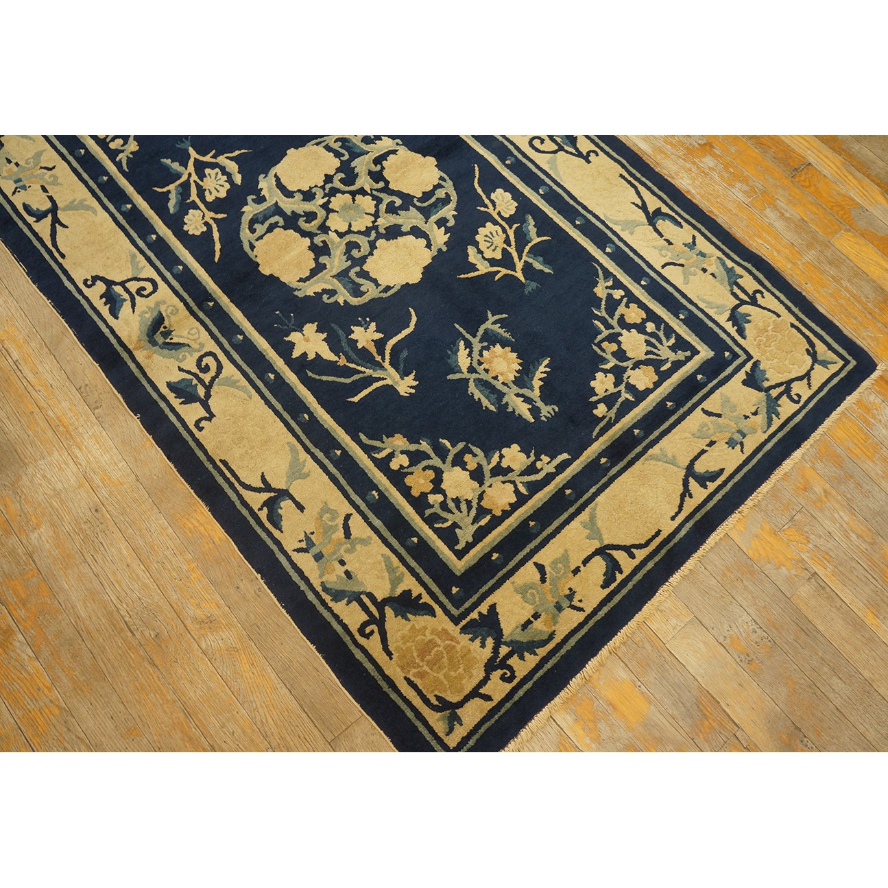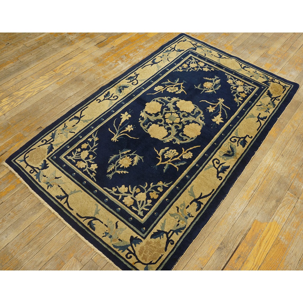 DescriptionChineseCarpets made in China proper. See entries Ningshia, Peking, Art Deco. Chinese - PekingThe commercial Peking carpet is a later 19th century development, begun by importing weaves from Ningshia (see entry) to create and export industry aimed at Western markets. The foundation is cotton and the pile is a good quality carpet wool which takes dyes particularly well. The neat medium weave is in Persian (asymmetric) knots. Designs are strictly Chinese and the whole motif repertoire of Chinese art is employed. Blue and white is the most popular color combination and red is particularly rare. Sizes tend to 9 x 12 and larger, and few small pieces appear. For a short time in the early 1920s Persian designs were woven to capitalize on the death of new Iranian goods. The industry decimated by the Communist Revolution relocated to the Pearl River area. There is a good supply of antique carpets at reasonable prices. | |
