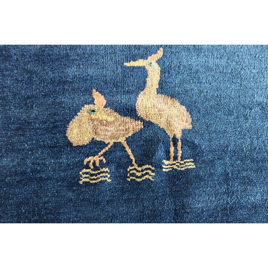 DescriptionChineseCarpets made in China proper. See entries Ningshia, Peking, Art Deco. Chinese - PekingThe commercial Peking carpet is a later 19th century development, begun by importing weaves from Ningshia (see entry) to create and export industry aimed at Western markets. The foundation is cotton and the pile is a good quality carpet wool which takes dyes particularly well. The neat medium weave is in Persian (asymmetric) knots. Designs are strictly Chinese and the whole motif repertoire of Chinese art is employed. Blue and white is the most popular color combination and red is particularly rare. Sizes tend to 9 x 12 and larger, and few small pieces appear. For a short time in the early 1920s Persian designs were woven to capitalize on the death of new Iranian goods. The industry decimated by the Communist Revolution relocated to the Pearl River area. There is a good supply of antique carpets at reasonable prices. | |