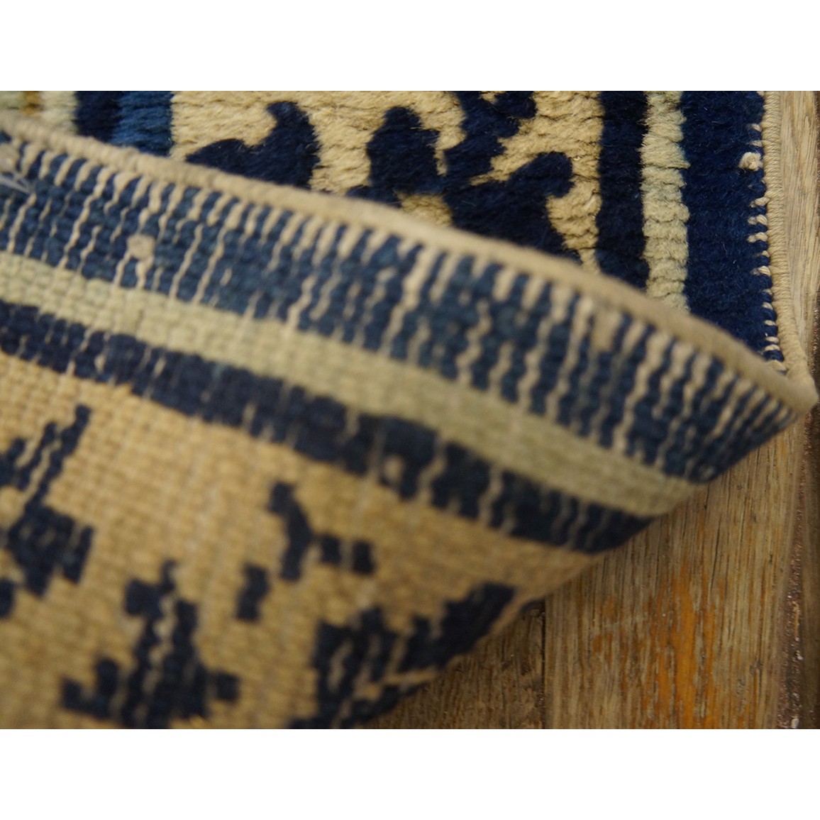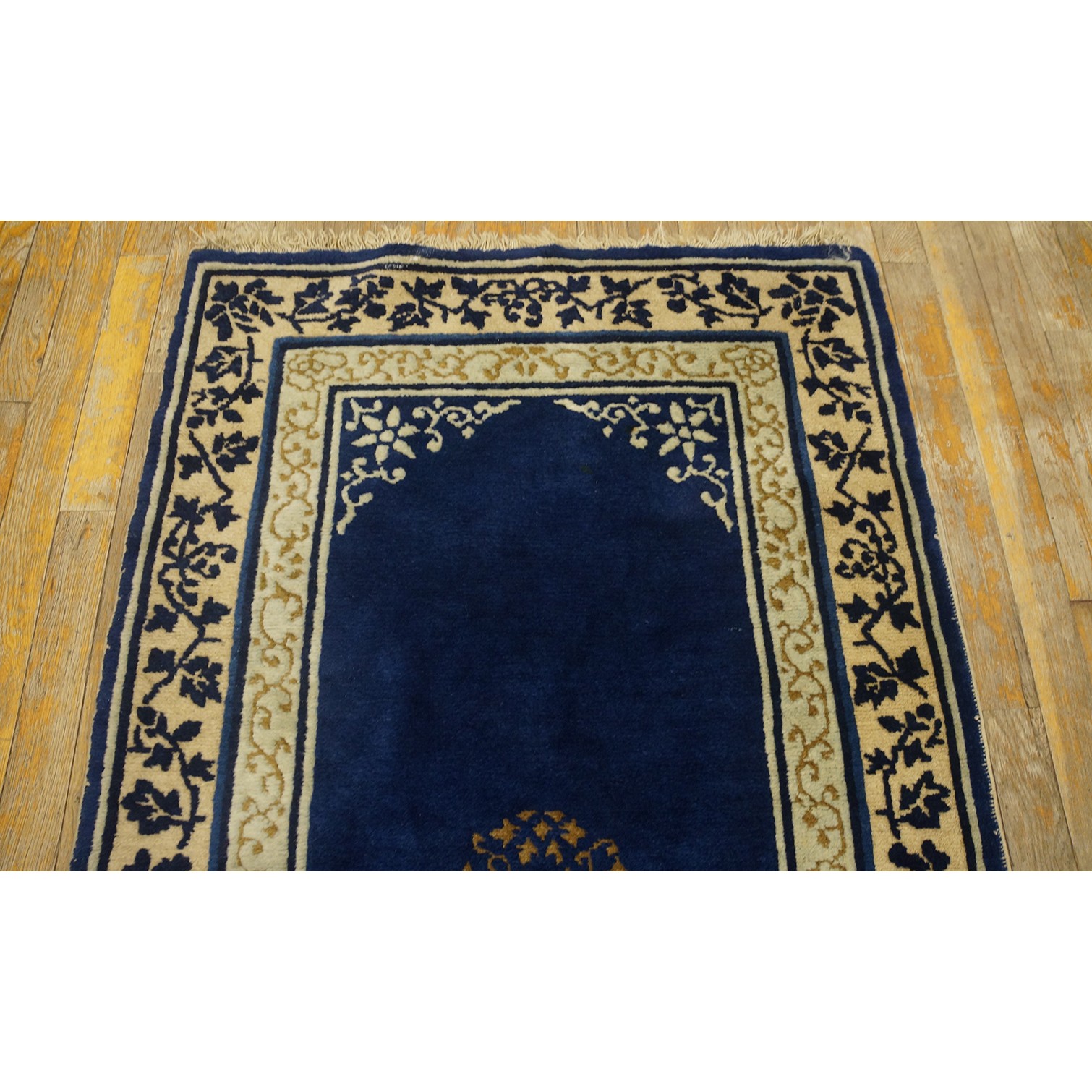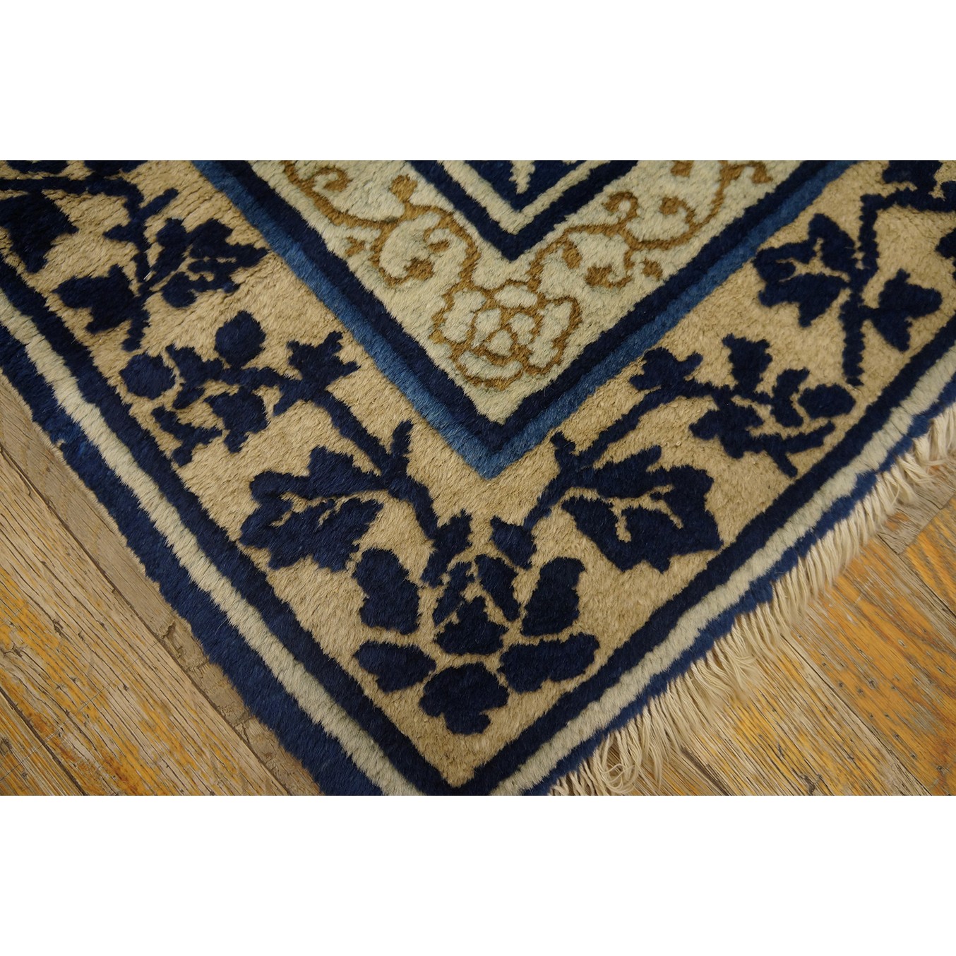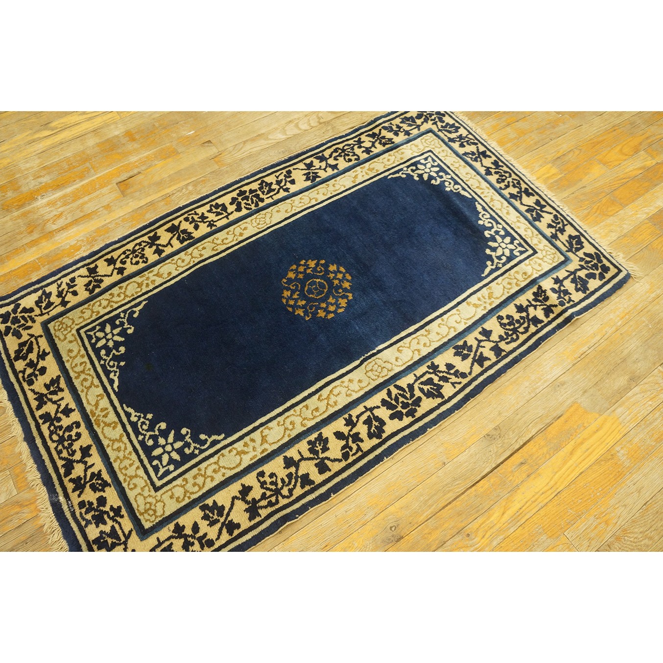 DescriptionChineseCarpets made in China proper. See entries Ningshia, Peking, Art Deco. Chinese - PekingThe commercial Peking carpet is a later 19th century development, begun by importing weaves from Ningshia (see entry) to create and export industry aimed at Western markets. The foundation is cotton and the pile is a good quality carpet wool which takes dyes particularly well. The neat medium weave is in Persian (asymmetric) knots. Designs are strictly Chinese and the whole motif repertoire of Chinese art is employed. Blue and white is the most popular color combination and red is particularly rare. Sizes tend to 9 x 12 and larger, and few small pieces appear. For a short time in the early 1920s Persian designs were woven to capitalize on the death of new Iranian goods. The industry decimated by the Communist Revolution relocated to the Pearl River area. There is a good supply of antique carpets at reasonable prices. | |