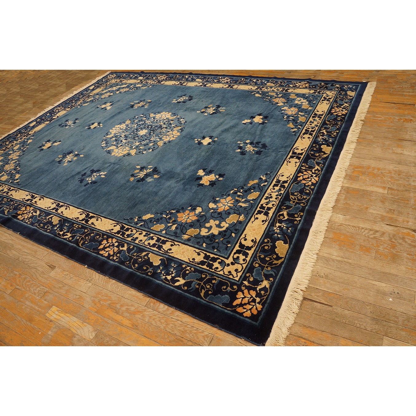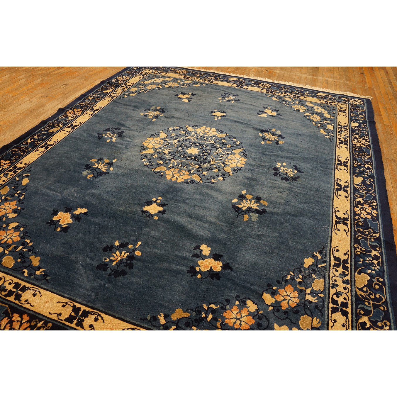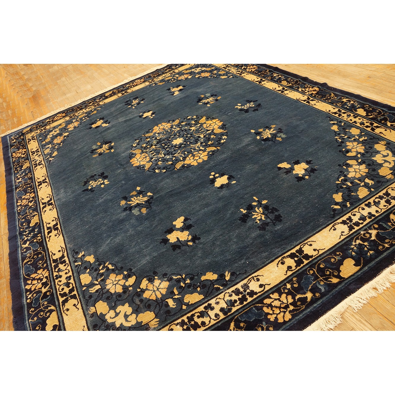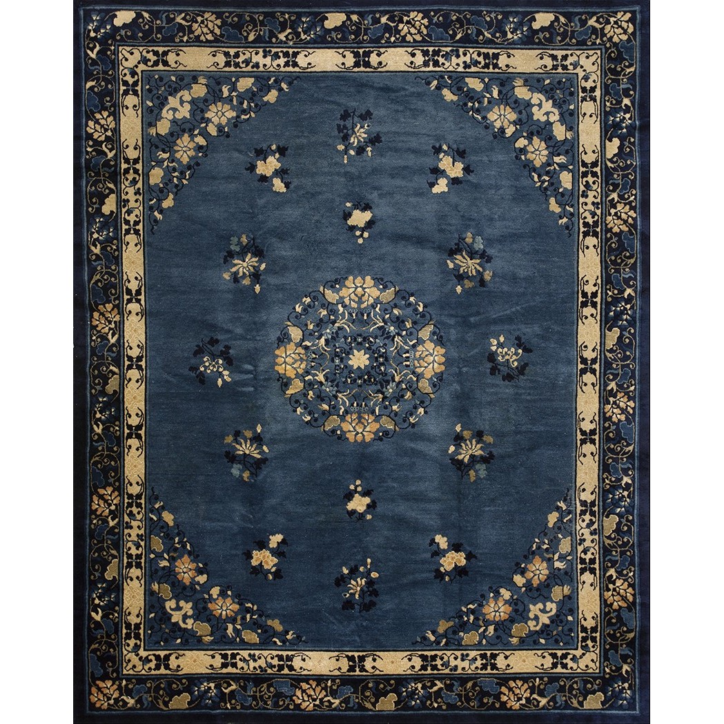 DescriptionChineseCarpets made in China proper. See entries Ningshia, Peking, Art Deco. Chinese - PekingThe commercial Peking carpet is a later 19th century development, begun by importing weaves from Ningshia (see entry) to create and export industry aimed at Western markets. The foundation is cotton and the pile is a good quality carpet wool which takes dyes particularly well. The neat medium weave is in Persian (asymmetric) knots. Designs are strictly Chinese and the whole motif repertoire of Chinese art is employed. Blue and white is the most popular color combination and red is particularly rare. Sizes tend to 9 x 12 and larger, and few small pieces appear. For a short time in the early 1920s Persian designs were woven to capitalize on the death of new Iranian goods. The industry decimated by the Communist Revolution relocated to the Pearl River area. There is a good supply of antique carpets at reasonable prices. | |