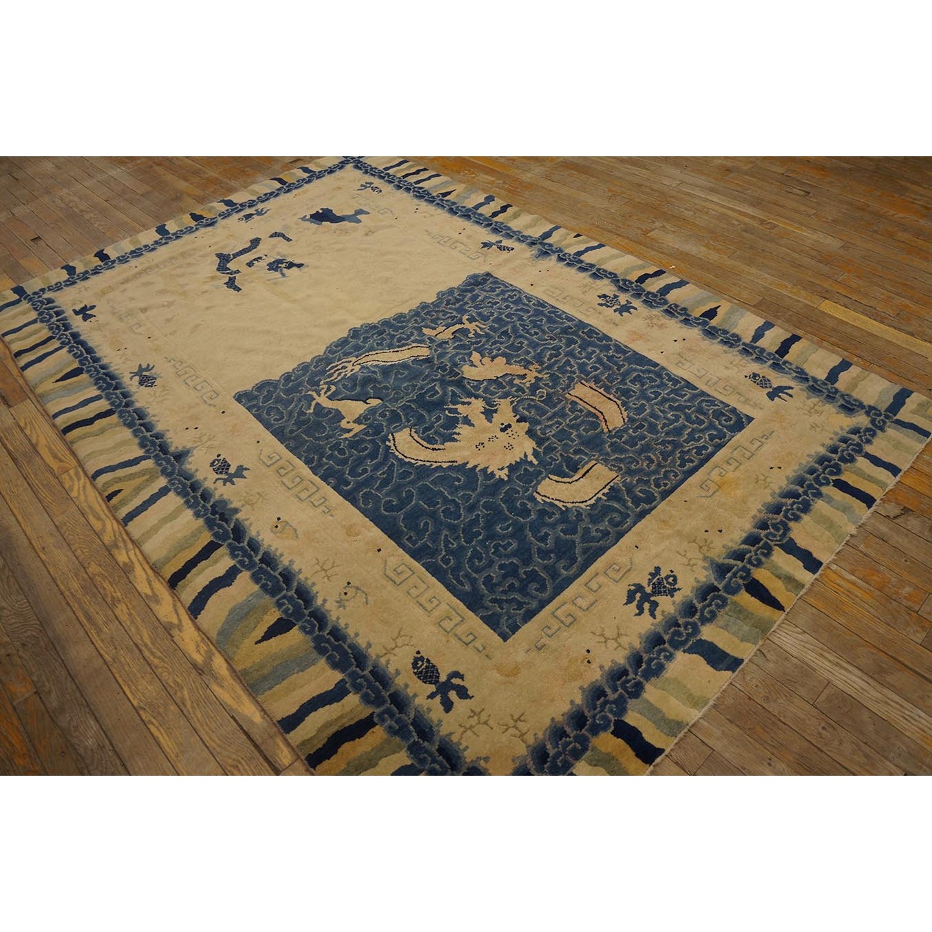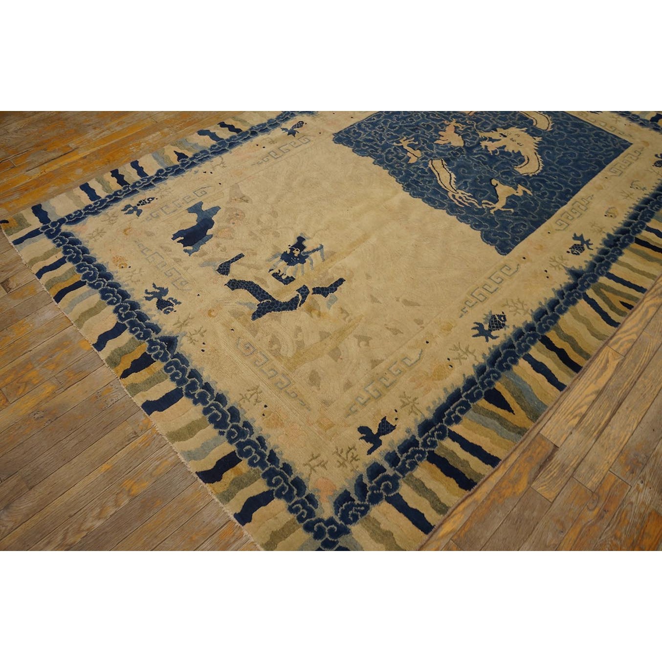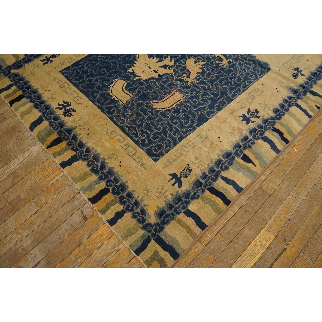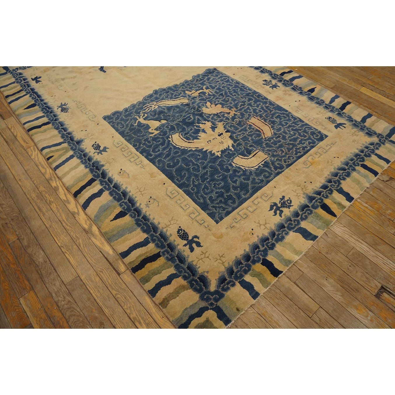 DescriptionChineseCarpets made in China proper. See entries Ningshia, Peking, Art Deco. Chinese - PekingThe commercial Peking carpet is a later 19th century development, begun by importing weaves from Ningshia (see entry) to create and export industry aimed at Western markets. The foundation is cotton and the pile is a good quality carpet wool which takes dyes particularly well. The neat medium weave is in Persian (asymmetric) knots. Designs are strictly Chinese and the whole motif repertoire of Chinese art is employed. Blue and white is the most popular color combination and red is particularly rare. Sizes tend to 9 x 12 and larger, and few small pieces appear. For a short time in the early 1920s Persian designs were woven to capitalize on the death of new Iranian goods. The industry decimated by the Communist Revolution relocated to the Pearl River area. There is a good supply of antique carpets at reasonable prices. | |