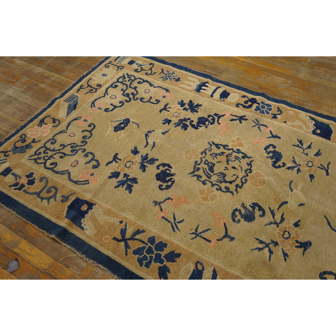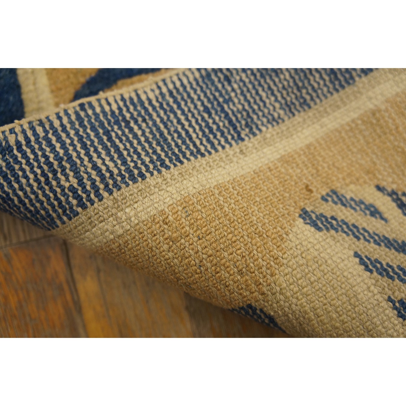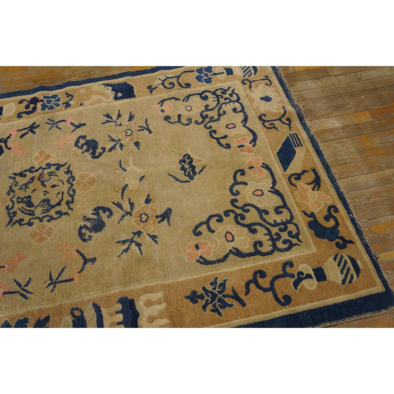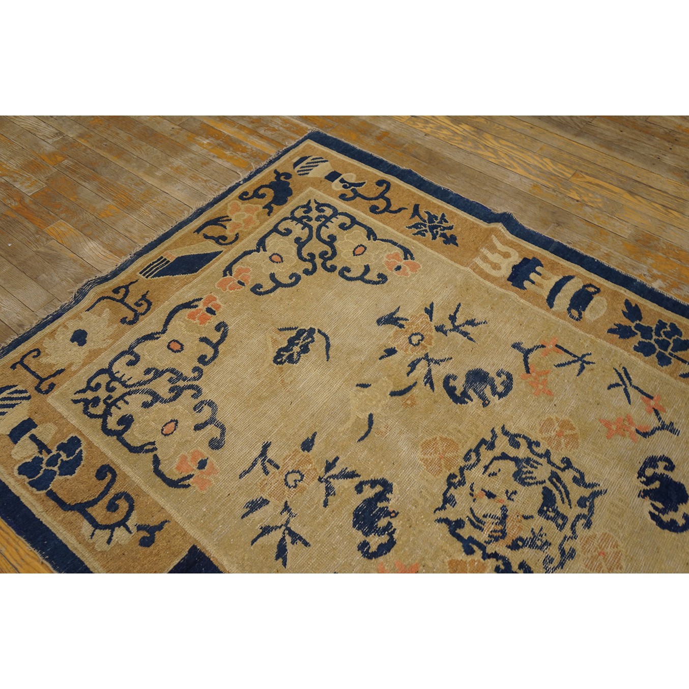 DescriptionChineseCarpets made in China proper. See entries Ningshia, Peking, Art Deco. Chinese - PekingThe commercial Peking carpet is a later 19th century development, begun by importing weaves from Ningshia (see entry) to create and export industry aimed at Western markets. The foundation is cotton and the pile is a good quality carpet wool which takes dyes particularly well. The neat medium weave is in Persian (asymmetric) knots. Designs are strictly Chinese and the whole motif repertoire of Chinese art is employed. Blue and white is the most popular color combination and red is particularly rare. Sizes tend to 9 x 12 and larger, and few small pieces appear. For a short time in the early 1920s Persian designs were woven to capitalize on the death of new Iranian goods. The industry decimated by the Communist Revolution relocated to the Pearl River area. There is a good supply of antique carpets at reasonable prices. | |