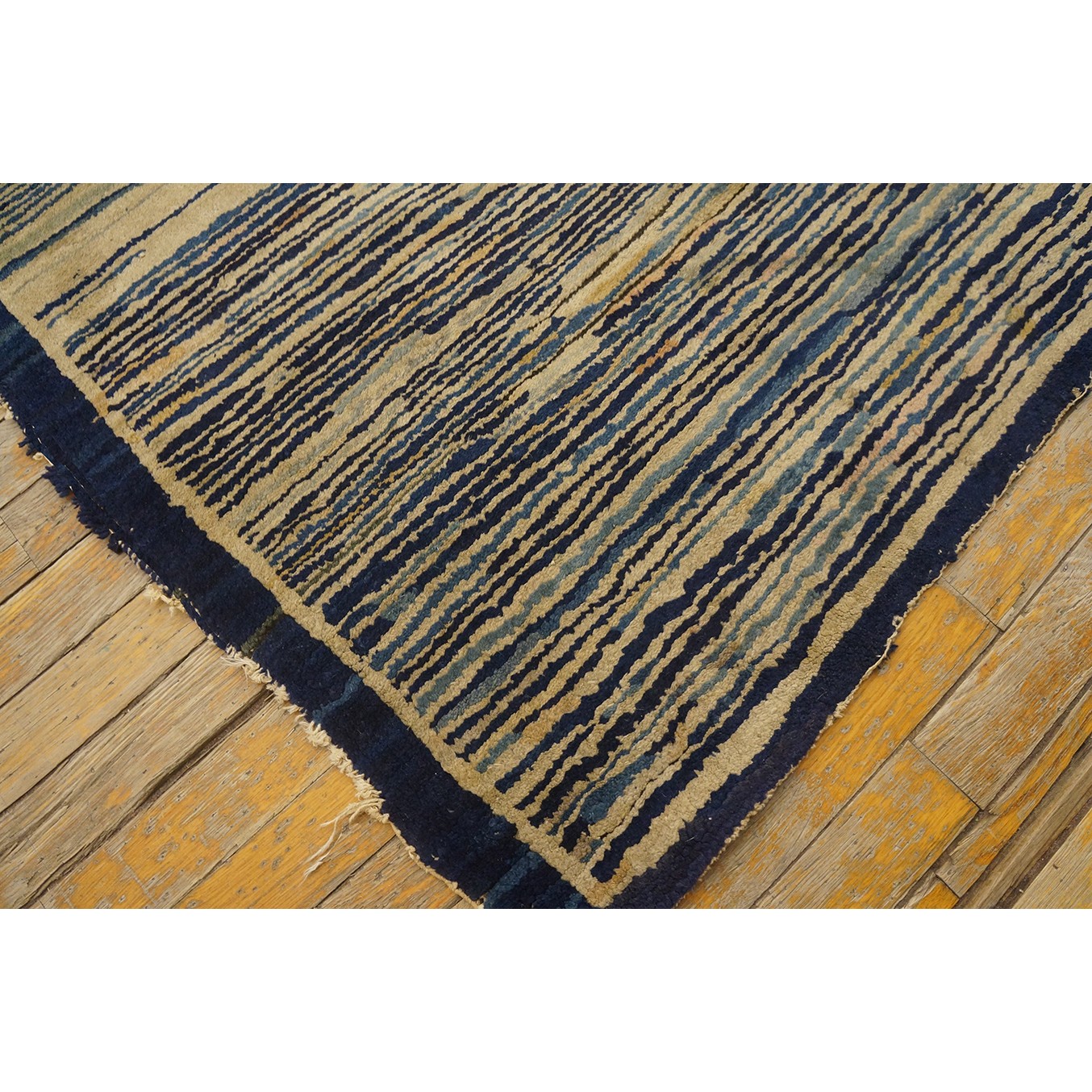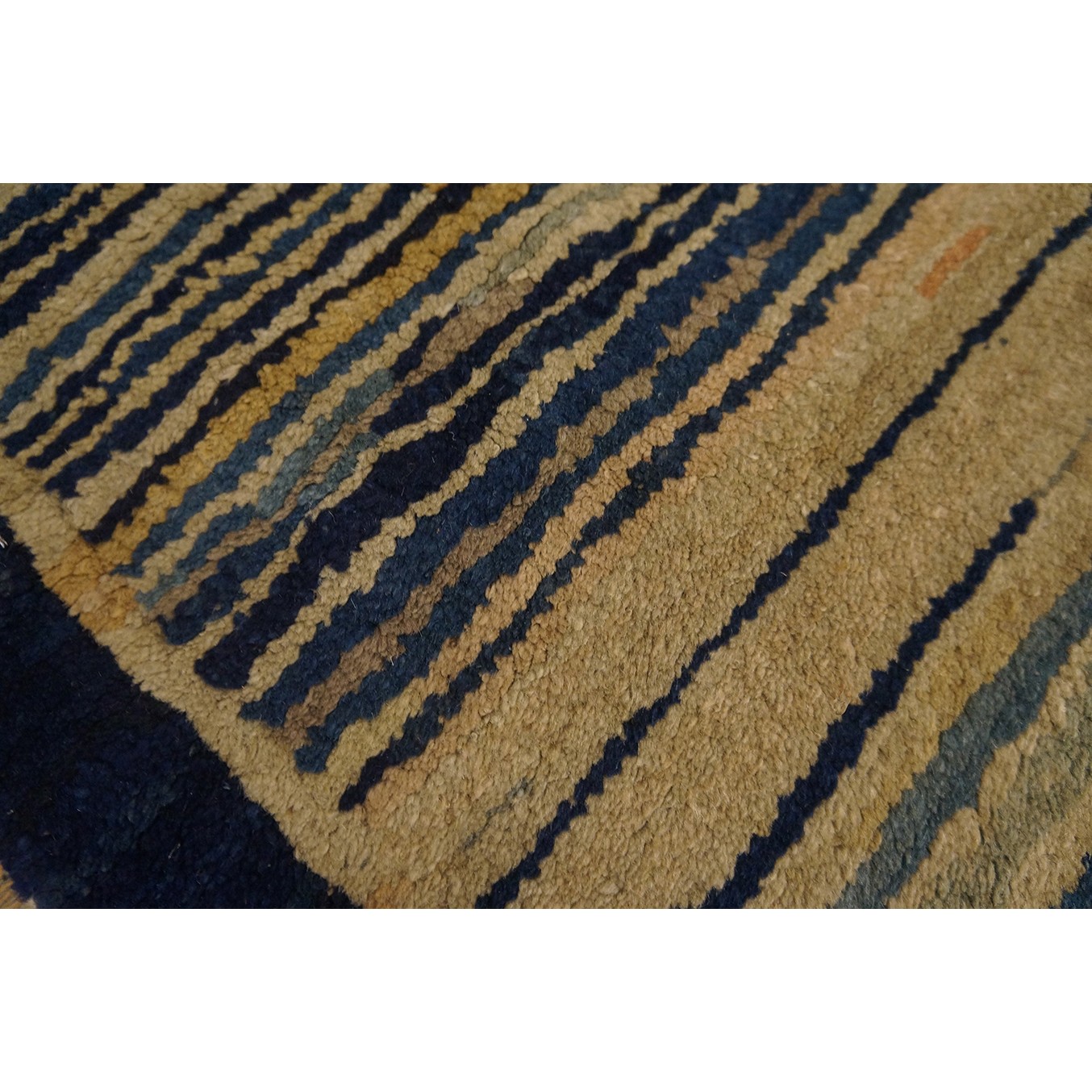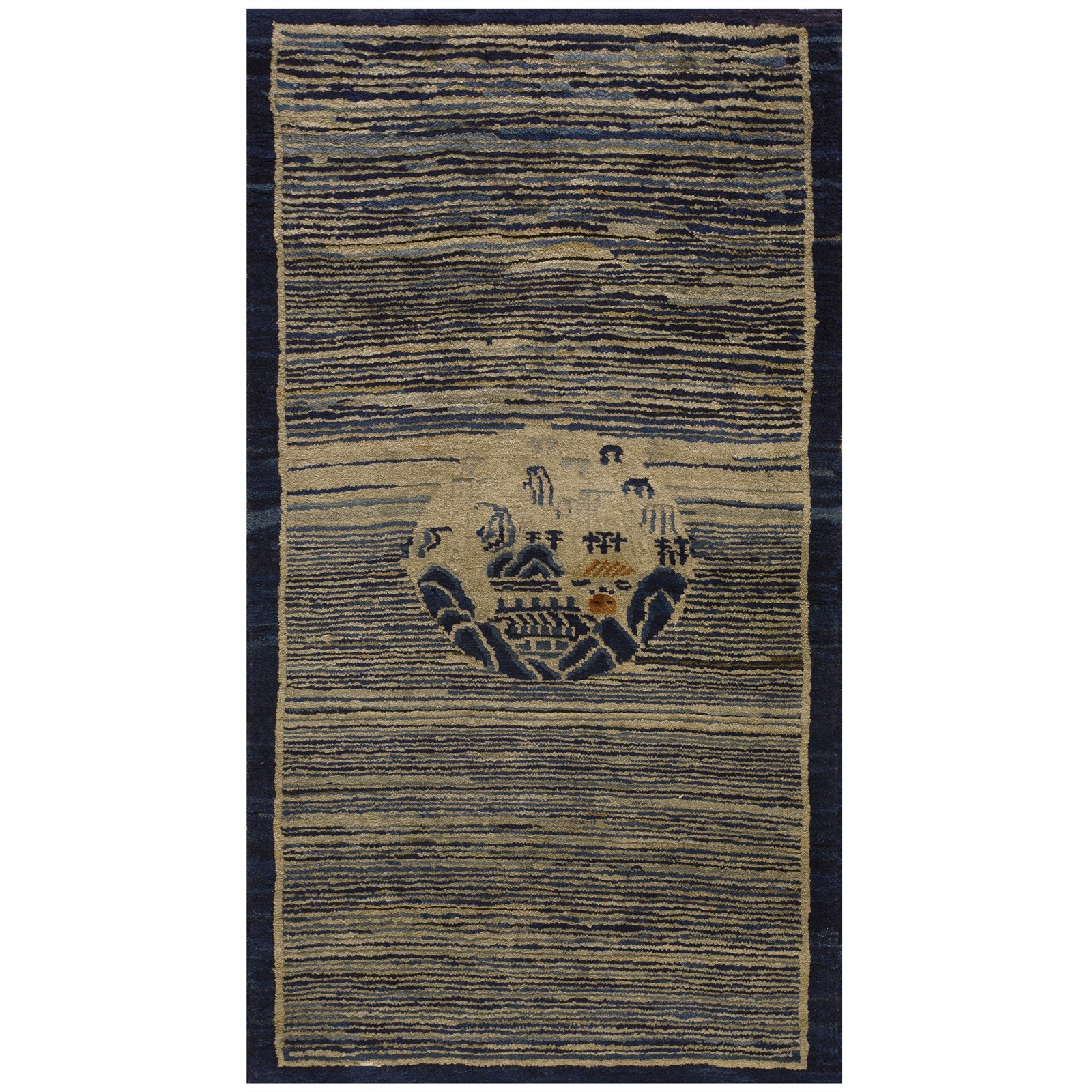 DescriptionChineseCarpets made in China proper. See entries Ningshia, Peking, Art Deco. Chinese - PekingThe commercial Peking carpet is a later 19th century development, begun by importing weaves from Ningshia (see entry) to create and export industry aimed at Western markets. The foundation is cotton and the pile is a good quality carpet wool which takes dyes particularly well. The neat medium weave is in Persian (asymmetric) knots. Designs are strictly Chinese and the whole motif repertoire of Chinese art is employed. Blue and white is the most popular color combination and red is particularly rare. Sizes tend to 9 x 12 and larger, and few small pieces appear. For a short time in the early 1920s Persian designs were woven to capitalize on the death of new Iranian goods. The industry decimated by the Communist Revolution relocated to the Pearl River area. There is a good supply of antique carpets at reasonable prices. | |
