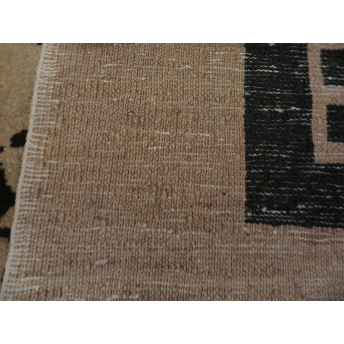 DescriptionChineseCarpets made in China proper. See entries Ningshia, Peking, Art Deco. Chinese - PekingThe commercial Peking carpet is a later 19th century development, begun by importing weaves from Ningshia (see entry) to create and export industry aimed at Western markets. The foundation is cotton and the pile is a good quality carpet wool which takes dyes particularly well. The neat medium weave is in Persian (asymmetric) knots. Designs are strictly Chinese and the whole motif repertoire of Chinese art is employed. Blue and white is the most popular color combination and red is particularly rare. Sizes tend to 9 x 12 and larger, and few small pieces appear. For a short time in the early 1920s Persian designs were woven to capitalize on the death of new Iranian goods. The industry decimated by the Communist Revolution relocated to the Pearl River area. There is a good supply of antique carpets at reasonable prices. | |