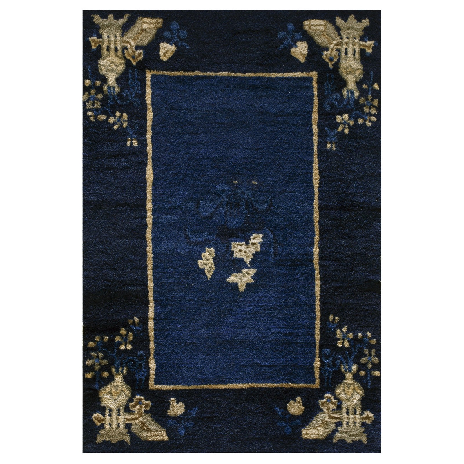 DescriptionChineseCarpets made in China proper. See entries Ningshia, Peking, Art Deco. Chinese - PekingThe commercial Peking carpet is a later 19th century development, begun by importing weaves from Ningshia (see entry) to create and export industry aimed at Western markets. The foundation is cotton and the pile is a good quality carpet wool which takes dyes particularly well. The neat medium weave is in Persian (asymmetric) knots. Designs are strictly Chinese and the whole motif repertoire of Chinese art is employed. Blue and white is the most popular color combination and red is particularly rare. Sizes tend to 9 x 12 and larger, and few small pieces appear. For a short time in the early 1920s Persian designs were woven to capitalize on the death of new Iranian goods. The industry decimated by the Communist Revolution relocated to the Pearl River area. There is a good supply of antique carpets at reasonable prices. | |