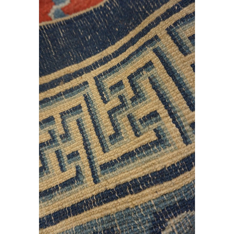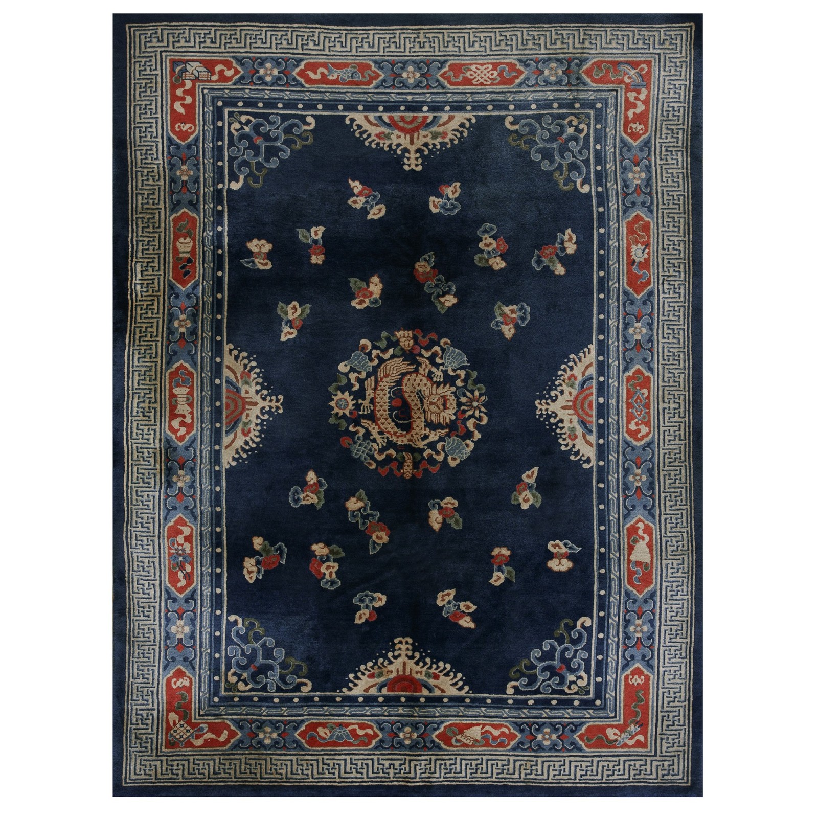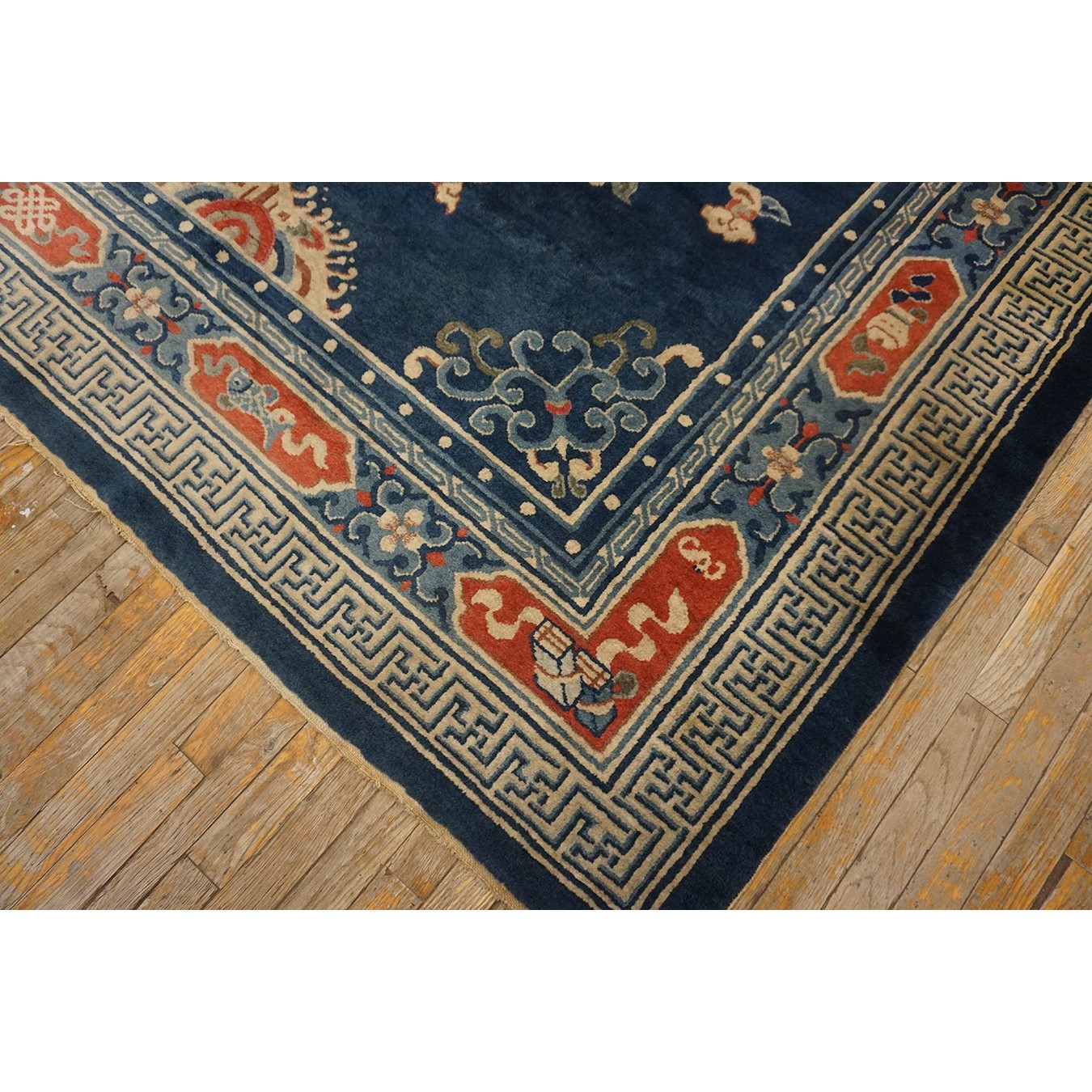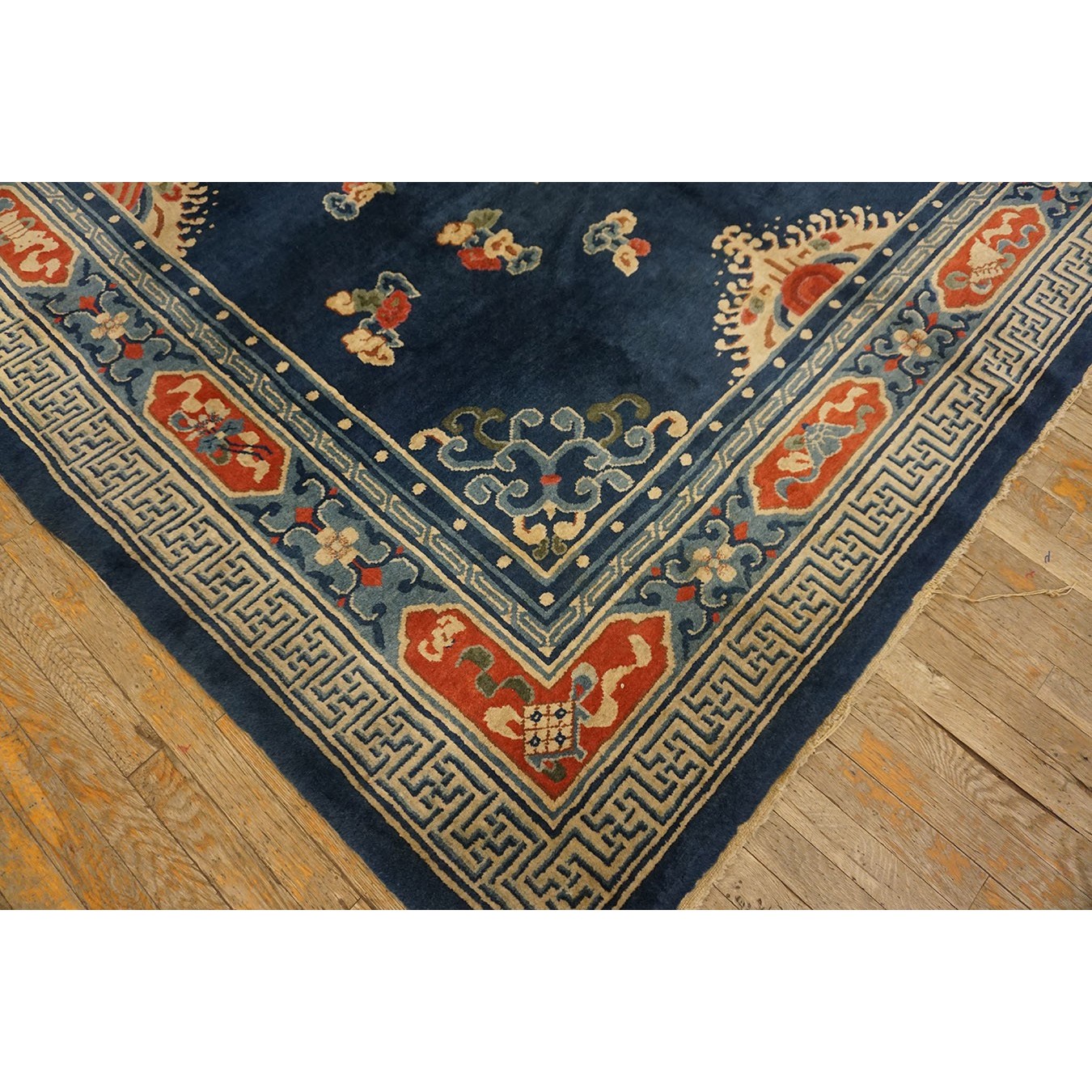 DescriptionChineseCarpets made in China proper. See entries Ningshia, Peking, Art Deco. Chinese - PekingThe commercial Peking carpet is a later 19th century development, begun by importing weaves from Ningshia (see entry) to create and export industry aimed at Western markets. The foundation is cotton and the pile is a good quality carpet wool which takes dyes particularly well. The neat medium weave is in Persian (asymmetric) knots. Designs are strictly Chinese and the whole motif repertoire of Chinese art is employed. Blue and white is the most popular color combination and red is particularly rare. Sizes tend to 9 x 12 and larger, and few small pieces appear. For a short time in the early 1920s Persian designs were woven to capitalize on the death of new Iranian goods. The industry decimated by the Communist Revolution relocated to the Pearl River area. There is a good supply of antique carpets at reasonable prices. | |