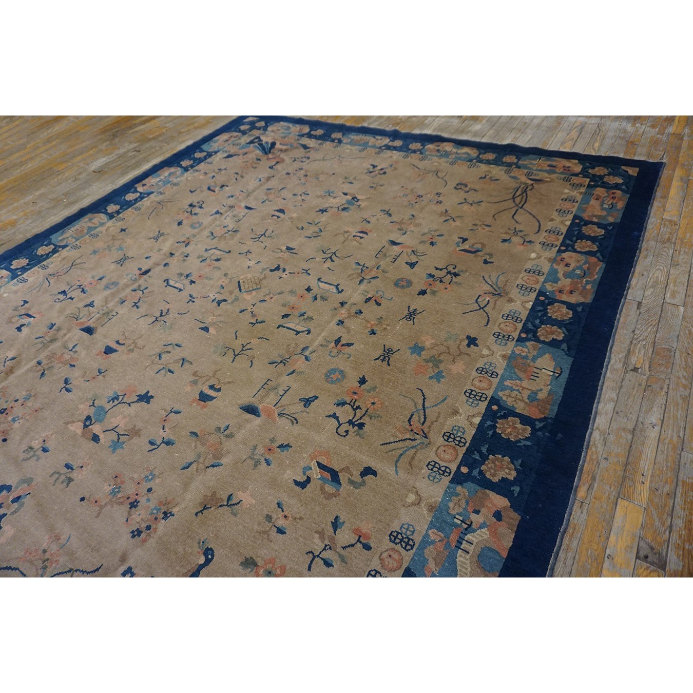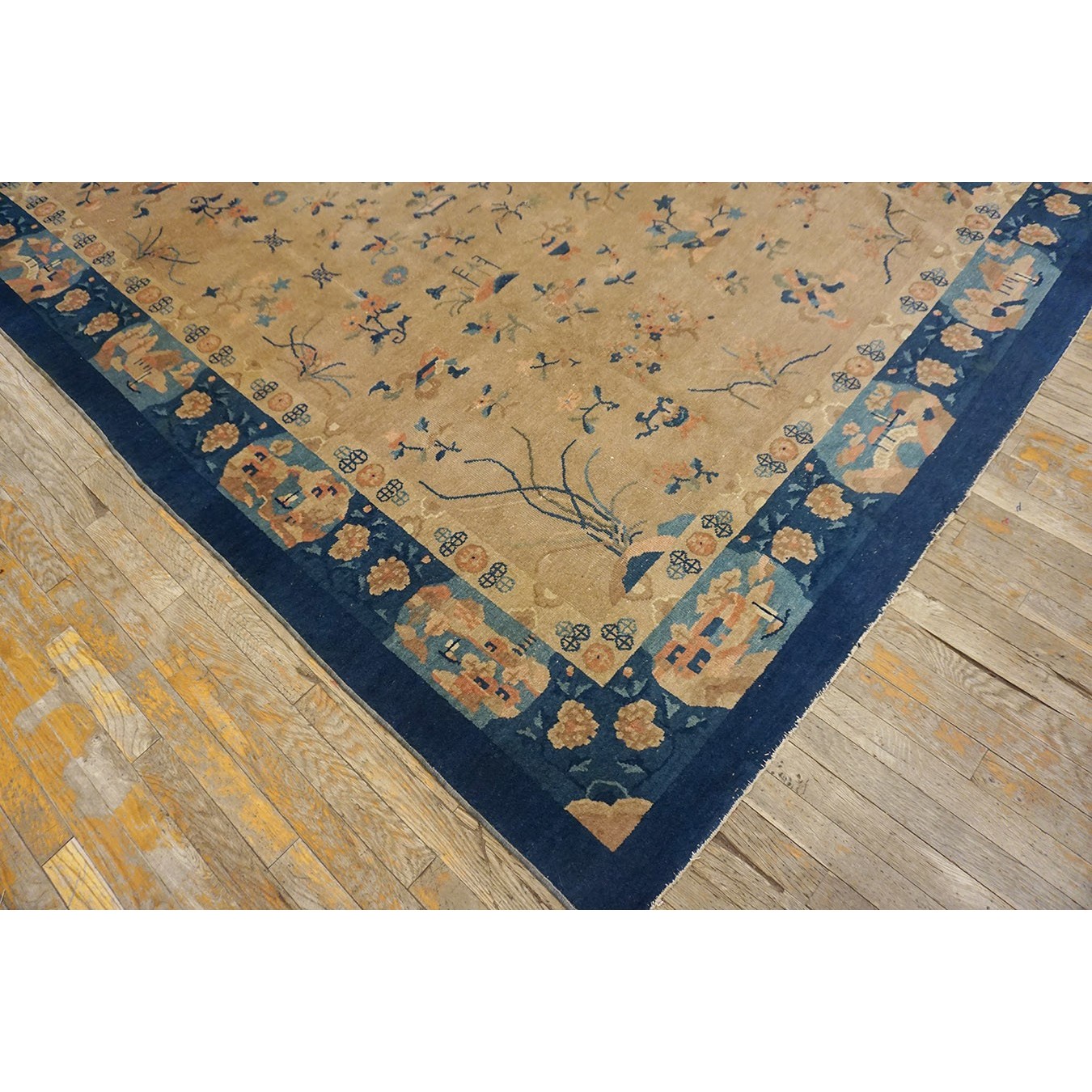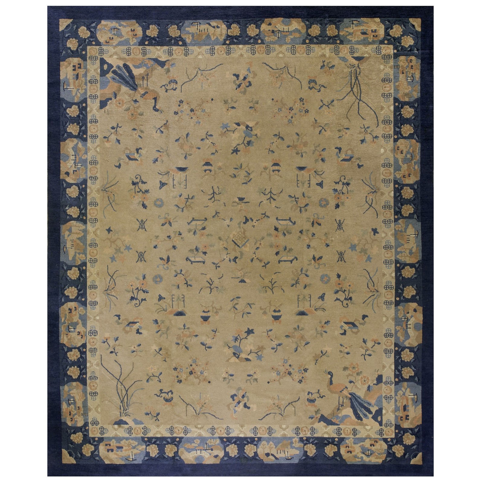 DescriptionChineseCarpets made in China proper. See entries Ningshia, Peking, Art Deco. Chinese - PekingThe commercial Peking carpet is a later 19th century development, begun by importing weaves from Ningshia (see entry) to create and export industry aimed at Western markets. The foundation is cotton and the pile is a good quality carpet wool which takes dyes particularly well. The neat medium weave is in Persian (asymmetric) knots. Designs are strictly Chinese and the whole motif repertoire of Chinese art is employed. Blue and white is the most popular color combination and red is particularly rare. Sizes tend to 9 x 12 and larger, and few small pieces appear. For a short time in the early 1920s Persian designs were woven to capitalize on the death of new Iranian goods. The industry decimated by the Communist Revolution relocated to the Pearl River area. There is a good supply of antique carpets at reasonable prices. | |