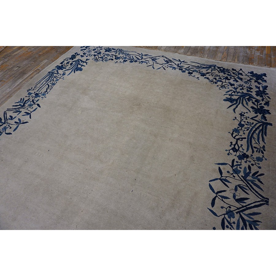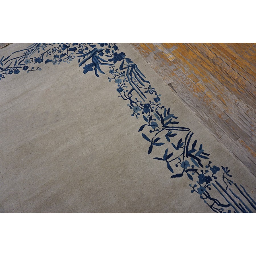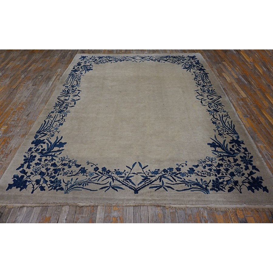 DescriptionChineseCarpets made in China proper. See entries Ningshia, Peking, Art Deco. Chinese - PekingThe commercial Peking carpet is a later 19th century development, begun by importing weaves from Ningshia (see entry) to create and export industry aimed at Western markets. The foundation is cotton and the pile is a good quality carpet wool which takes dyes particularly well. The neat medium weave is in Persian (asymmetric) knots. Designs are strictly Chinese and the whole motif repertoire of Chinese art is employed. Blue and white is the most popular color combination and red is particularly rare. Sizes tend to 9 x 12 and larger, and few small pieces appear. For a short time in the early 1920s Persian designs were woven to capitalize on the death of new Iranian goods. The industry decimated by the Communist Revolution relocated to the Pearl River area. There is a good supply of antique carpets at reasonable prices. | |