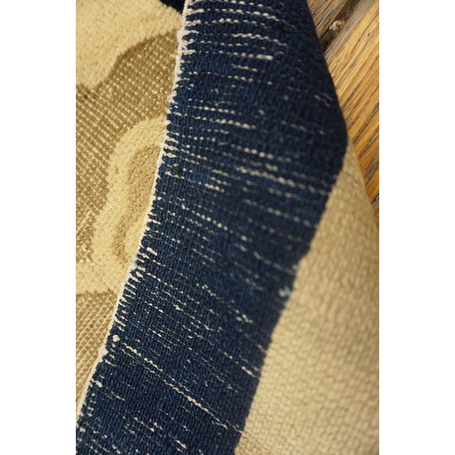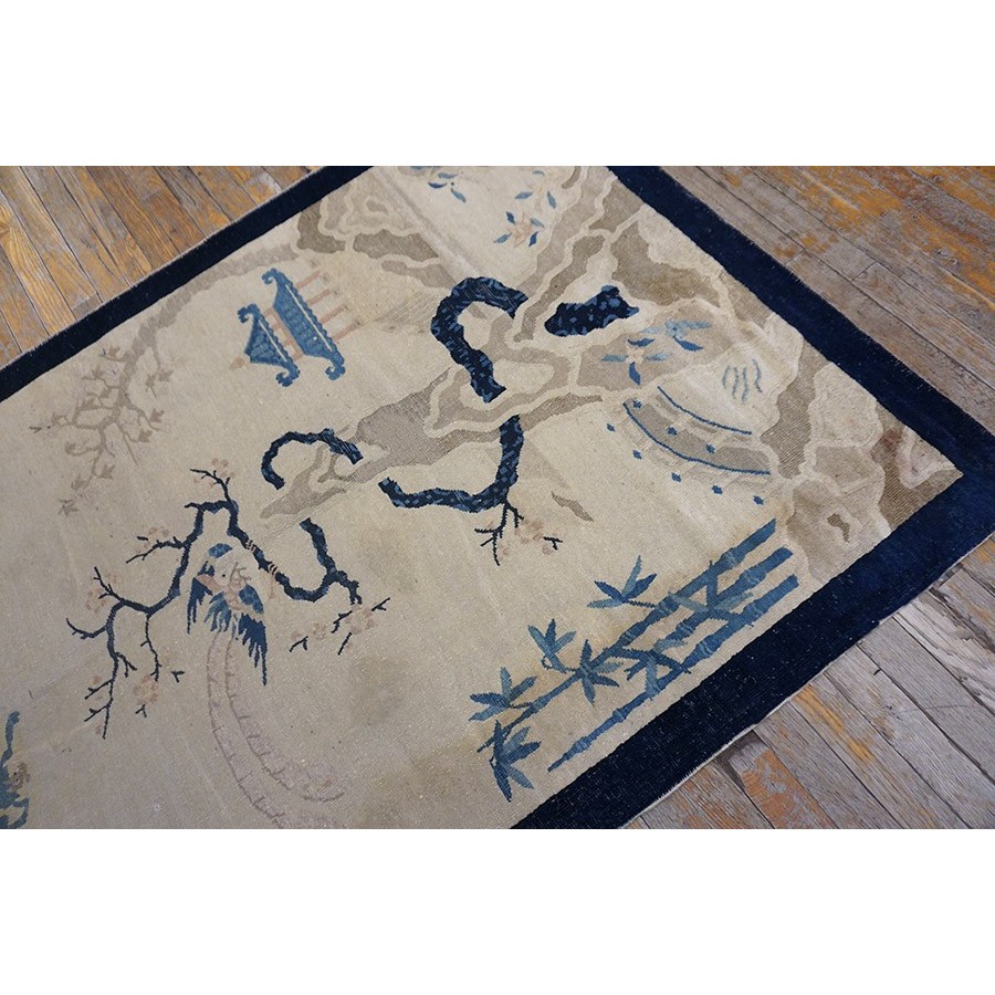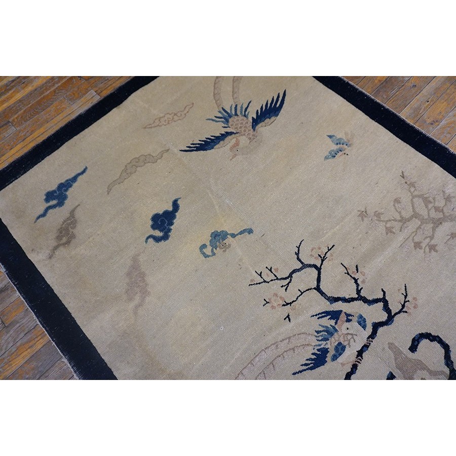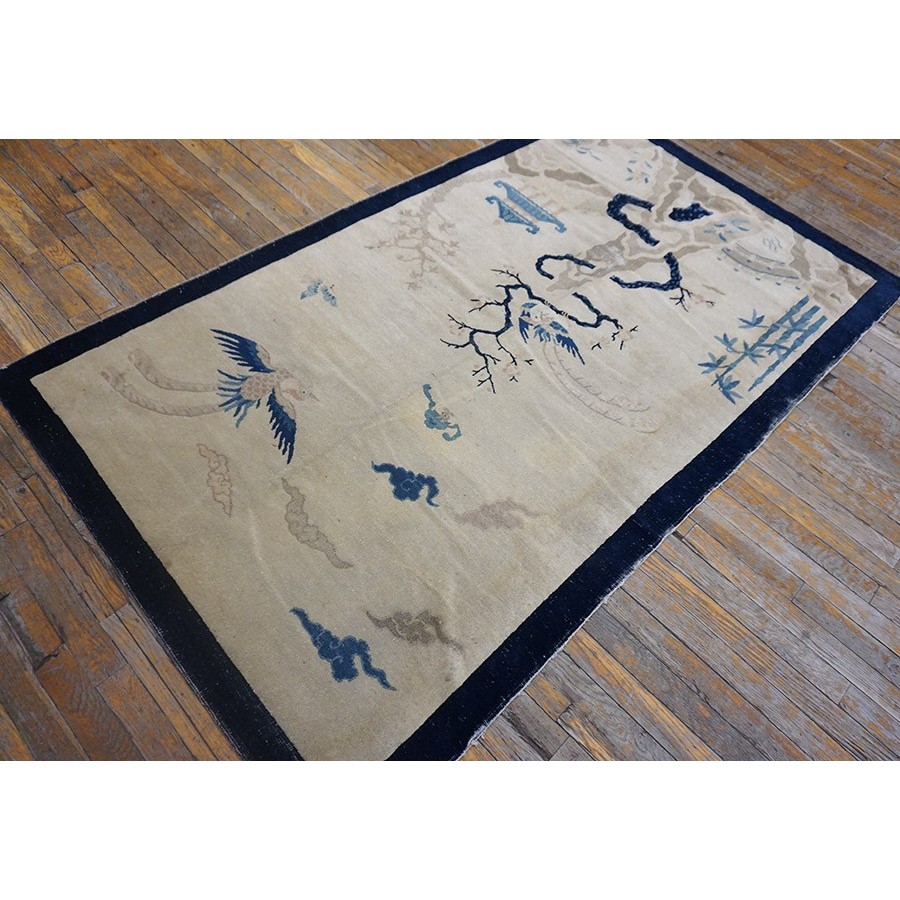 DescriptionChineseCarpets made in China proper. See entries Ningshia, Peking, Art Deco. Chinese - PekingThe commercial Peking carpet is a later 19th century development, begun by importing weaves from Ningshia (see entry) to create and export industry aimed at Western markets. The foundation is cotton and the pile is a good quality carpet wool which takes dyes particularly well. The neat medium weave is in Persian (asymmetric) knots. Designs are strictly Chinese and the whole motif repertoire of Chinese art is employed. Blue and white is the most popular color combination and red is particularly rare. Sizes tend to 9 x 12 and larger, and few small pieces appear. For a short time in the early 1920s Persian designs were woven to capitalize on the death of new Iranian goods. The industry decimated by the Communist Revolution relocated to the Pearl River area. There is a good supply of antique carpets at reasonable prices. | |