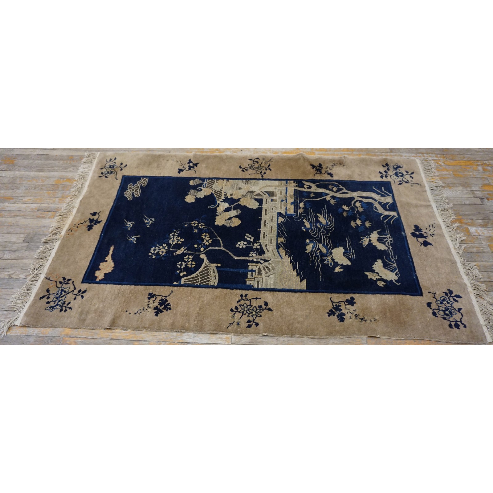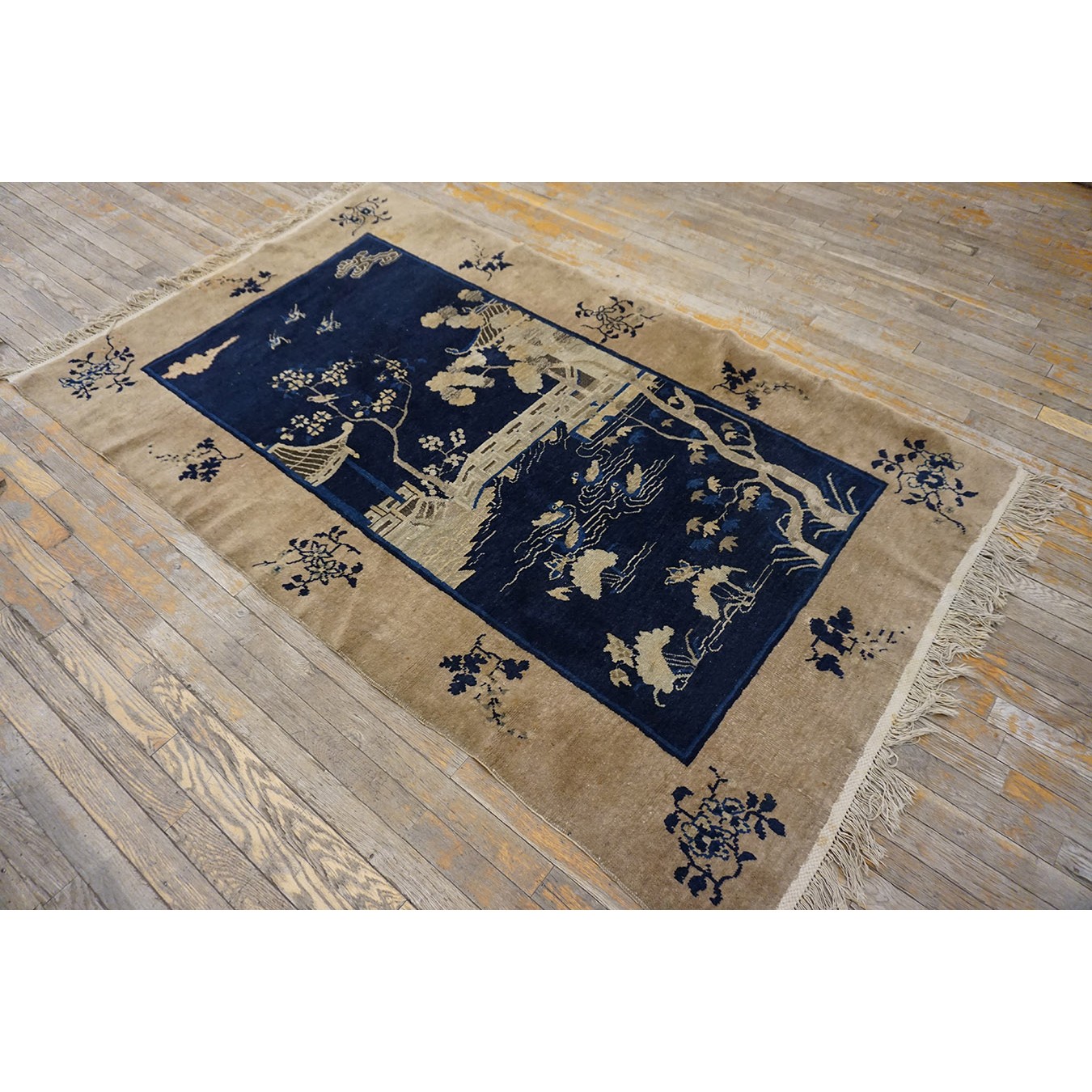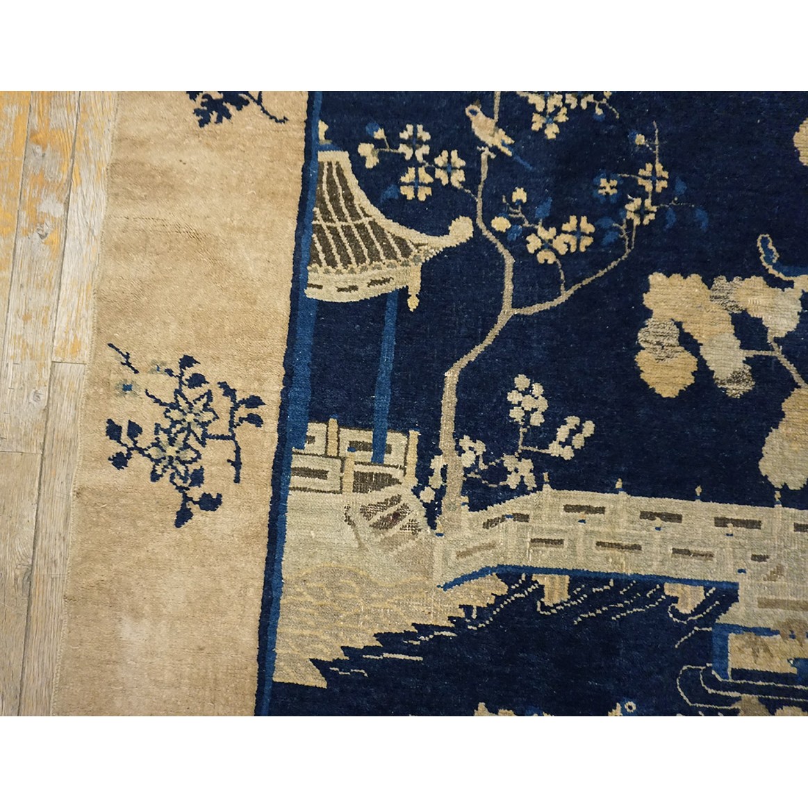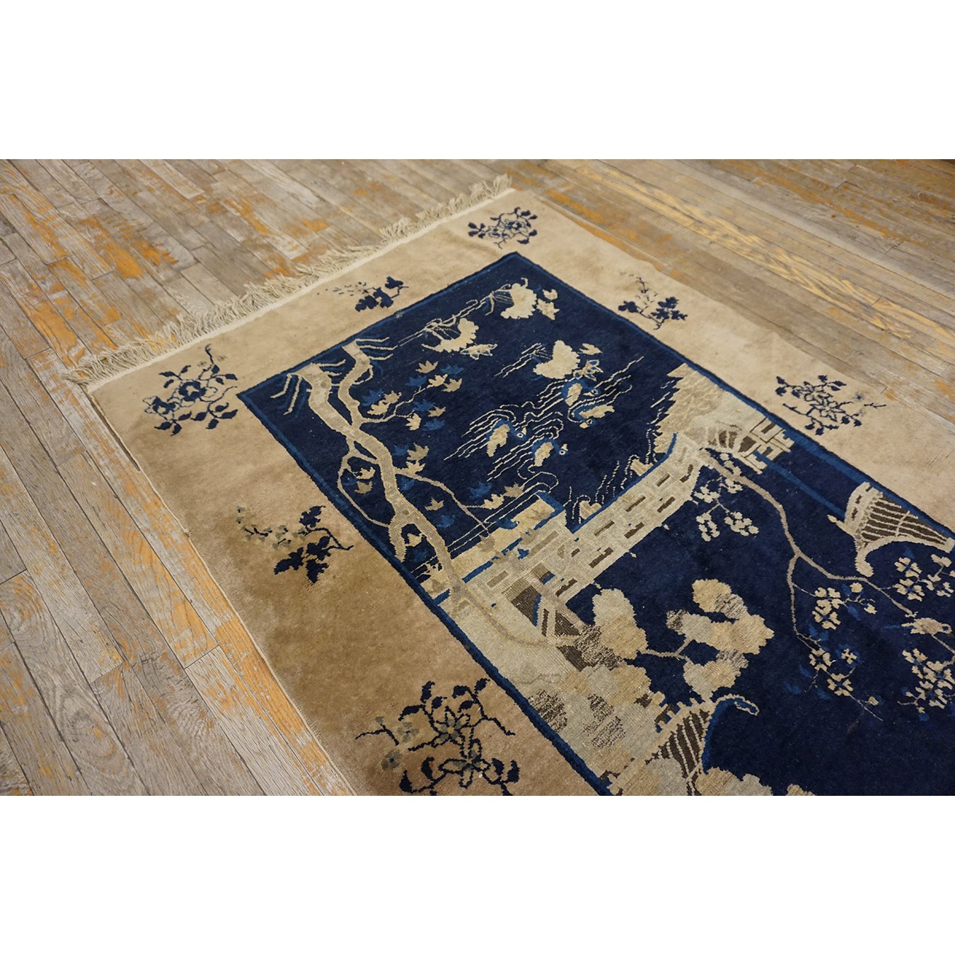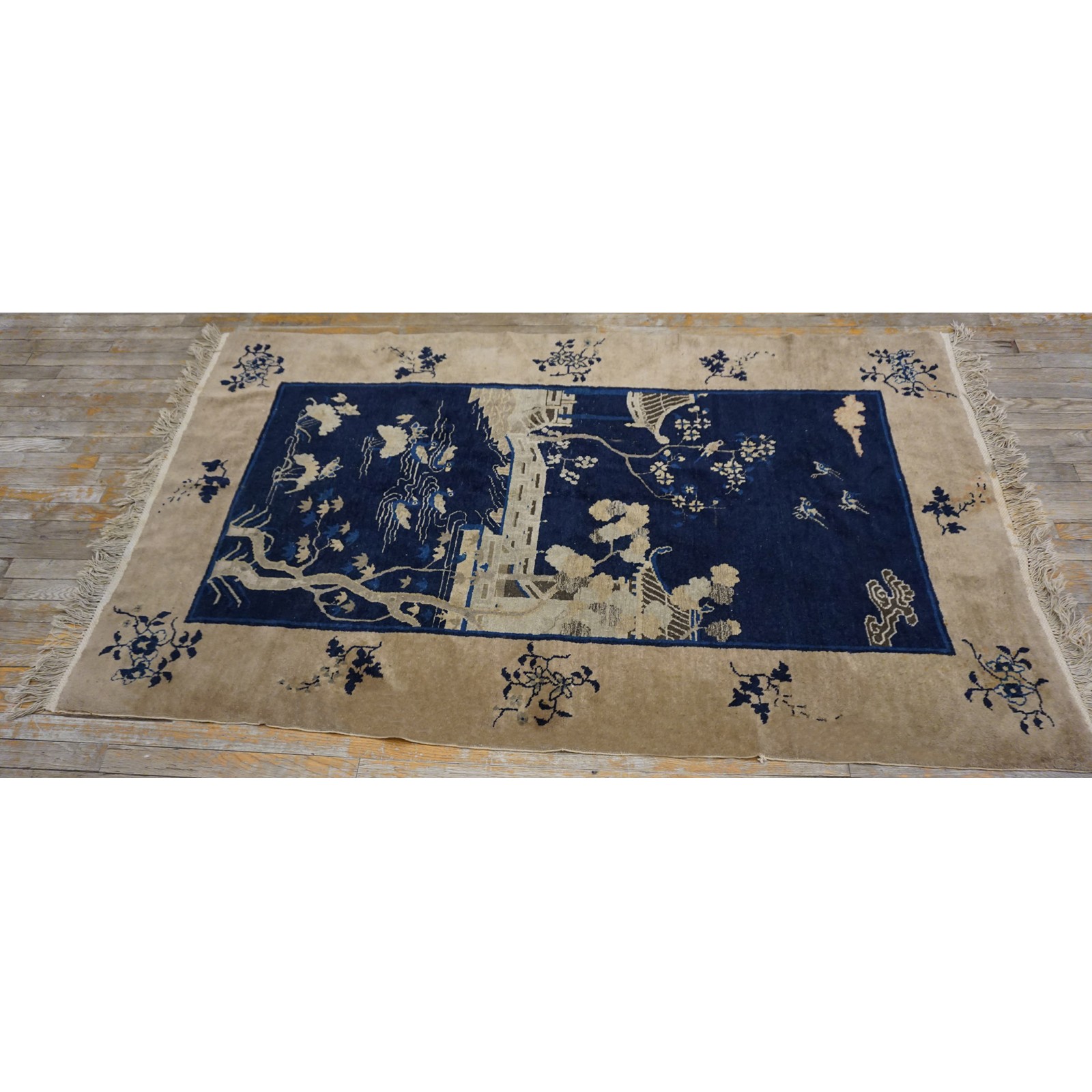 DescriptionChineseCarpets made in China proper. See entries Ningshia, Peking, Art Deco. Chinese - PekingThe commercial Peking carpet is a later 19th century development, begun by importing weaves from Ningshia (see entry) to create and export industry aimed at Western markets. The foundation is cotton and the pile is a good quality carpet wool which takes dyes particularly well. The neat medium weave is in Persian (asymmetric) knots. Designs are strictly Chinese and the whole motif repertoire of Chinese art is employed. Blue and white is the most popular color combination and red is particularly rare. Sizes tend to 9 x 12 and larger, and few small pieces appear. For a short time in the early 1920s Persian designs were woven to capitalize on the death of new Iranian goods. The industry decimated by the Communist Revolution relocated to the Pearl River area. There is a good supply of antique carpets at reasonable prices. | |