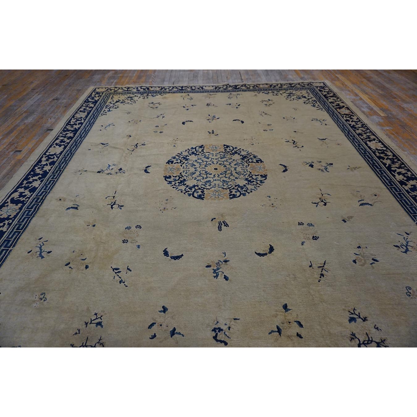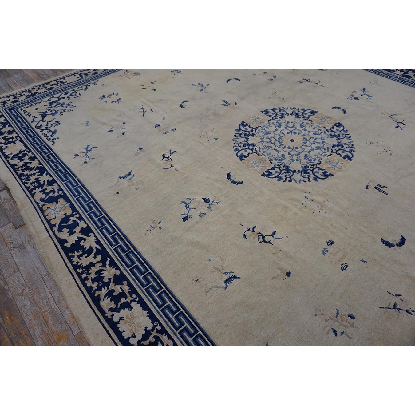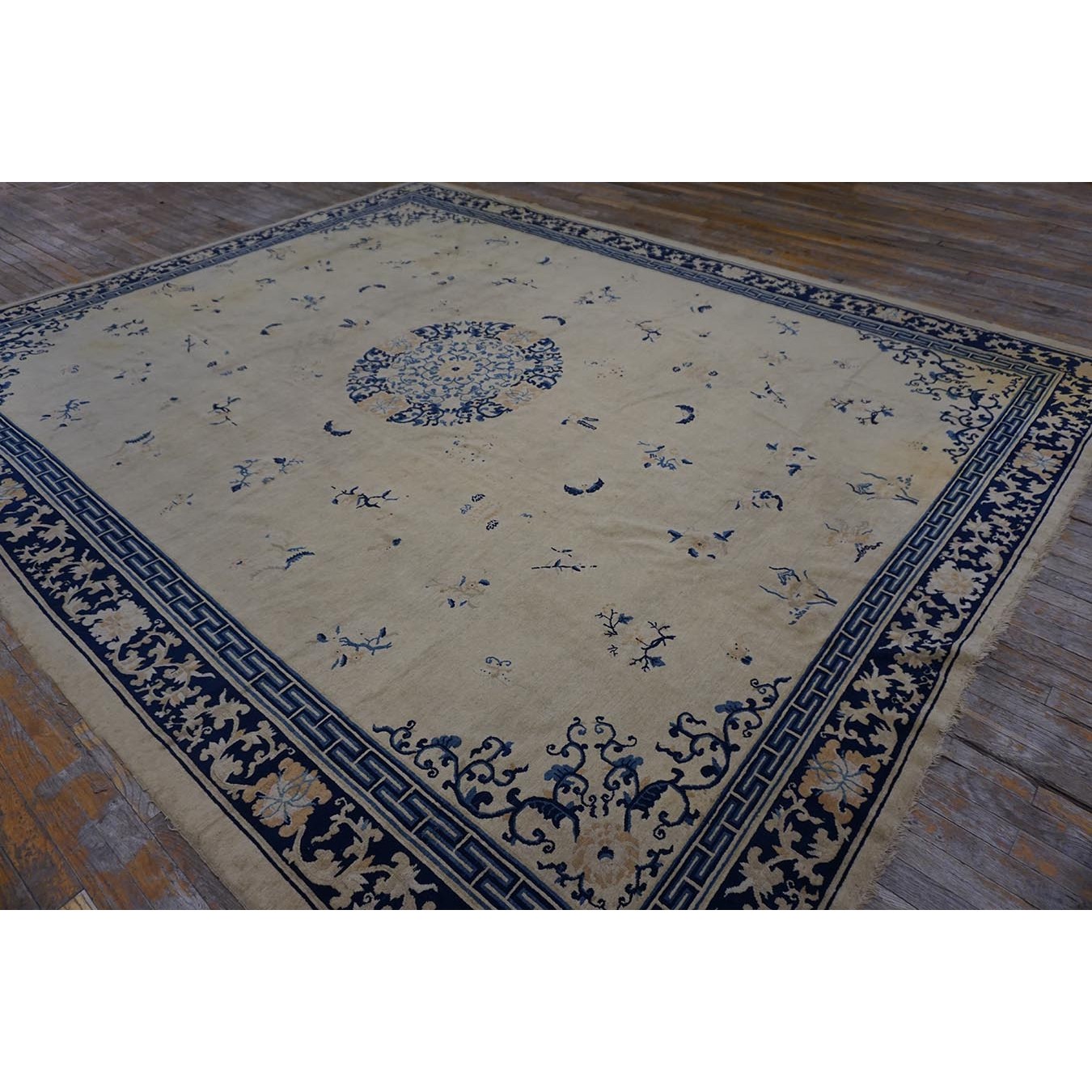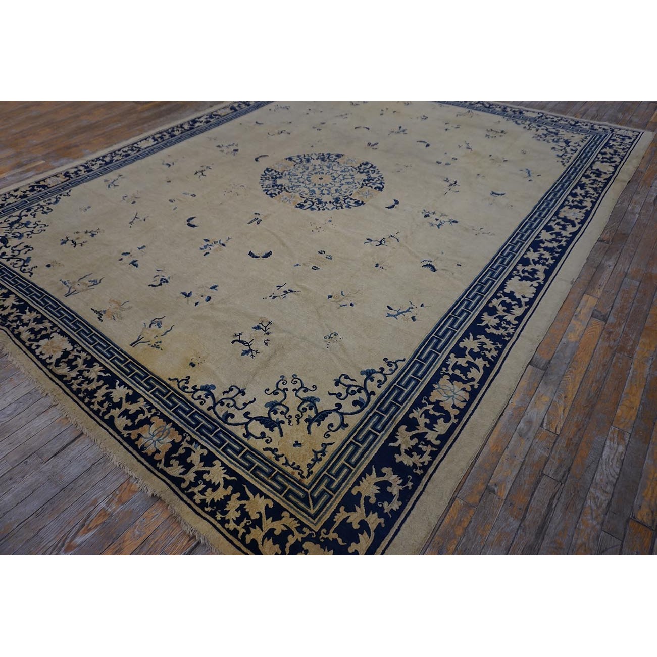 DescriptionChineseCarpets made in China proper. See entries Ningshia, Peking, Art Deco. Chinese - PekingThe commercial Peking carpet is a later 19th century development, begun by importing weaves from Ningshia (see entry) to create and export industry aimed at Western markets. The foundation is cotton and the pile is a good quality carpet wool which takes dyes particularly well. The neat medium weave is in Persian (asymmetric) knots. Designs are strictly Chinese and the whole motif repertoire of Chinese art is employed. Blue and white is the most popular color combination and red is particularly rare. Sizes tend to 9 x 12 and larger, and few small pieces appear. For a short time in the early 1920s Persian designs were woven to capitalize on the death of new Iranian goods. The industry decimated by the Communist Revolution relocated to the Pearl River area. There is a good supply of antique carpets at reasonable prices. | |