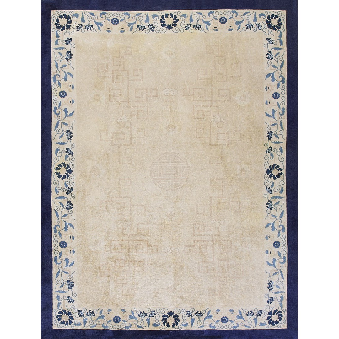 DescriptionChineseCarpets made in China proper. See entries Ningshia, Peking, Art Deco. Chinese - PekingThe commercial Peking carpet is a later 19th century development, begun by importing weaves from Ningshia (see entry) to create and export industry aimed at Western markets. The foundation is cotton and the pile is a good quality carpet wool which takes dyes particularly well. The neat medium weave is in Persian (asymmetric) knots. Designs are strictly Chinese and the whole motif repertoire of Chinese art is employed. Blue and white is the most popular color combination and red is particularly rare. Sizes tend to 9 x 12 and larger, and few small pieces appear. For a short time in the early 1920s Persian designs were woven to capitalize on the death of new Iranian goods. The industry decimated by the Communist Revolution relocated to the Pearl River area. There is a good supply of antique carpets at reasonable prices. | |