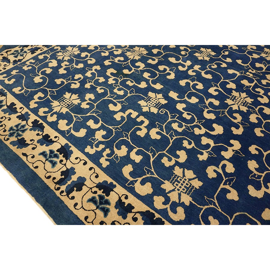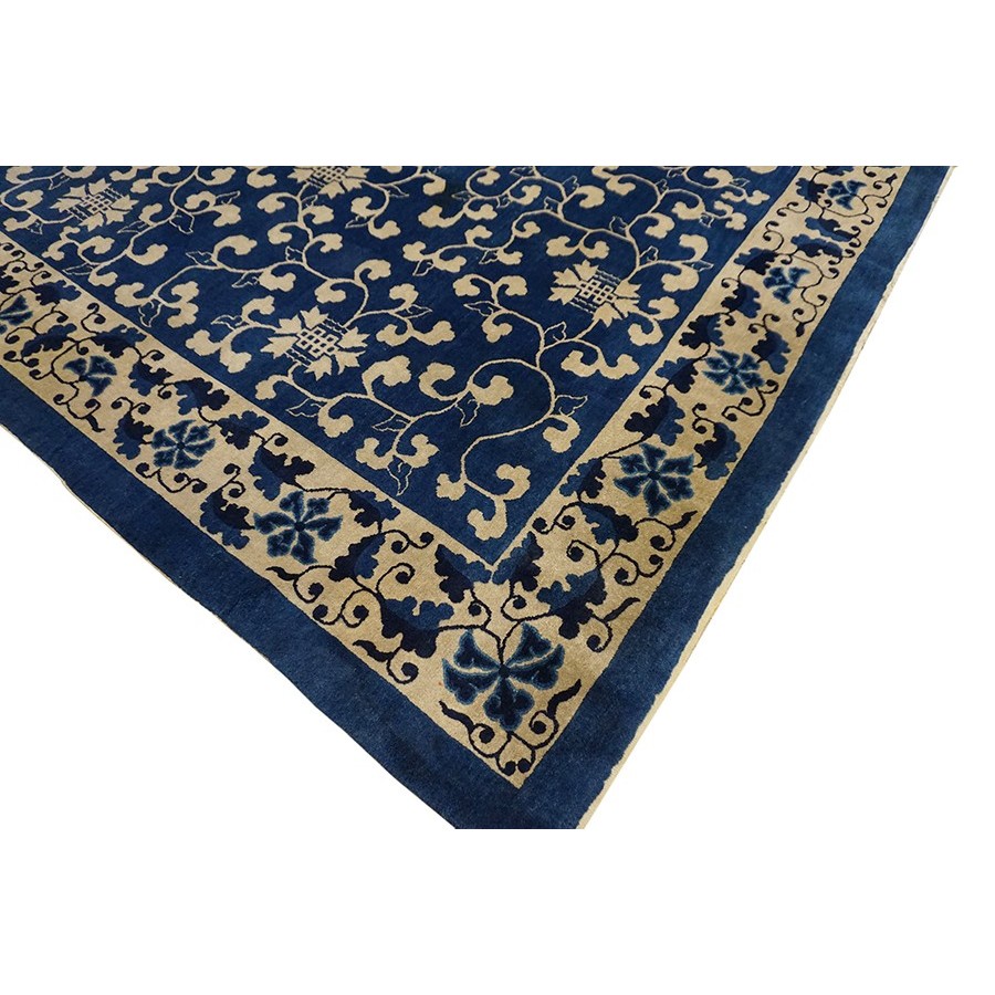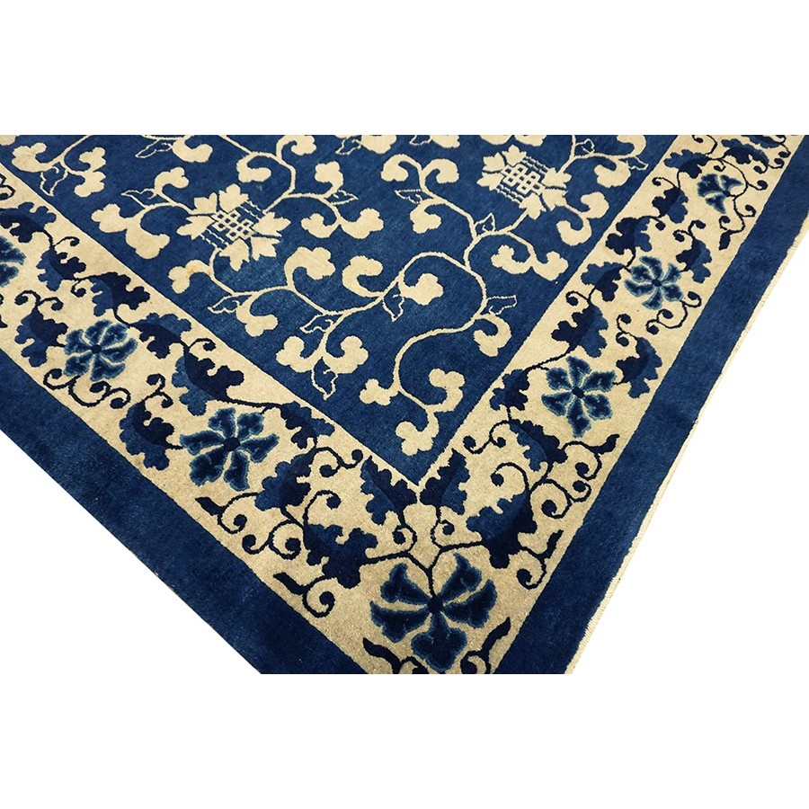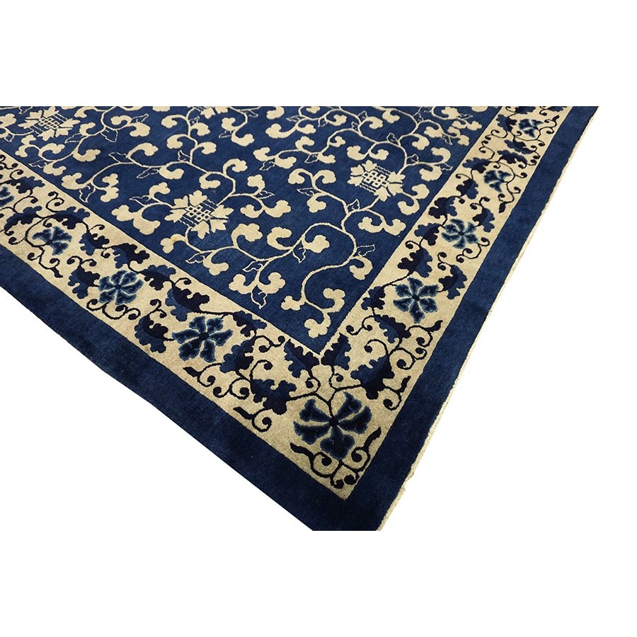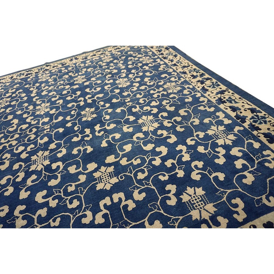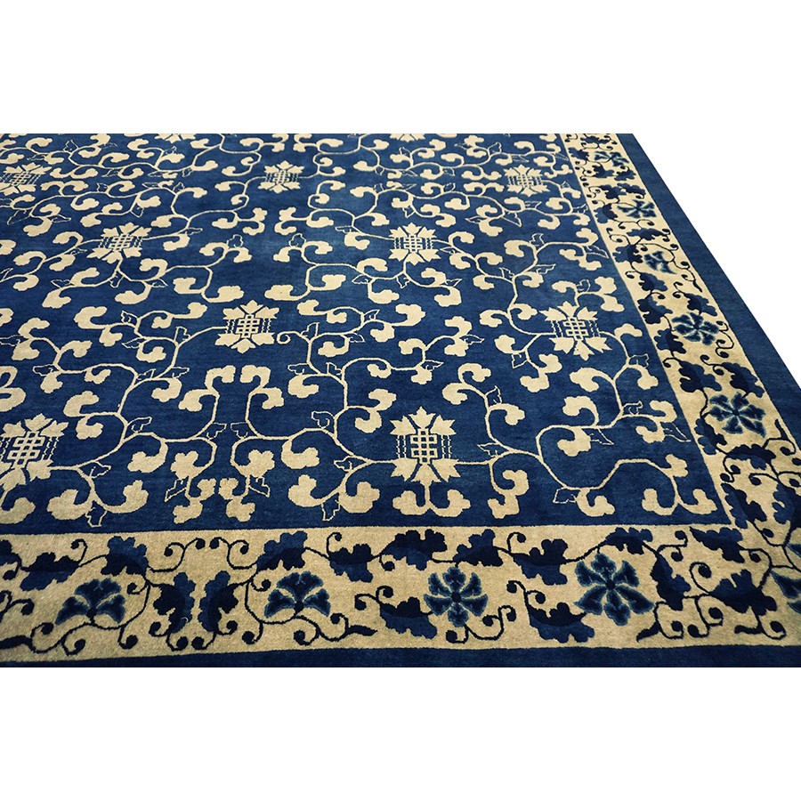 DescriptionChineseCarpets made in China proper. See entries Ningshia, Peking, Art Deco. Chinese - PekingThe commercial Peking carpet is a later 19th century development, begun by importing weaves from Ningshia (see entry) to create and export industry aimed at Western markets. The foundation is cotton and the pile is a good quality carpet wool which takes dyes particularly well. The neat medium weave is in Persian (asymmetric) knots. Designs are strictly Chinese and the whole motif repertoire of Chinese art is employed. Blue and white is the most popular color combination and red is particularly rare. Sizes tend to 9 x 12 and larger, and few small pieces appear. For a short time in the early 1920s Persian designs were woven to capitalize on the death of new Iranian goods. The industry decimated by the Communist Revolution relocated to the Pearl River area. There is a good supply of antique carpets at reasonable prices. | |