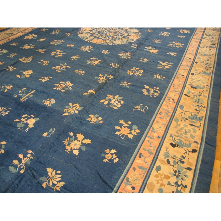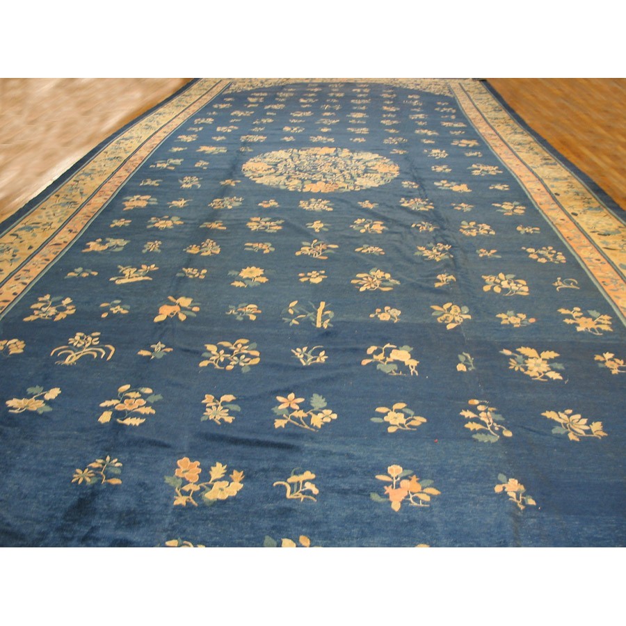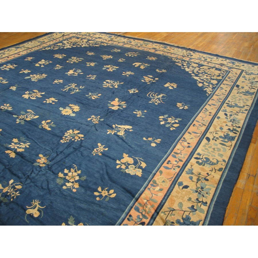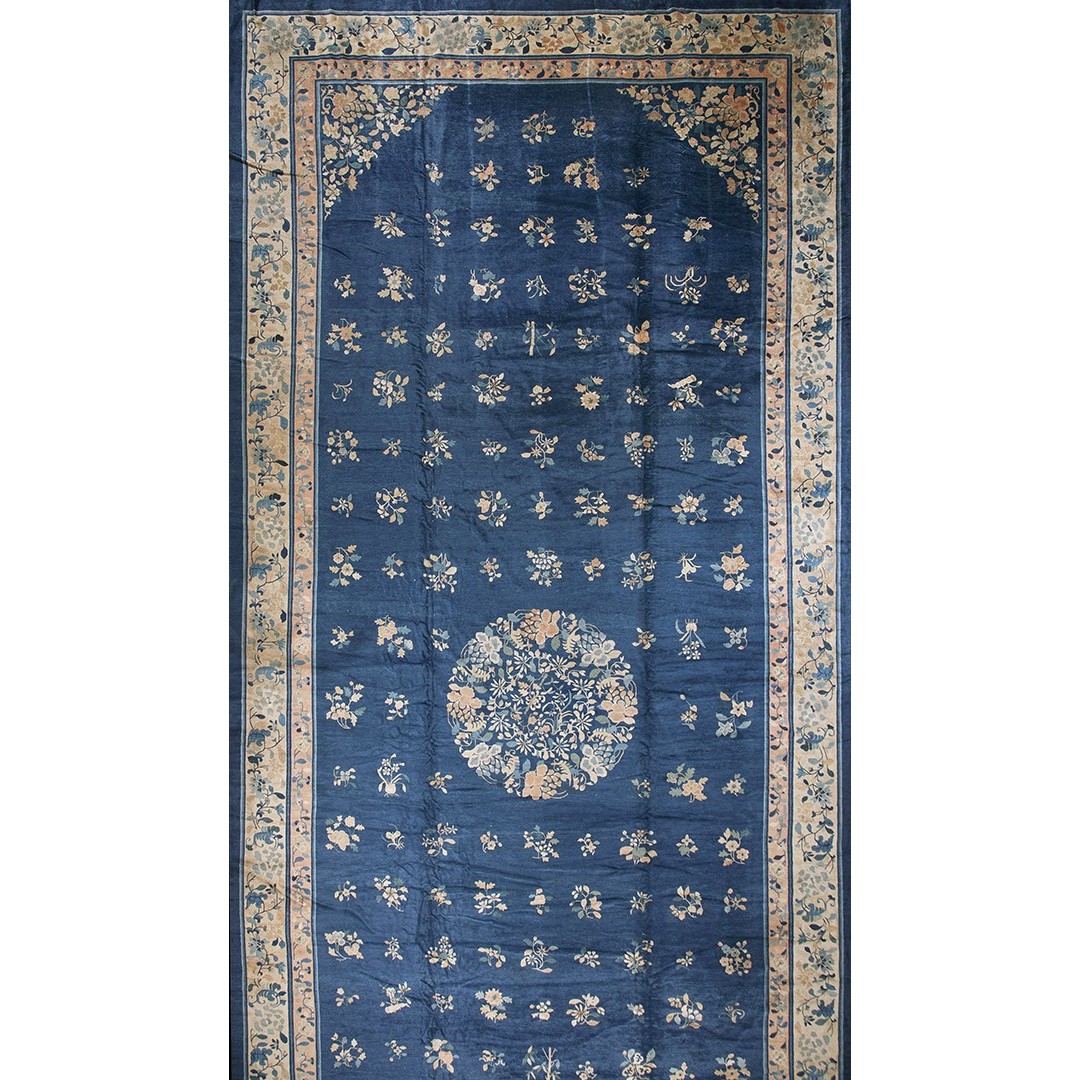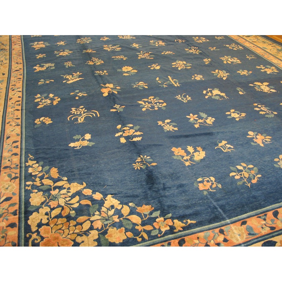 DescriptionChineseCarpets made in China proper. See entries Ningshia, Peking, Art Deco. Chinese - PekingThe commercial Peking carpet is a later 19th century development, begun by importing weaves from Ningshia (see entry) to create and export industry aimed at Western markets. The foundation is cotton and the pile is a good quality carpet wool which takes dyes particularly well. The neat medium weave is in Persian (asymmetric) knots. Designs are strictly Chinese and the whole motif repertoire of Chinese art is employed. Blue and white is the most popular color combination and red is particularly rare. Sizes tend to 9 x 12 and larger, and few small pieces appear. For a short time in the early 1920s Persian designs were woven to capitalize on the death of new Iranian goods. The industry decimated by the Communist Revolution relocated to the Pearl River area. There is a good supply of antique carpets at reasonable prices. | |