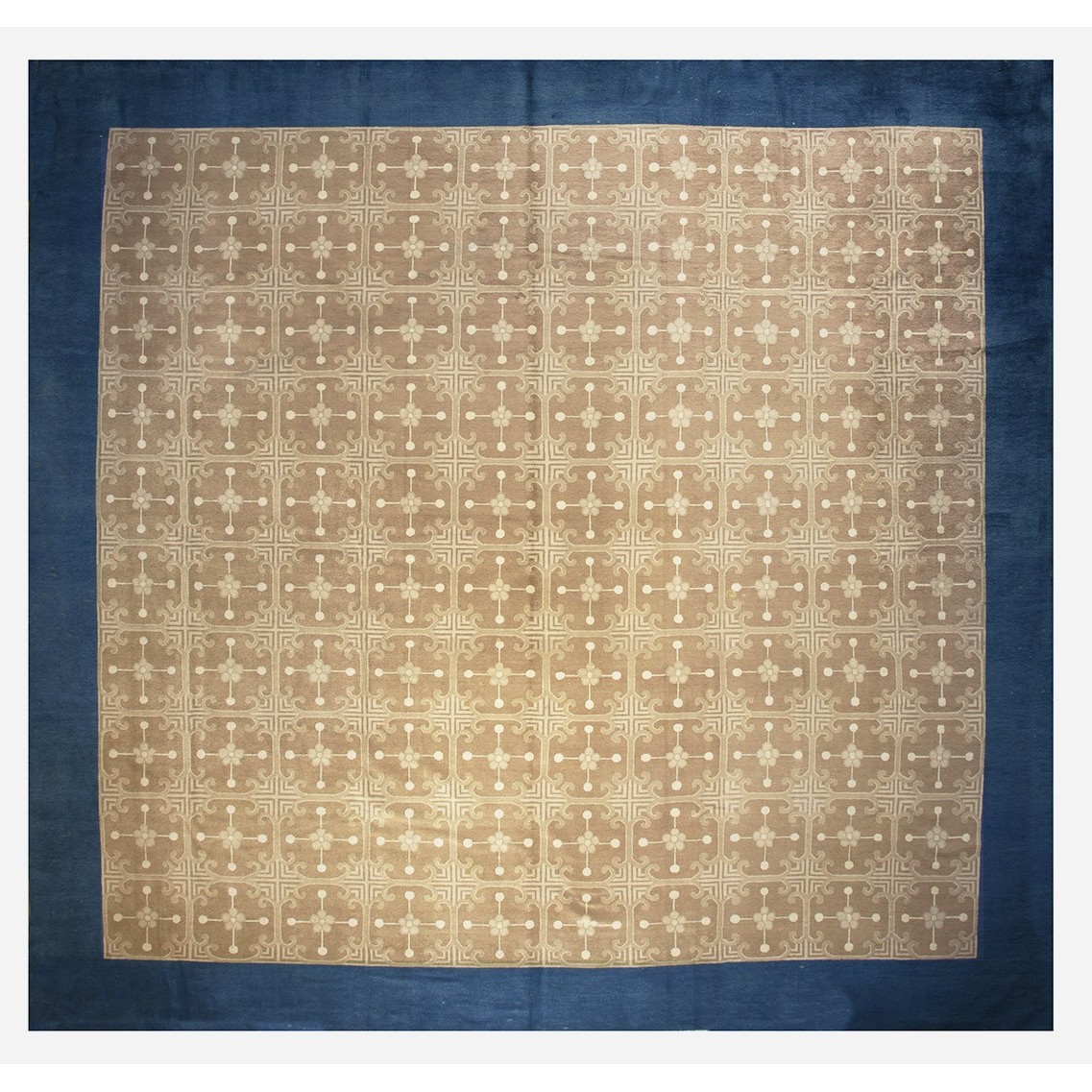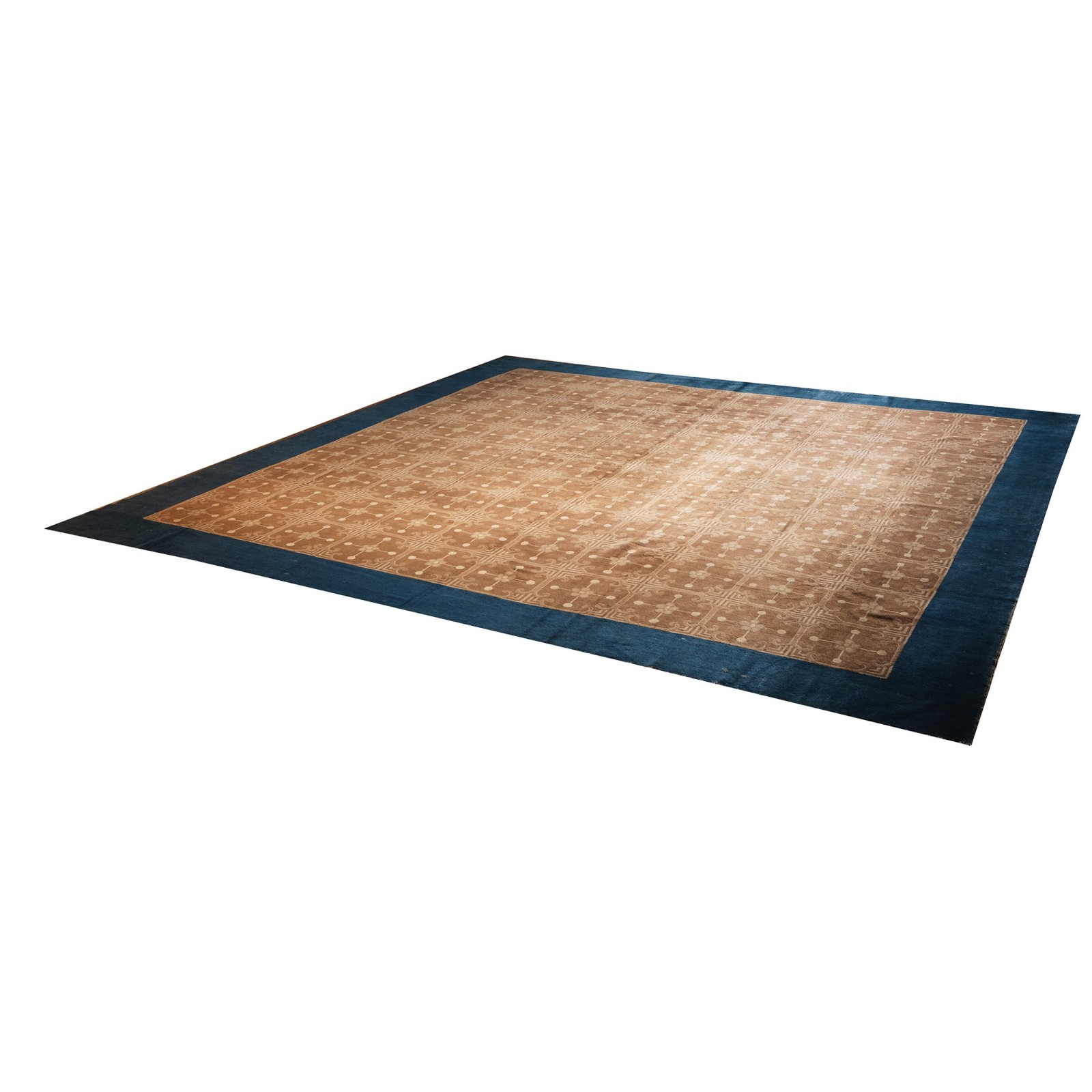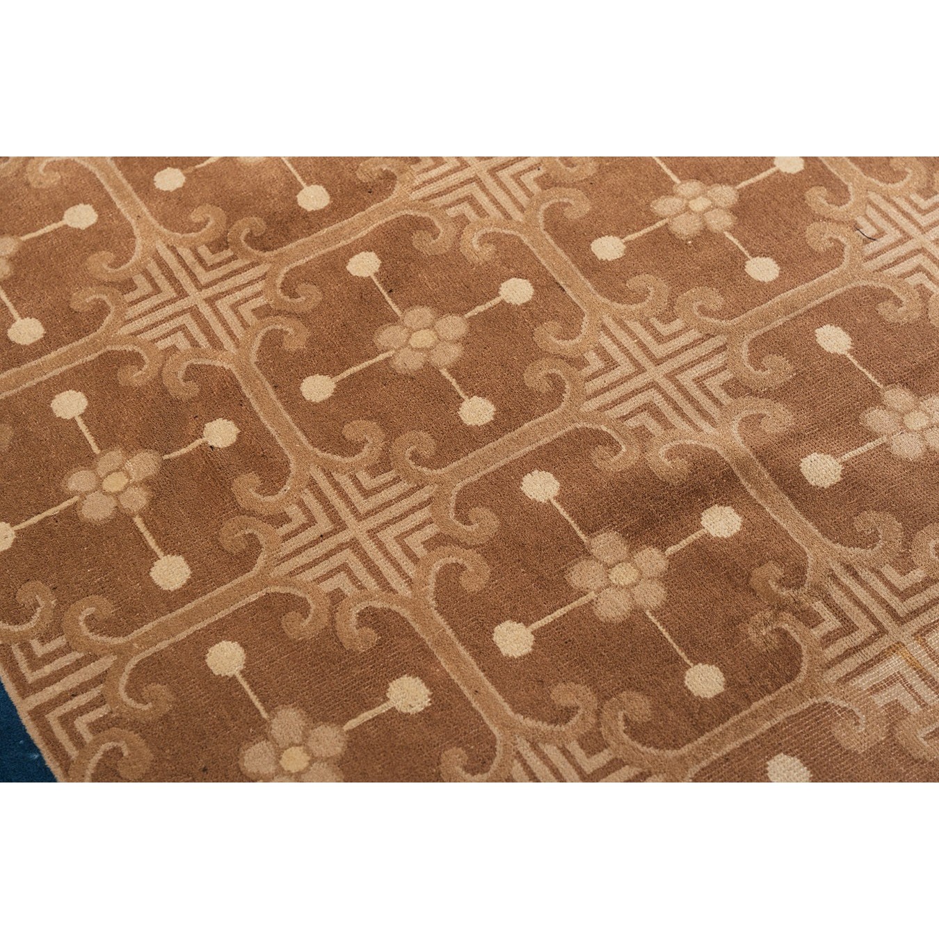DescriptionChineseCarpets made in China proper. See entries Ningshia, Peking, Art Deco. Chinese - PekingThe commercial Peking carpet is a later 19th century development, begun by importing weaves from Ningshia (see entry) to create and export industry aimed at Western markets. The foundation is cotton and the pile is a good quality carpet wool which takes dyes particularly well. The neat medium weave is in Persian (asymmetric) knots. Designs are strictly Chinese and the whole motif repertoire of Chinese art is employed. Blue and white is the most popular color combination and red is particularly rare. Sizes tend to 9 x 12 and larger, and few small pieces appear. For a short time in the early 1920s Persian designs were woven to capitalize on the death of new Iranian goods. The industry decimated by the Communist Revolution relocated to the Pearl River area. There is a good supply of antique carpets at reasonable prices. | |