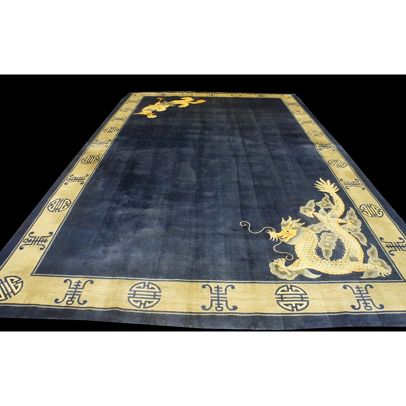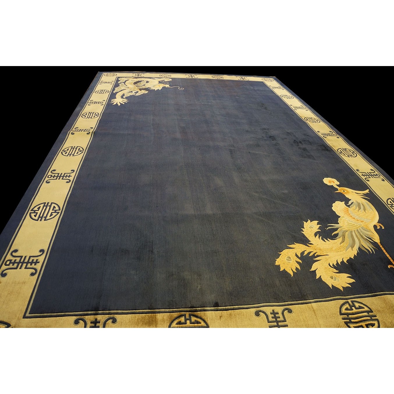 Vintage 1980s Chinese Silk Dragon & Phoenix Carpet