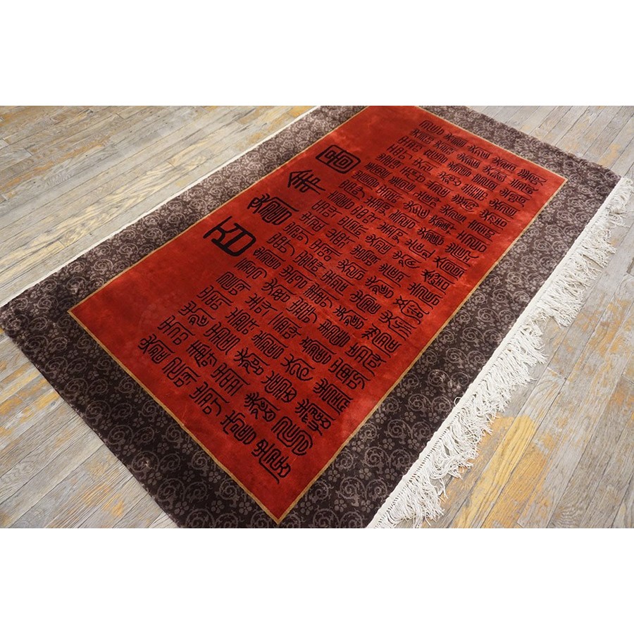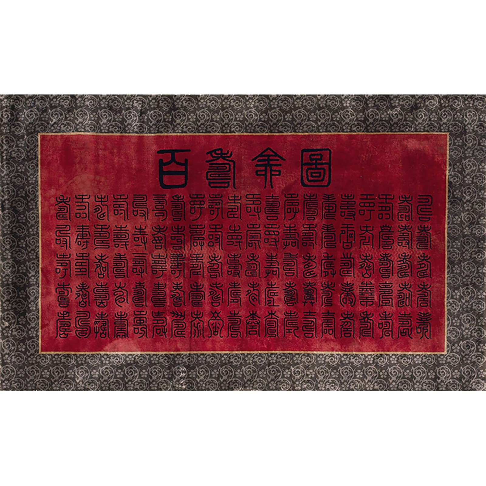 Vinatge 1980s Silk Chinese Carpet with 100 Different Characters for Longevity (Shou) ?
