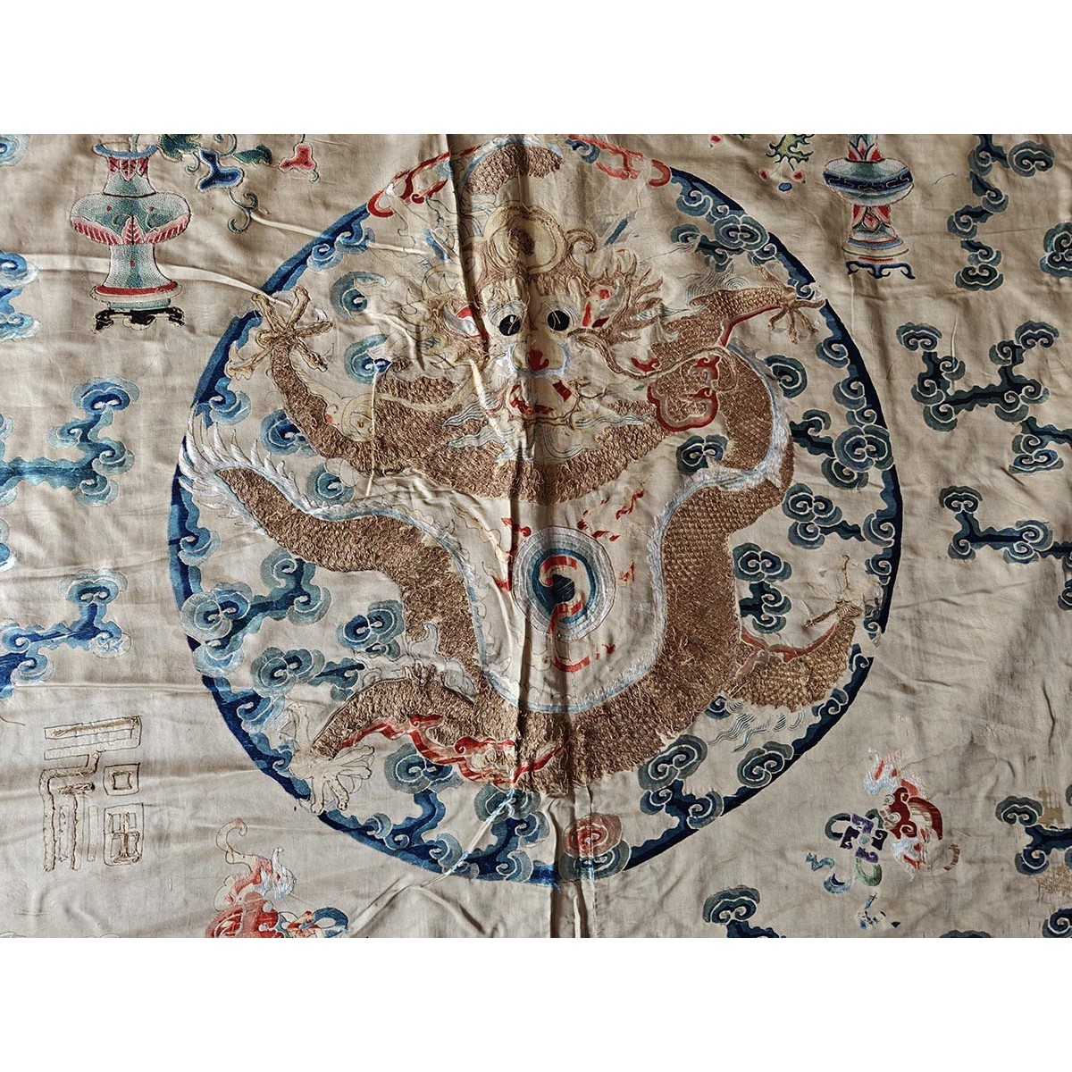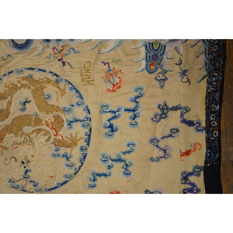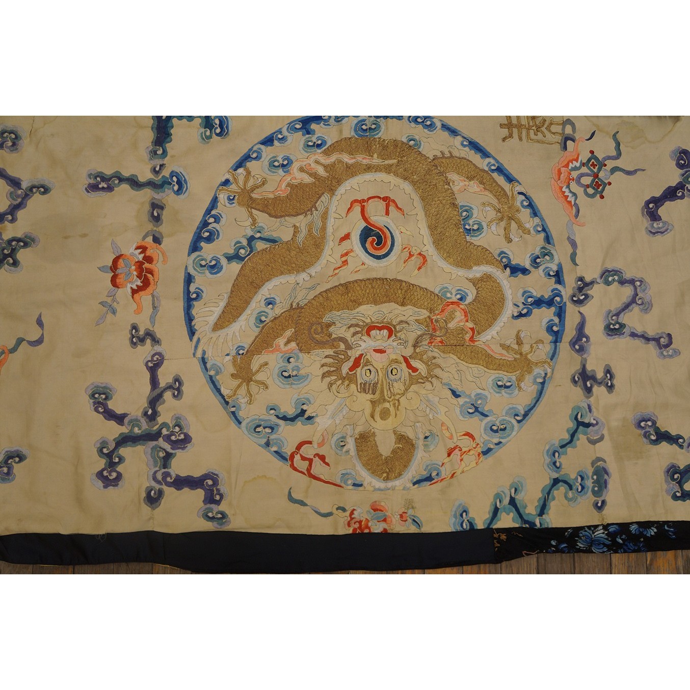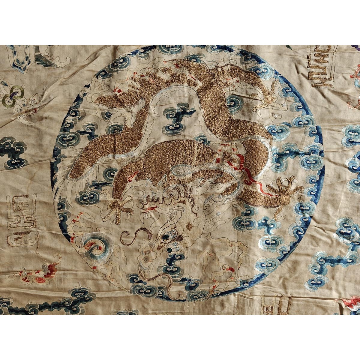 Early 19th Century Silk Chinese Dragon & Clouds Embroidery