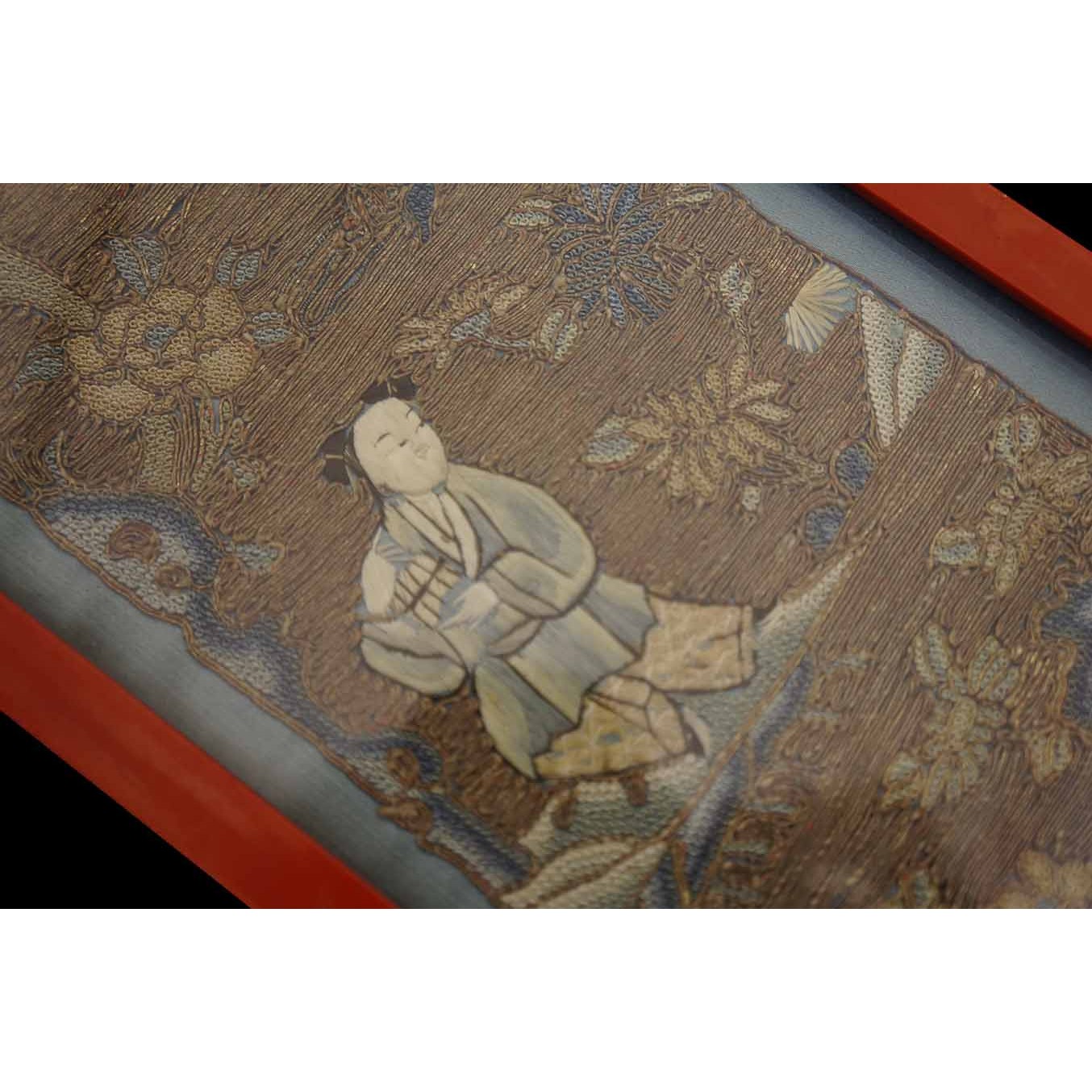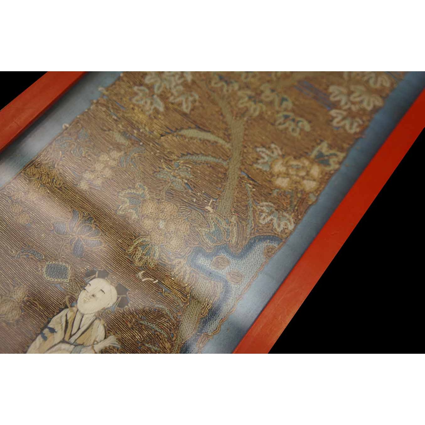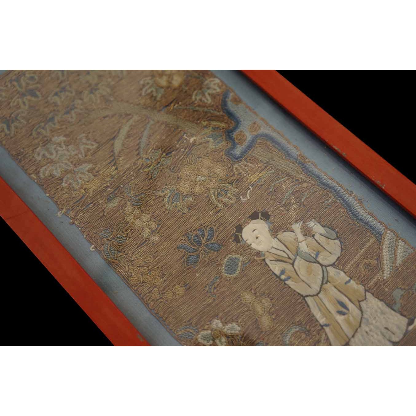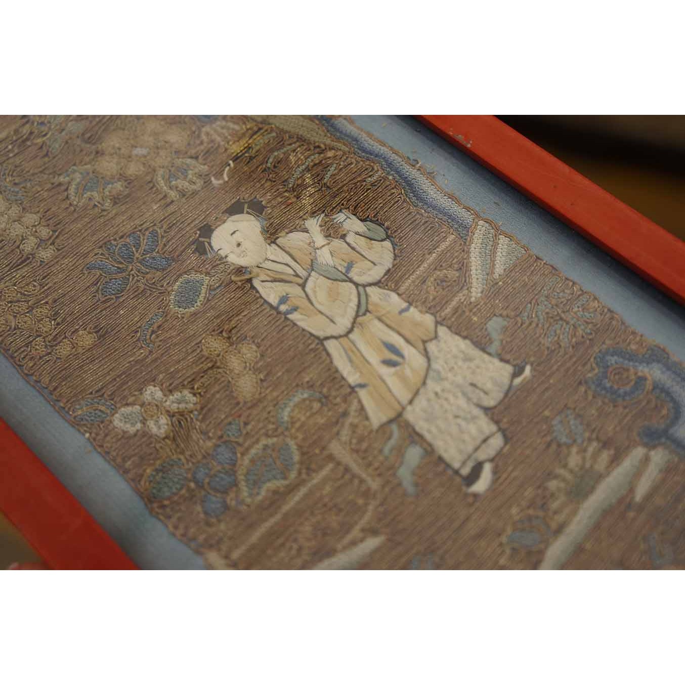 Late 19th Century Chinese Silk & Metallic Thread Scenic Embroidery