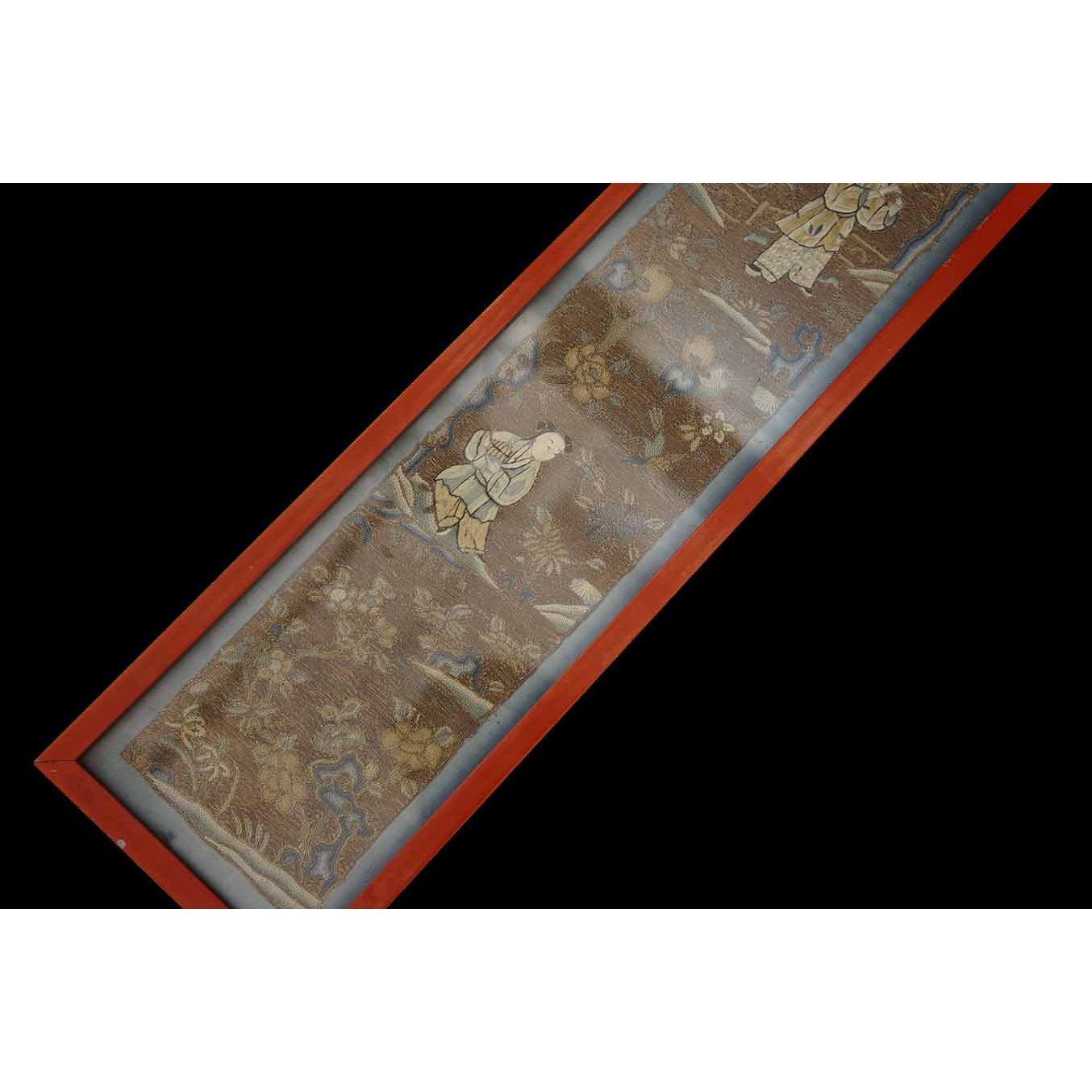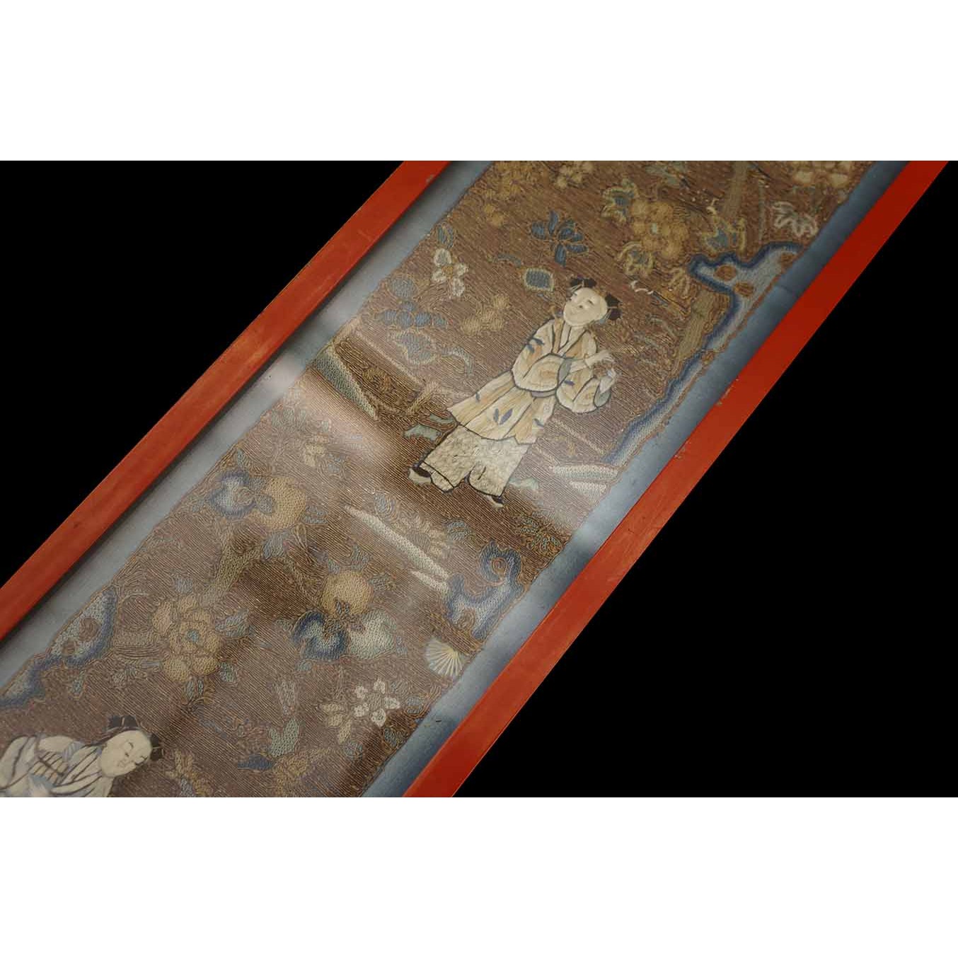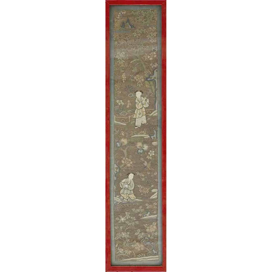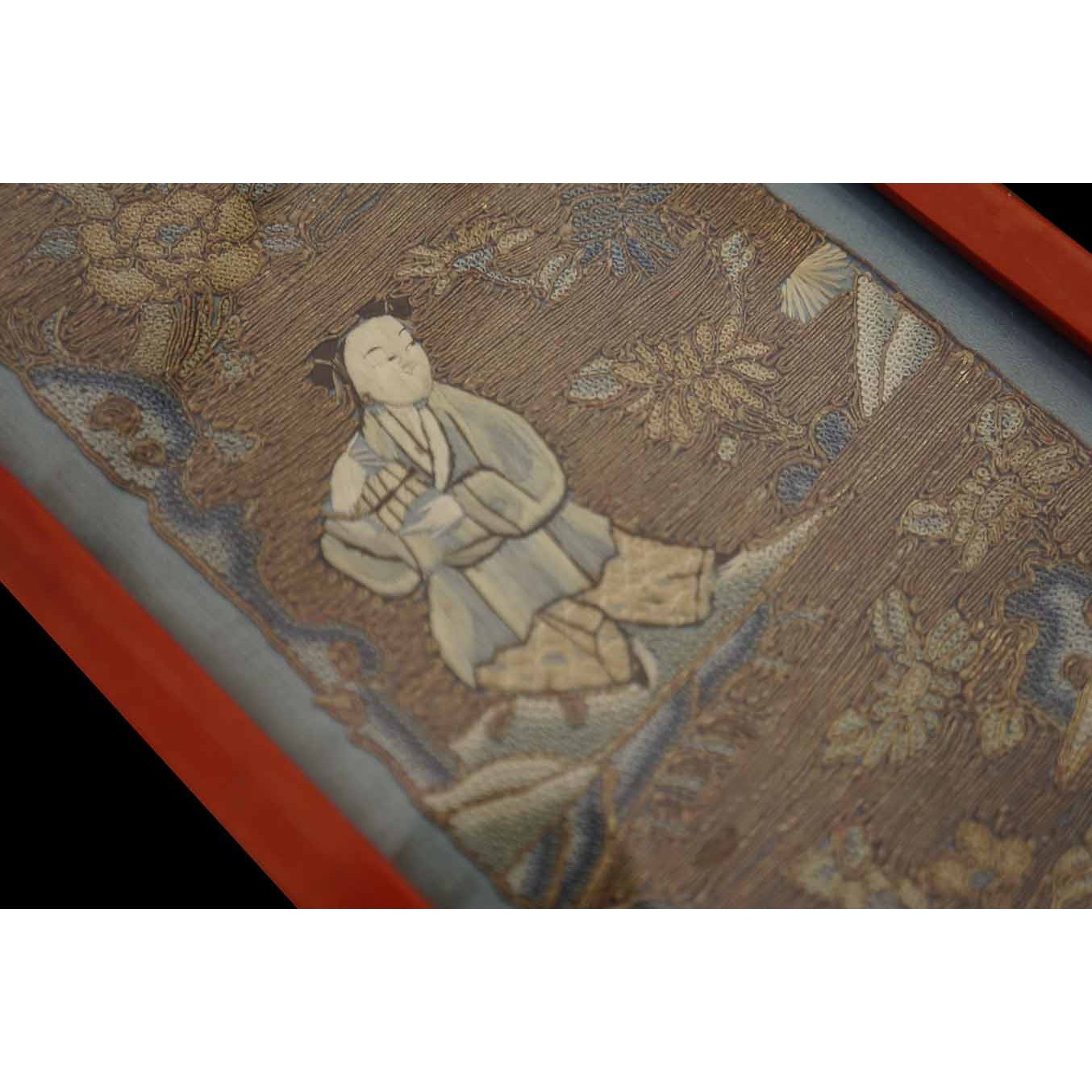 Late 19th Century Chinese Silk & Metallic Thread Scenic Embroidery