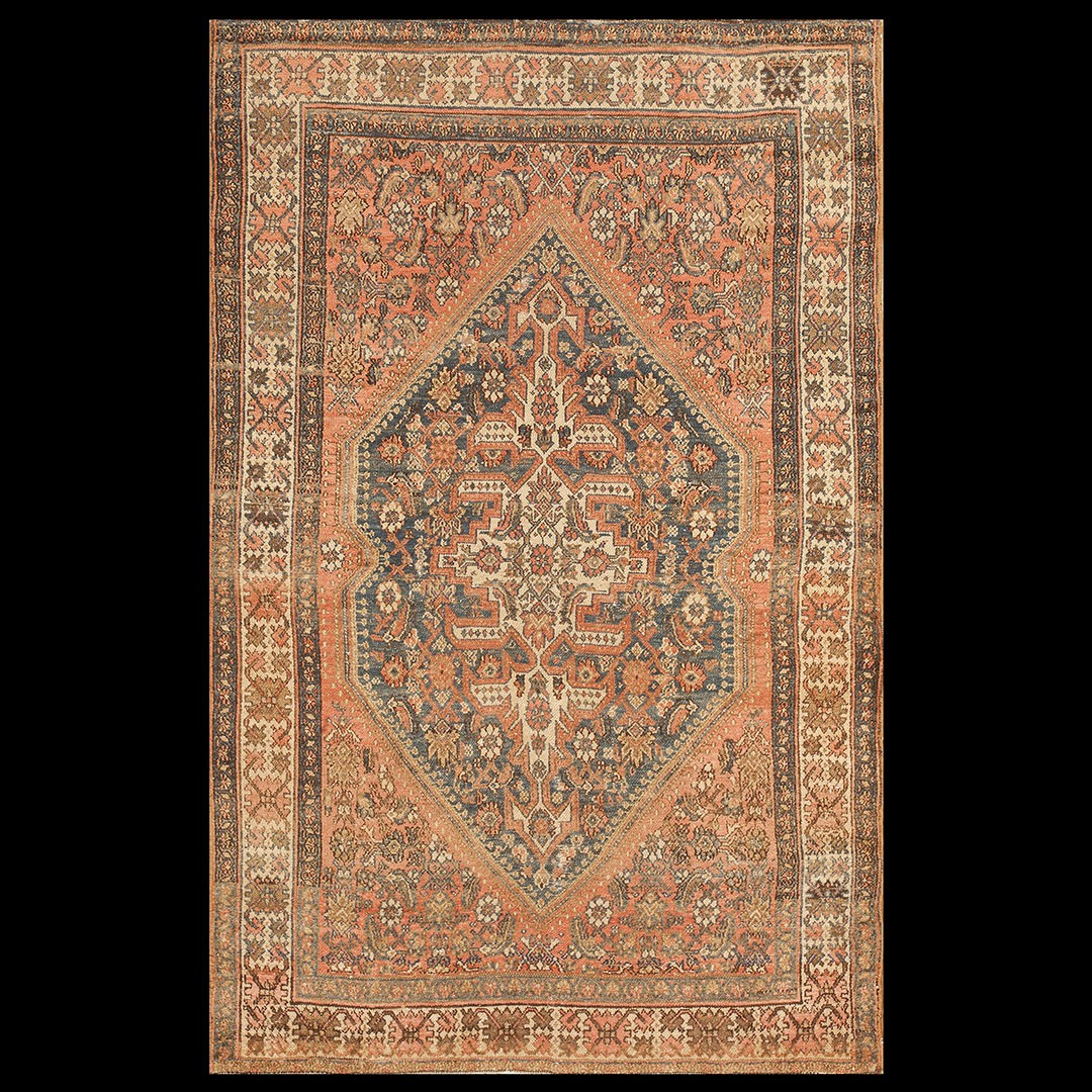 DescriptionHamadanThe old city of Echatana in southern Azerhaijan province, Persia. Rugs called Hamadan are not made in the city, but only marketed there. They are woven in 100s of Kurdish villages and tribal encampments in the surrounding area, in a welter of designs and qualities. Pile is all wool on a wool or cotton foundation, knots Turkish with semi-geometric to semi-floral designs, in sizes tending to scatters and runners. The best old pieces have camel border and fields (see Hamadan-Camel). Production of these inexpensive rugs continues unabated, and many 1000s of them are woven annually. | |