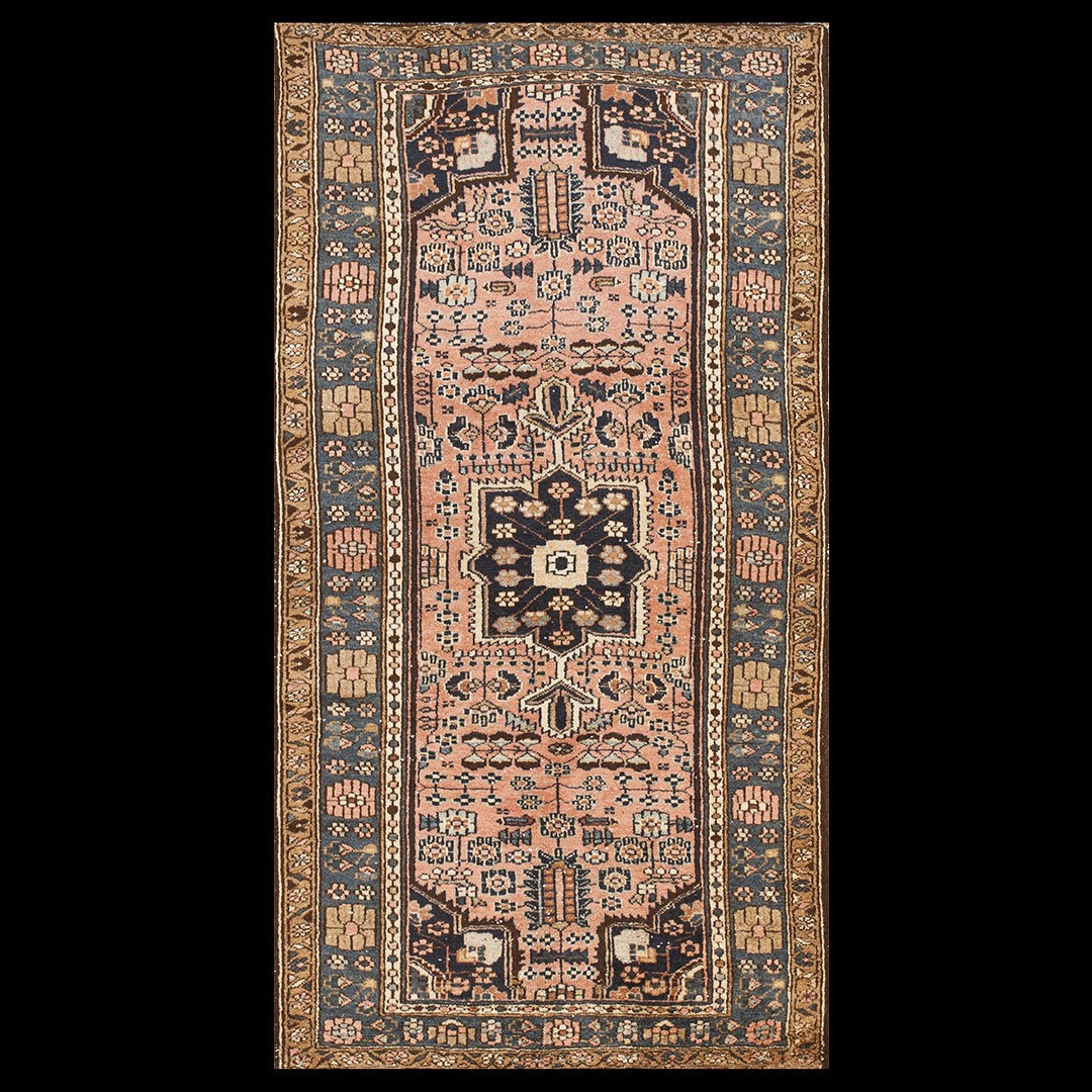 DescriptionHamadanThe old city of Echatana in southern Azerhaijan province, Persia. Rugs called Hamadan are not made in the city, but only marketed there. They are woven in 100s of Kurdish villages and tribal encampments in the surrounding area, in a welter of designs and qualities. Pile is all wool on a wool or cotton foundation, knots Turkish with semi-geometric to semi-floral designs, in sizes tending to scatters and runners. The best old pieces have camel border and fields (see Hamadan-Camel). Production of these inexpensive rugs continues unabated, and many 1000s of them are woven annually. | |