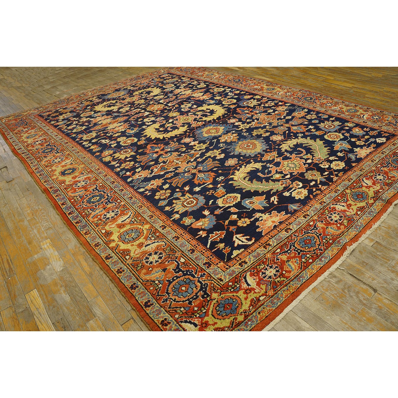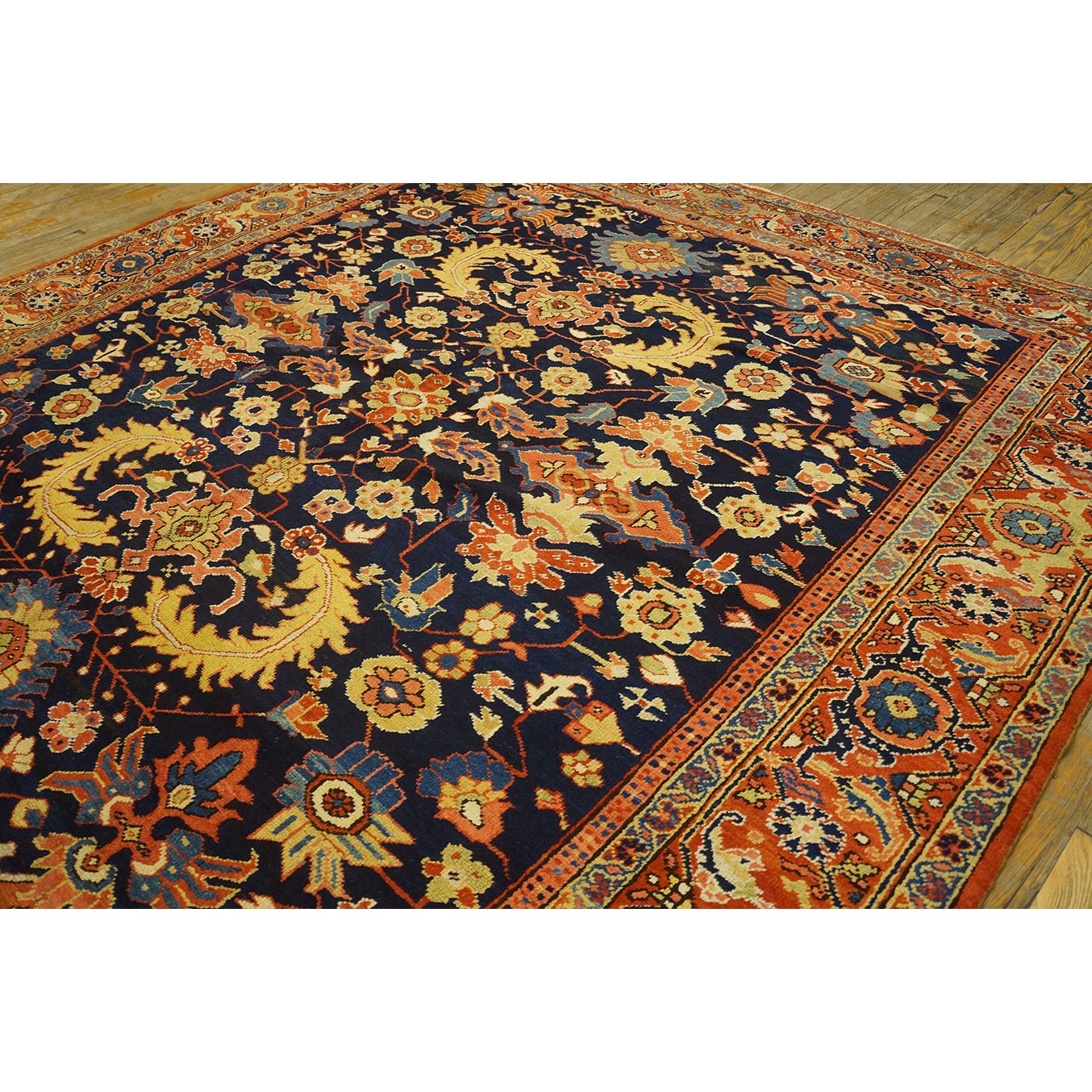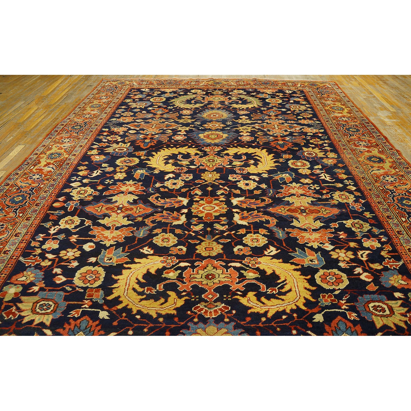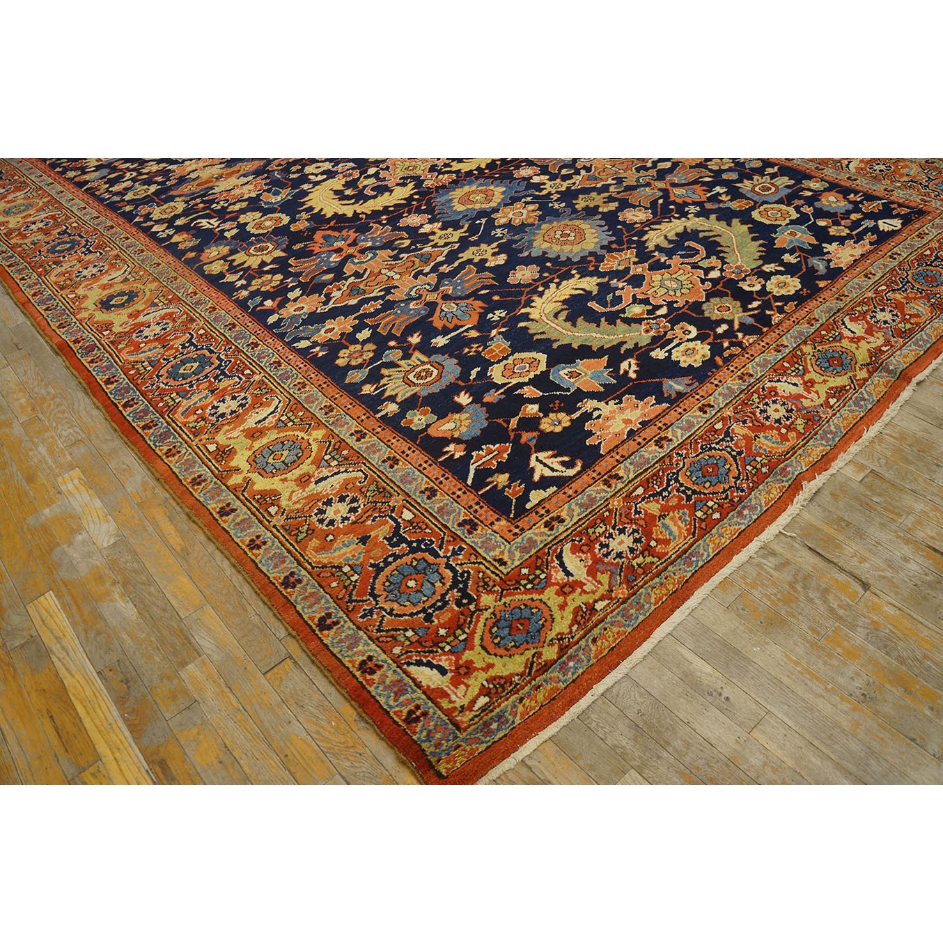 Although the majority of Heriz carpets from northwest Persia are in medallion styles, this example employs essentially an overall pattern of large lancet leaves, palmette assemblages and a colorful assortment of rosettes and geometric ornaments. This c.1910 carpet is moderately coarse in weave on an all cotton foundation with naturally sourced colors.