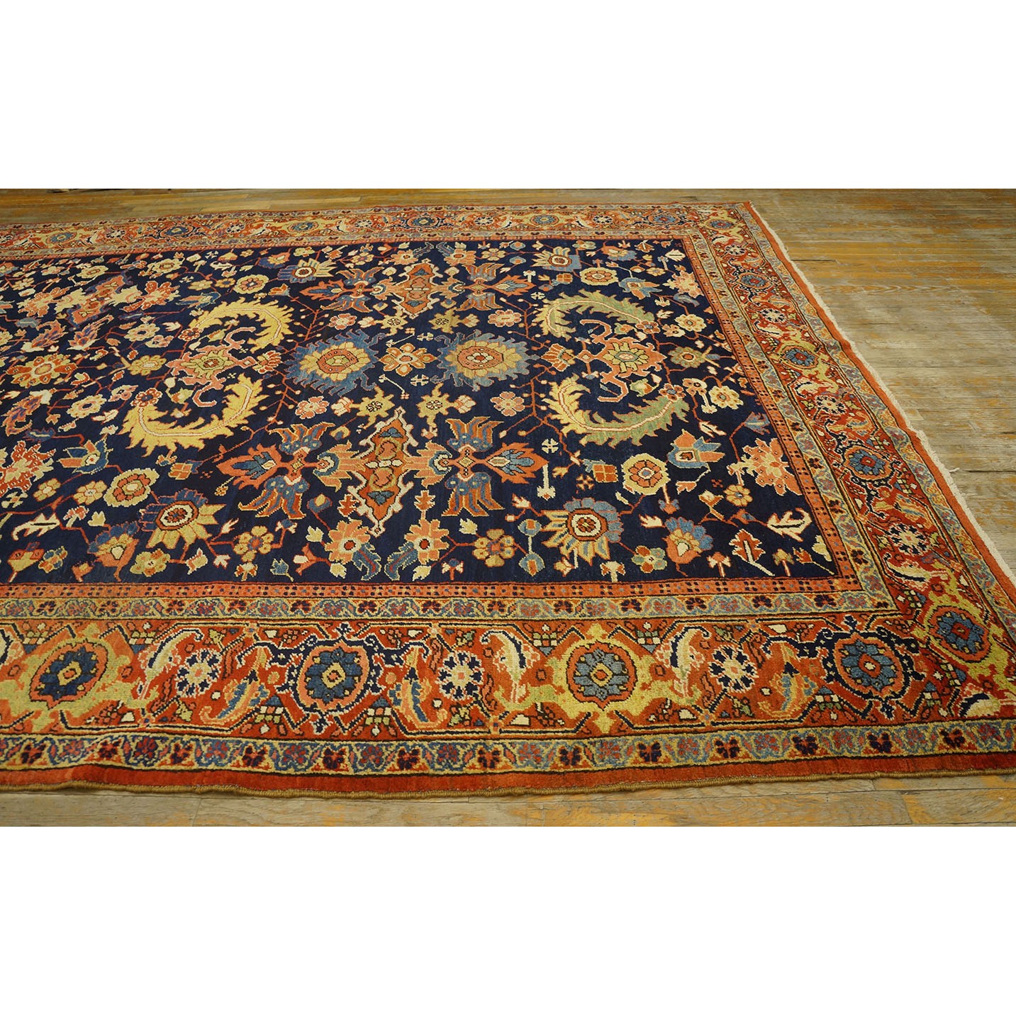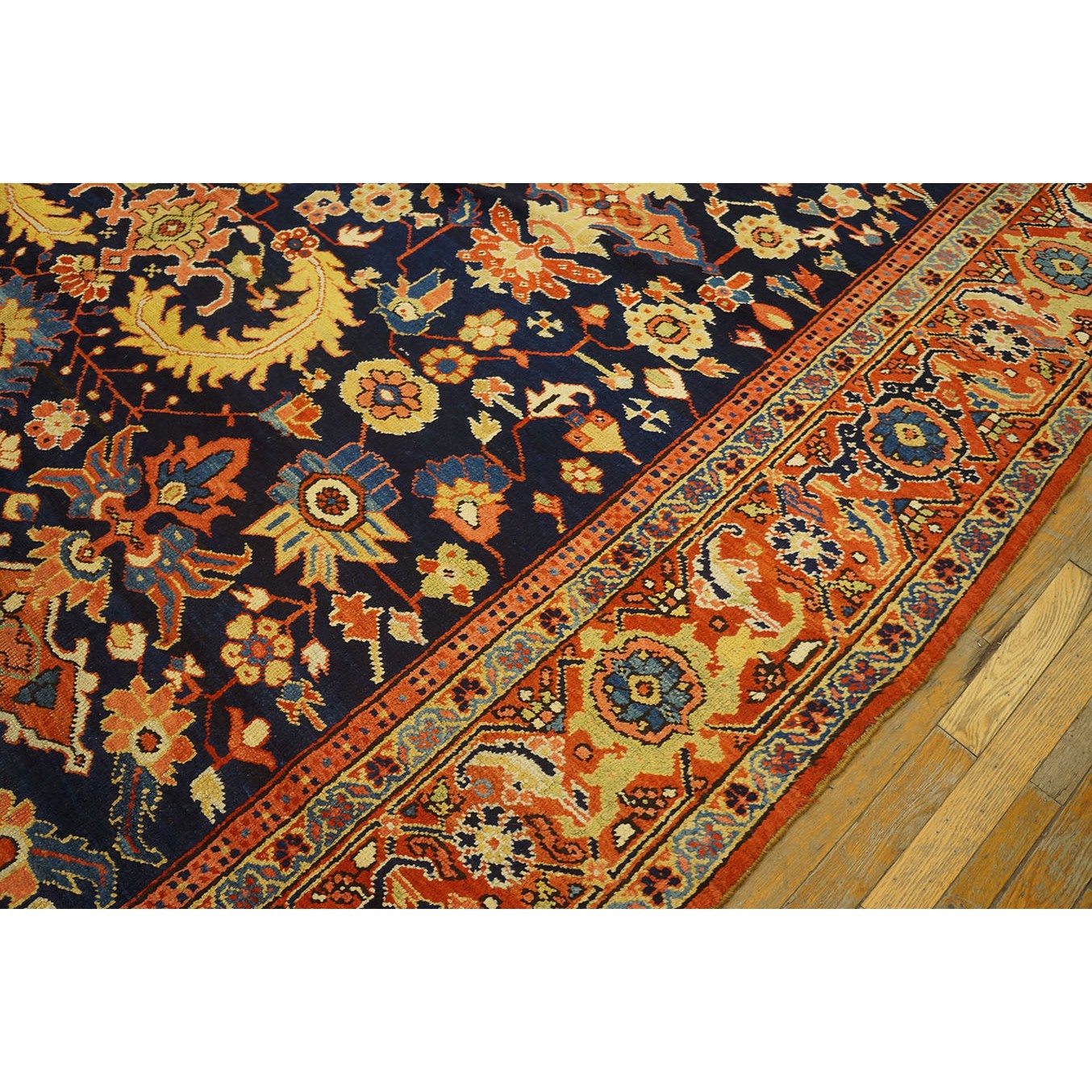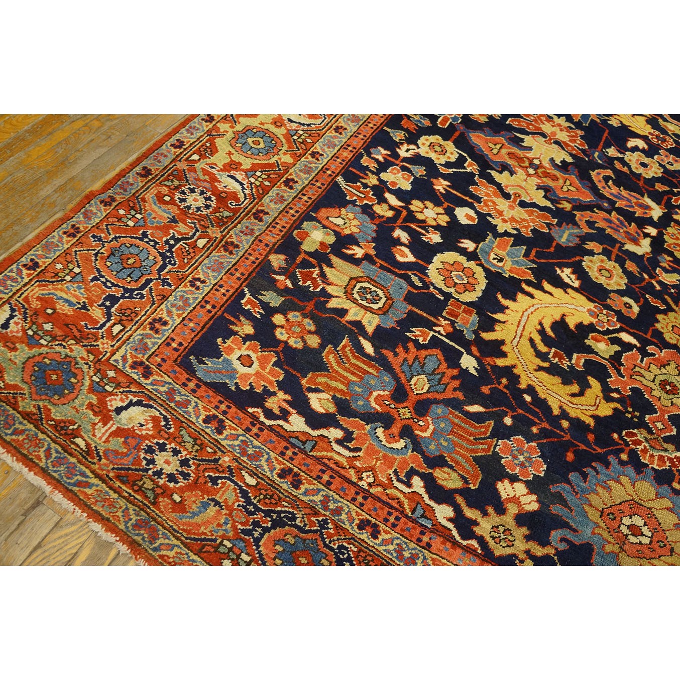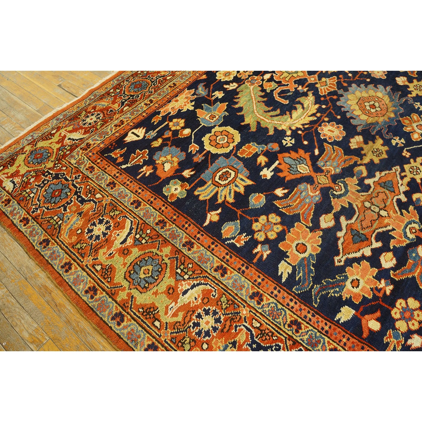 Although the majority of Heriz carpets from northwest Persia are in medallion styles, this example employs essentially an overall pattern of large lancet leaves, palmette assemblages and a colorful assortment of rosettes and geometric ornaments. This c.1910 carpet is moderately coarse in weave on an all cotton foundation with naturally sourced colors.