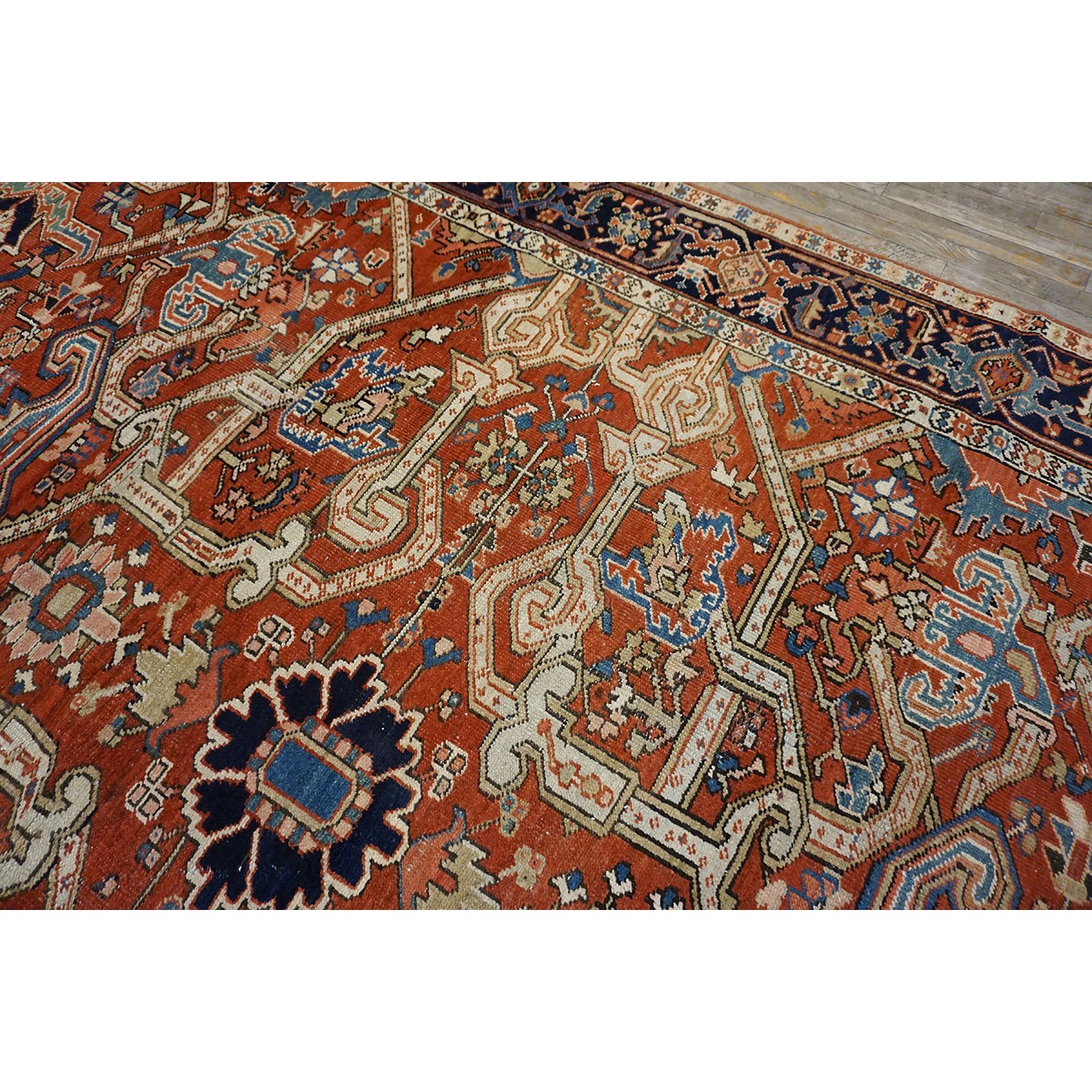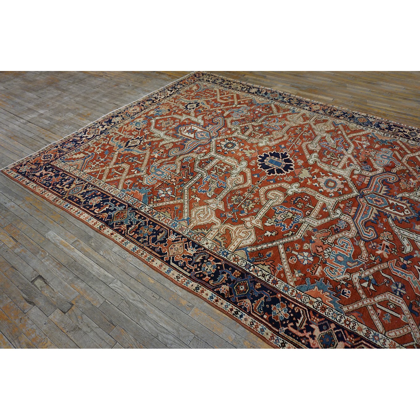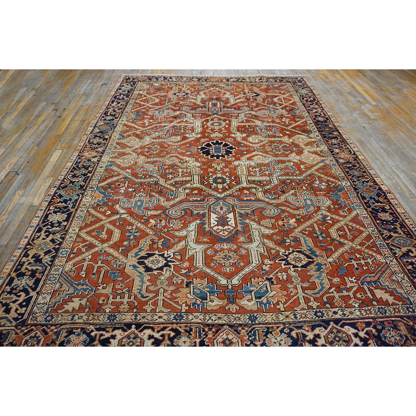 DescriptionHerizThe Heriz area in northern Azerbaijan Province (Iran) makes semi-geometric, strongly colored carpets in a variety of sizes from 2 x 3 up to 15 x 26, usually in medallion design, but formerly in a wide range of overall or centralized layouts. The area has been active for at least two centuries, with production expanding greatly in the late 19th century. Weave is medium to quite coarse but the dyes are excellent and vibrant. Silk rugs were made there in the 19th century, but production ceased by 1910. The Heriz carpet has been the most consistently popular and affordable oriental available for western consumption. | |