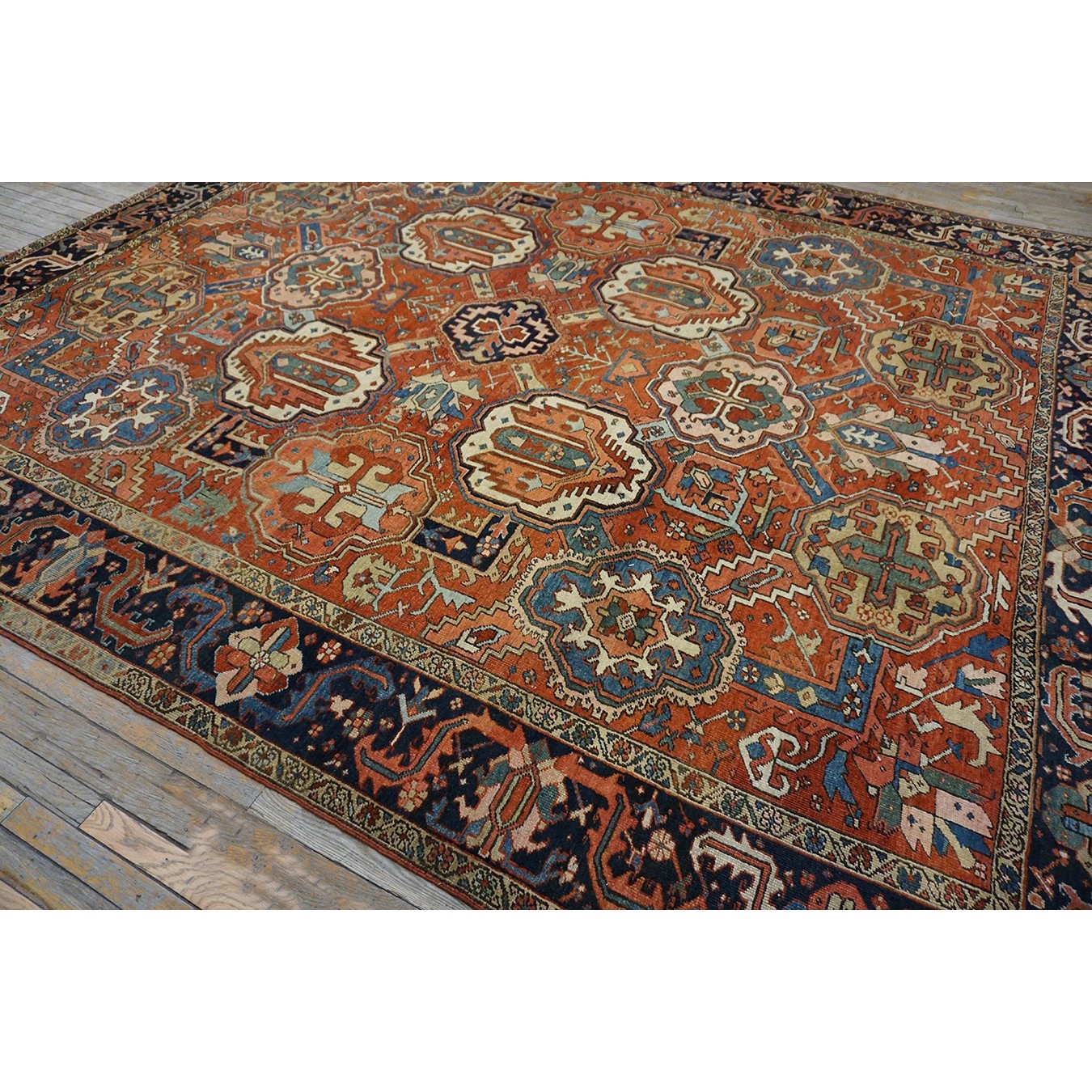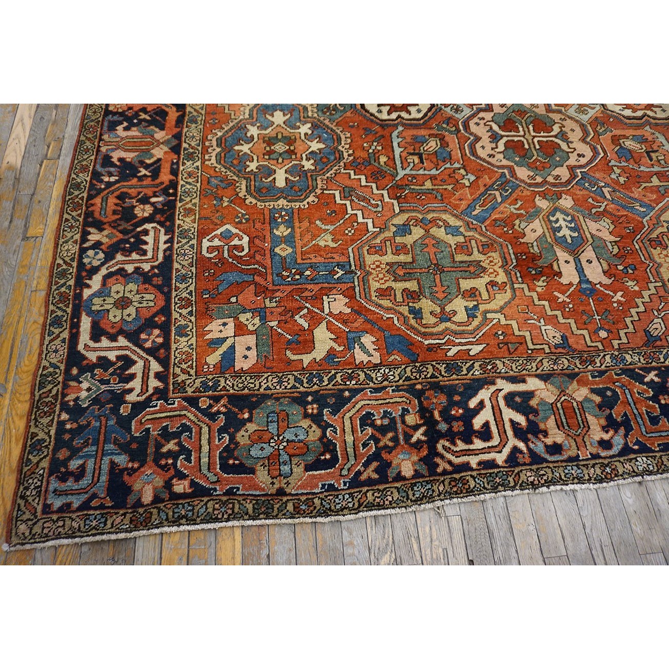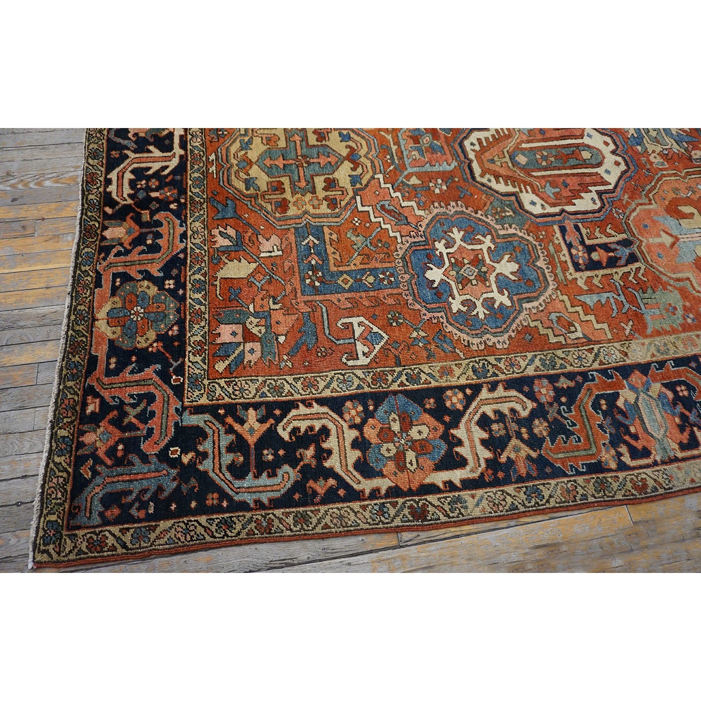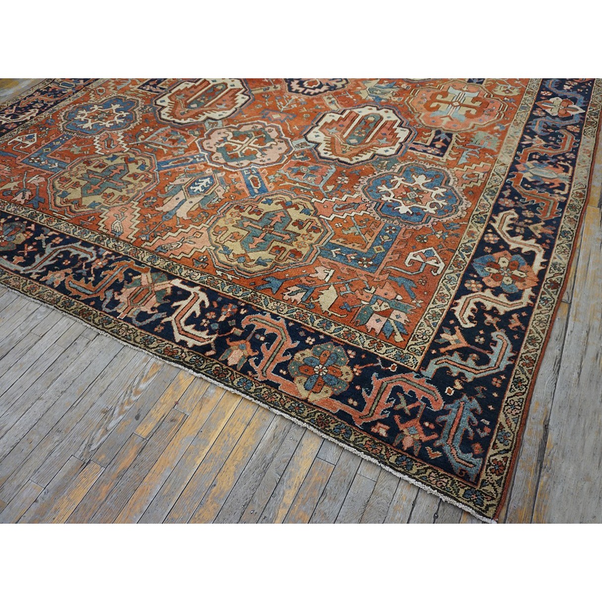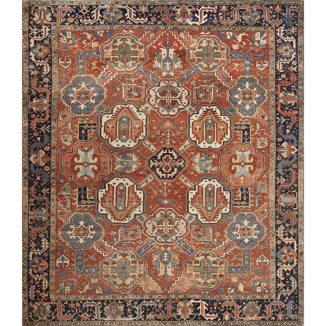 DescriptionHerizThe Heriz area in northern Azerbaijan Province (Iran) makes semi-geometric, strongly colored carpets in a variety of sizes from 2 x 3 up to 15 x 26, usually in medallion design, but formerly in a wide range of overall or centralized layouts. The area has been active for at least two centuries, with production expanding greatly in the late 19th century. Weave is medium to quite coarse but the dyes are excellent and vibrant. Silk rugs were made there in the 19th century, but production ceased by 1910. The Heriz carpet has been the most consistently popular and affordable oriental available for western consumption. | |