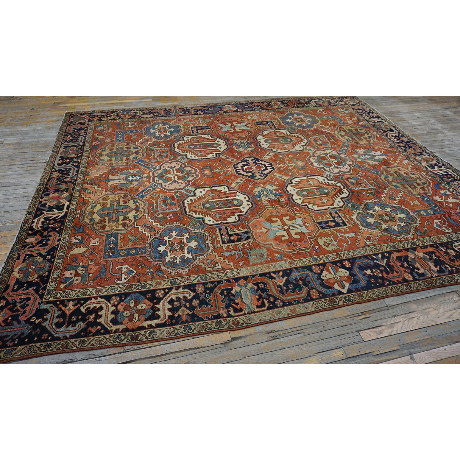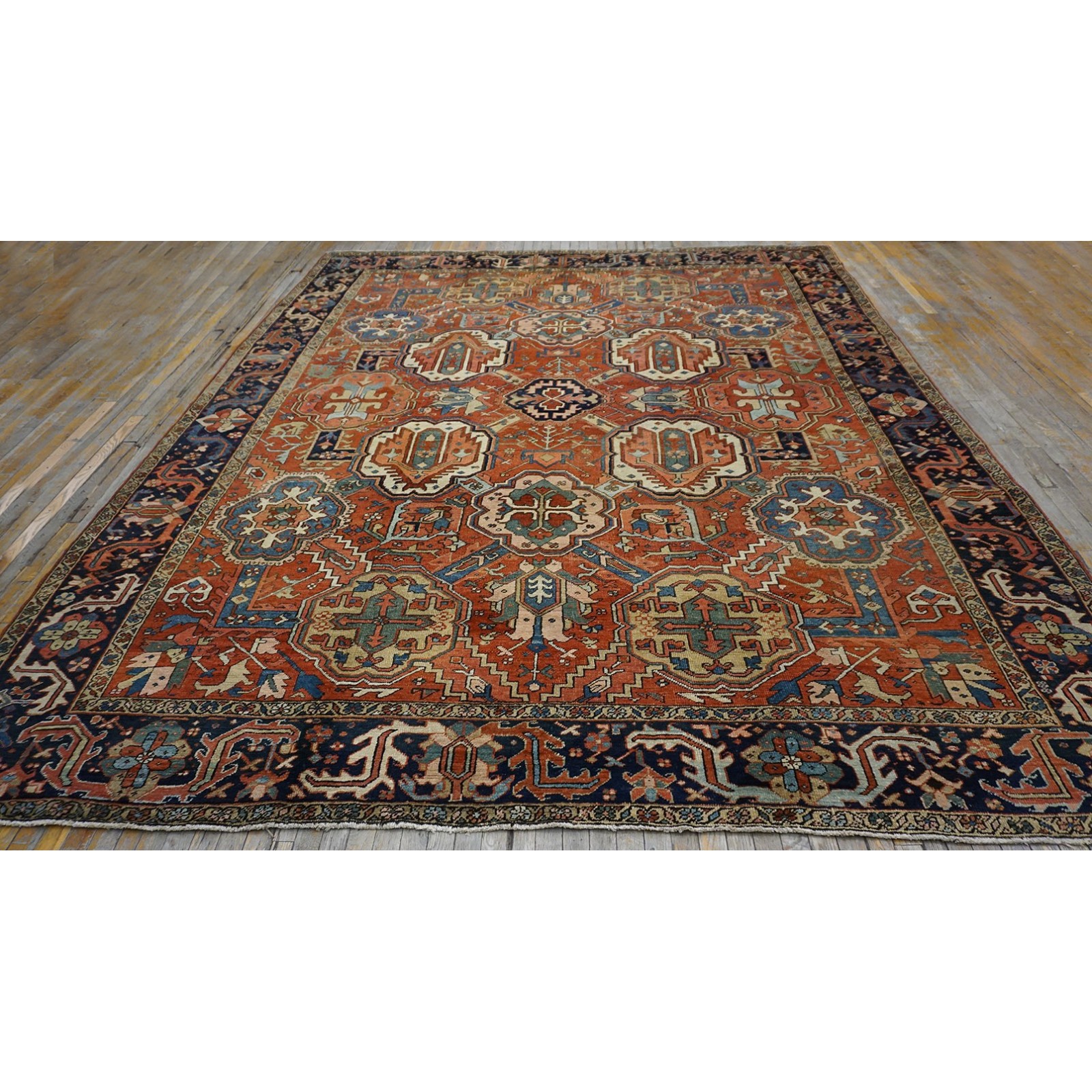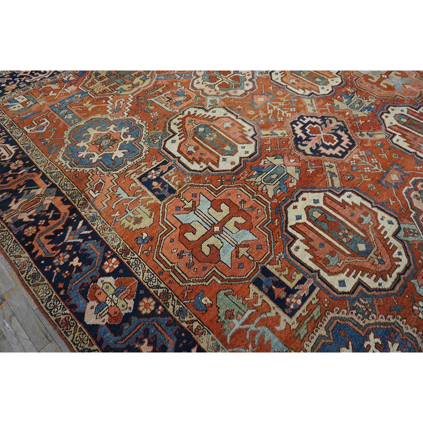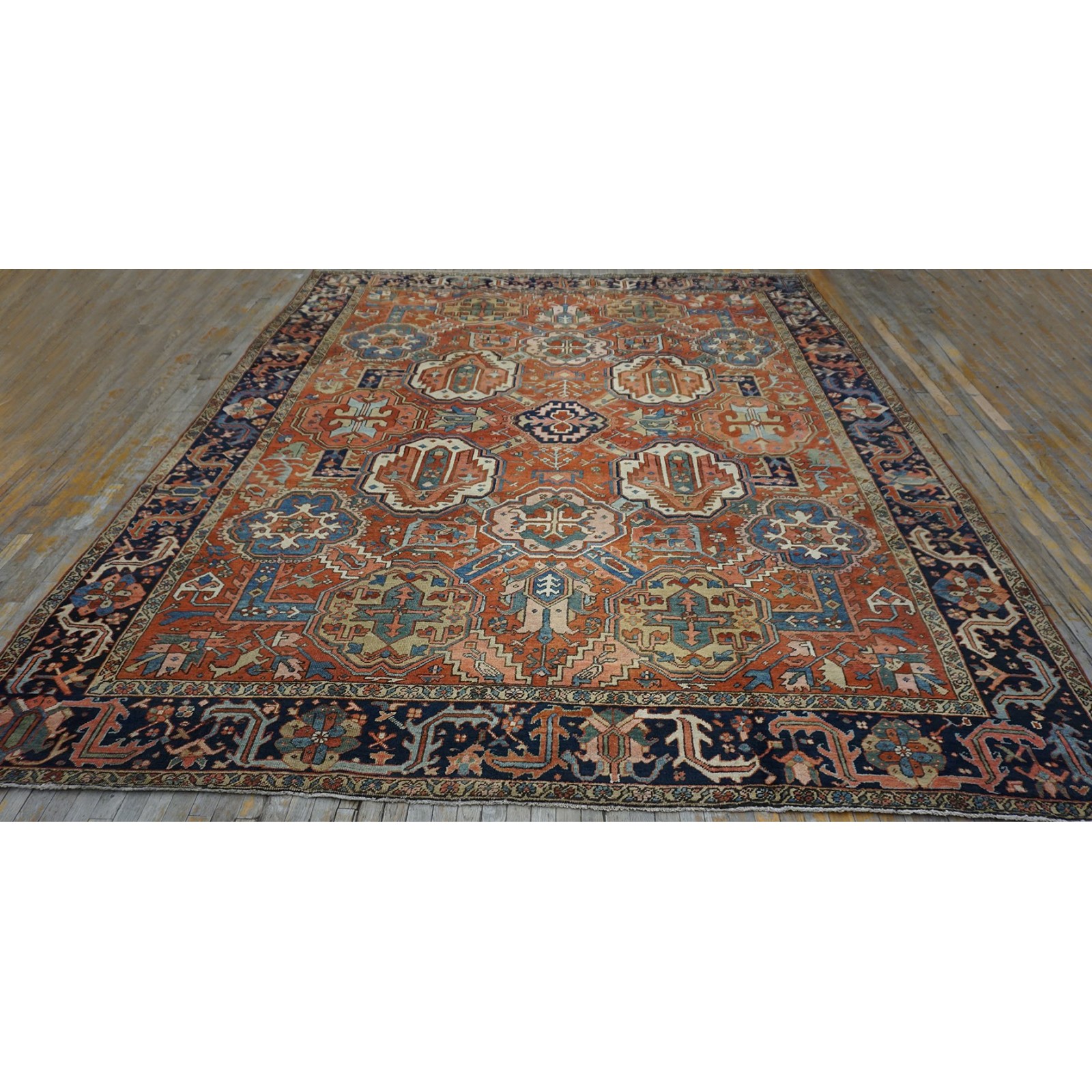 DescriptionHerizThe Heriz area in northern Azerbaijan Province (Iran) makes semi-geometric, strongly colored carpets in a variety of sizes from 2 x 3 up to 15 x 26, usually in medallion design, but formerly in a wide range of overall or centralized layouts. The area has been active for at least two centuries, with production expanding greatly in the late 19th century. Weave is medium to quite coarse but the dyes are excellent and vibrant. Silk rugs were made there in the 19th century, but production ceased by 1910. The Heriz carpet has been the most consistently popular and affordable oriental available for western consumption. | |