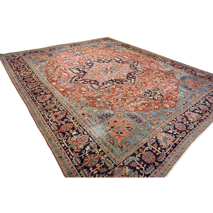 DescriptionHerizThe Heriz area in northern Azerbaijan Province (Iran) makes semi-geometric, strongly colored carpets in a variety of sizes from 2 x 3 up to 15 x 26, usually in medallion design, but formerly in a wide range of overall or centralized layouts. The area has been active for at least two centuries, with production expanding greatly in the late 19th century. Weave is medium to quite coarse but the dyes are excellent and vibrant. Silk rugs were made there in the 19th century, but production ceased by 1910. The Heriz carpet has been the most consistently popular and affordable oriental available for western consumption. | |