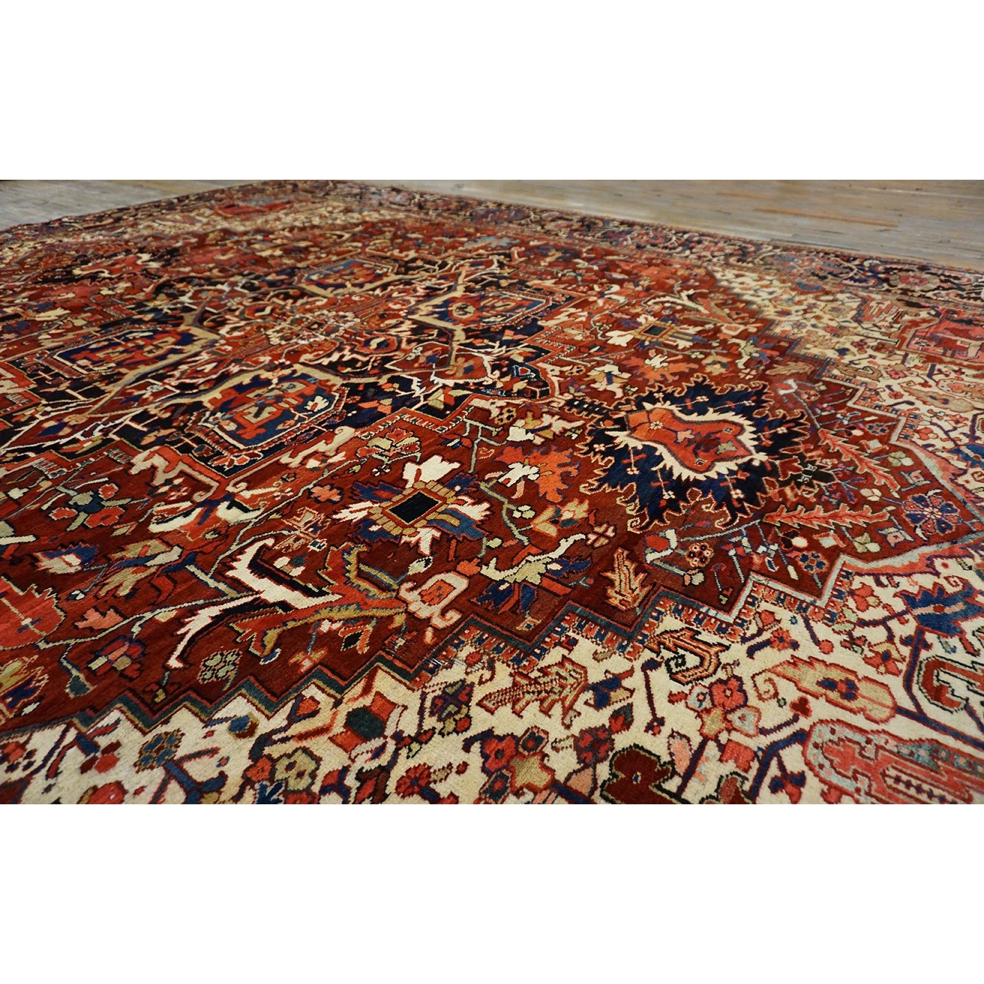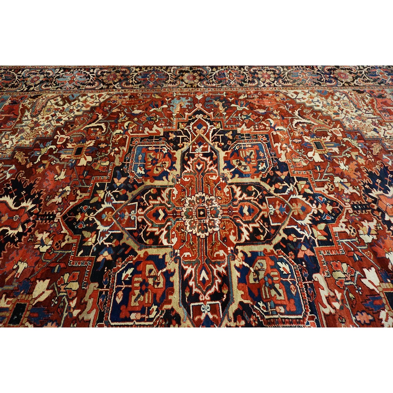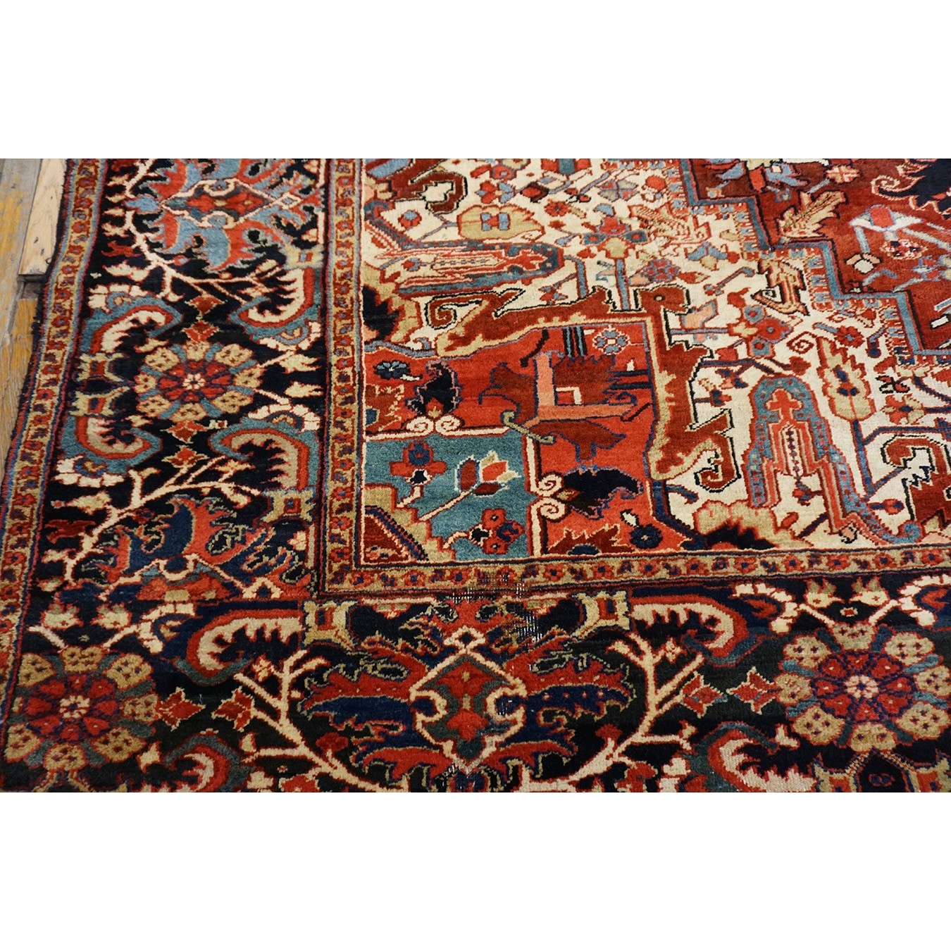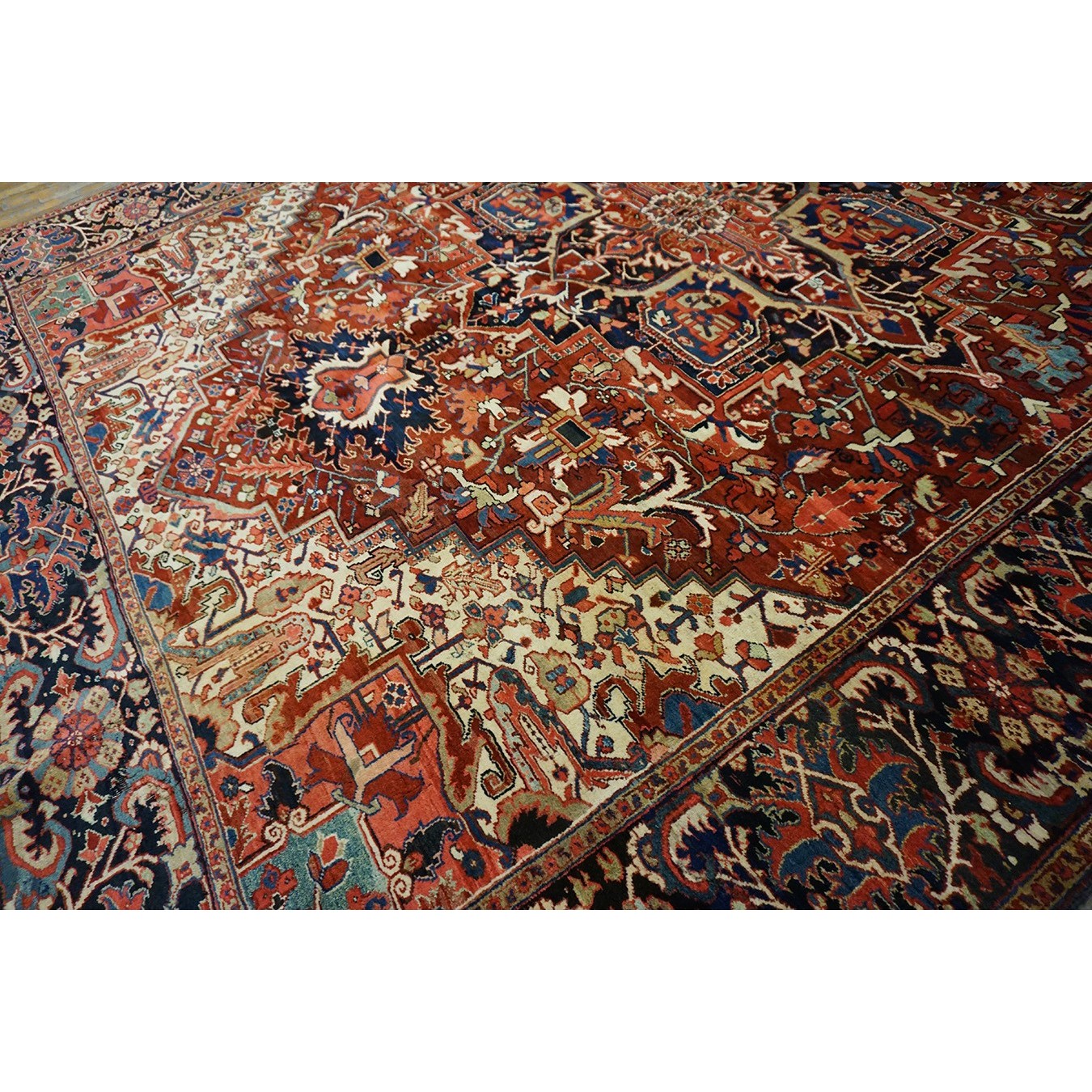 DescriptionHerizThe Heriz area in northern Azerbaijan Province (Iran) makes semi-geometric, strongly colored carpets in a variety of sizes from 2 x 3 up to 15 x 26, usually in medallion design, but formerly in a wide range of overall or centralized layouts. The area has been active for at least two centuries, with production expanding greatly in the late 19th century. Weave is medium to quite coarse but the dyes are excellent and vibrant. Silk rugs were made there in the 19th century, but production ceased by 1910. The Heriz carpet has been the most consistently popular and affordable oriental available for western consumption. | |