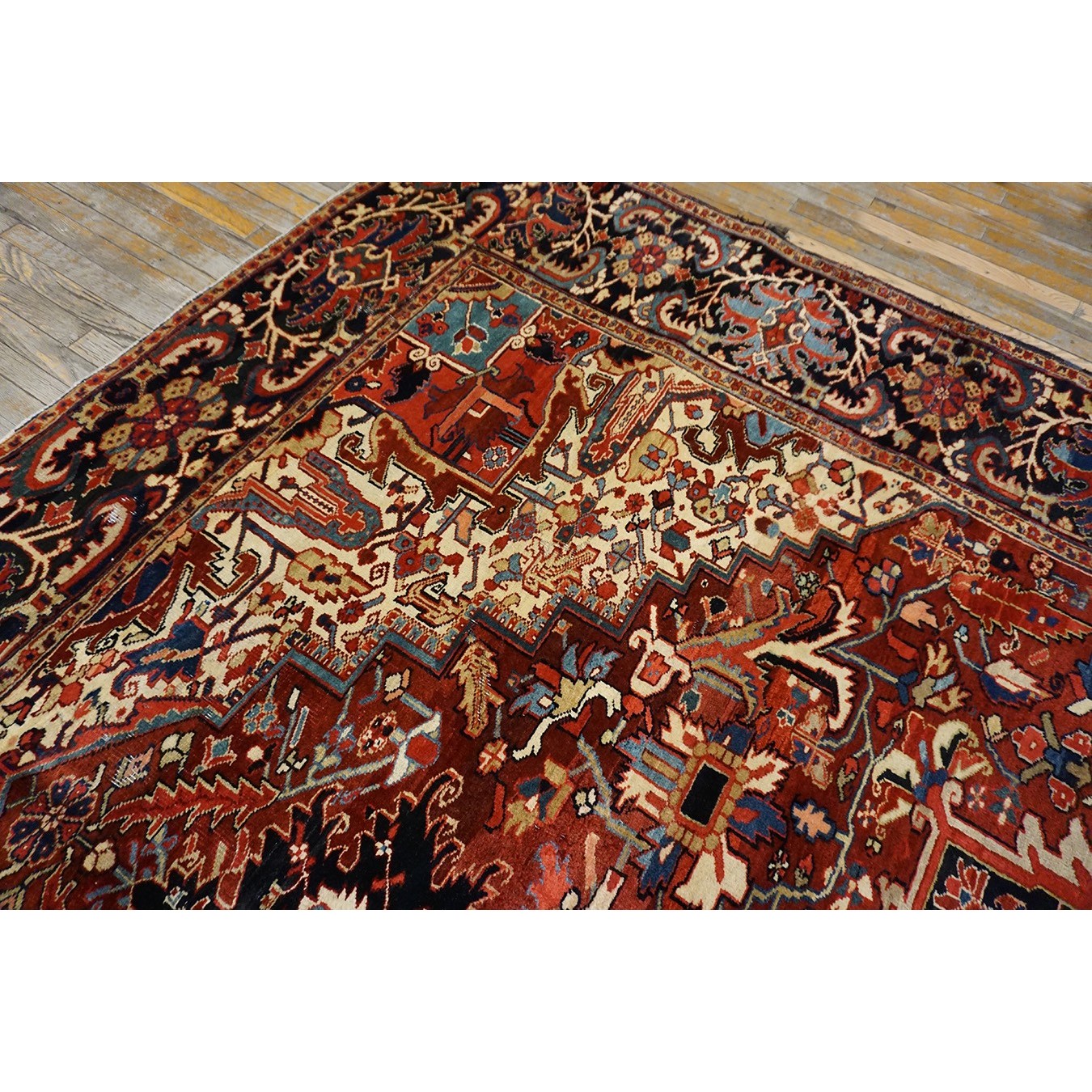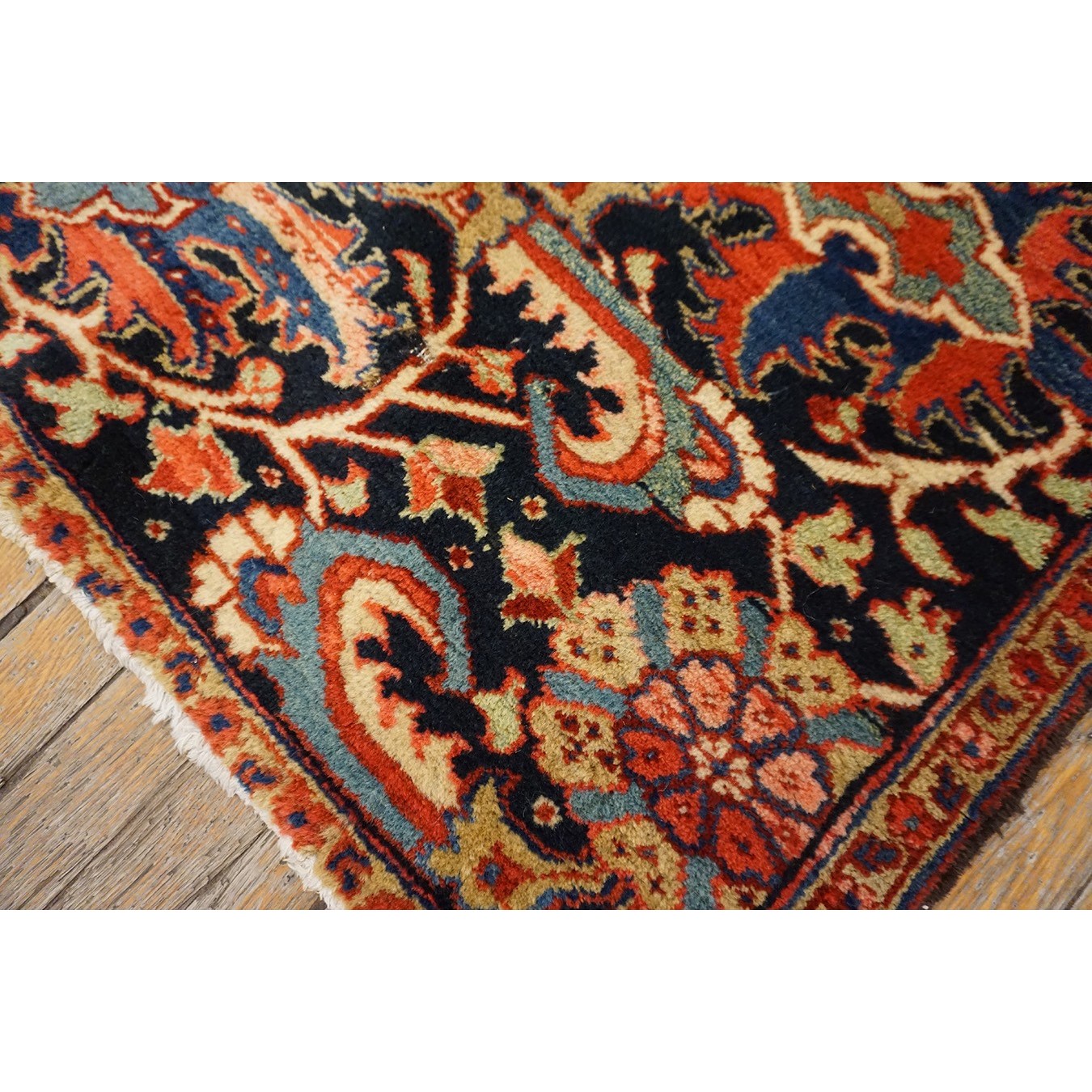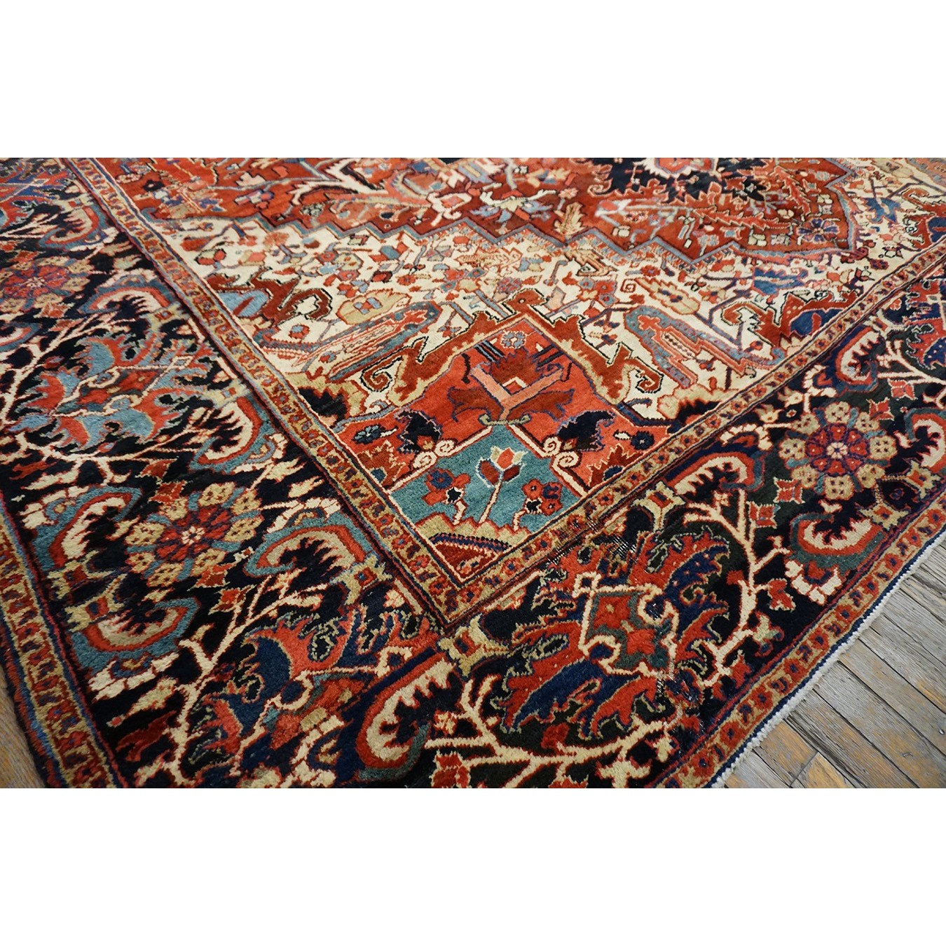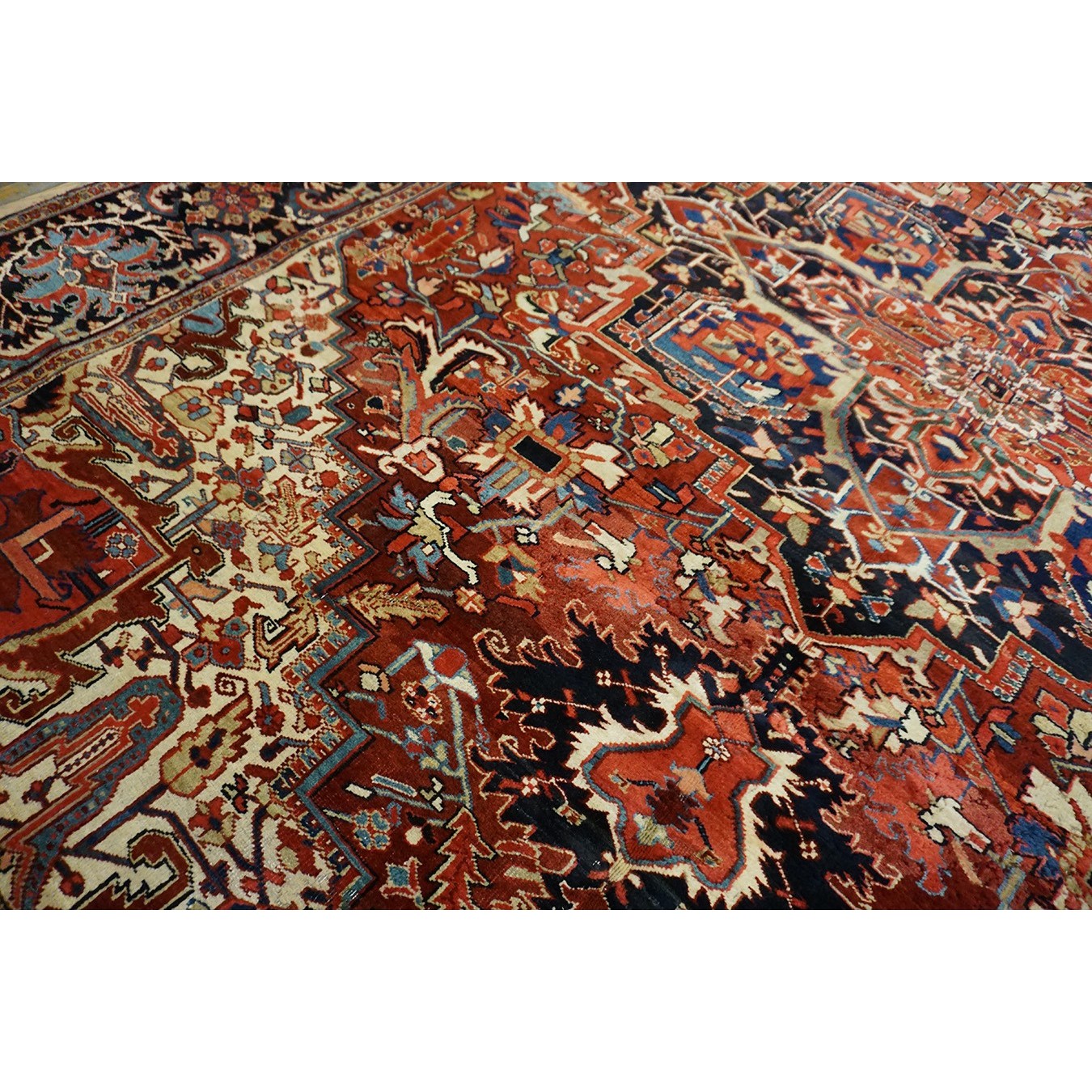 DescriptionHerizThe Heriz area in northern Azerbaijan Province (Iran) makes semi-geometric, strongly colored carpets in a variety of sizes from 2 x 3 up to 15 x 26, usually in medallion design, but formerly in a wide range of overall or centralized layouts. The area has been active for at least two centuries, with production expanding greatly in the late 19th century. Weave is medium to quite coarse but the dyes are excellent and vibrant. Silk rugs were made there in the 19th century, but production ceased by 1910. The Heriz carpet has been the most consistently popular and affordable oriental available for western consumption. | |
