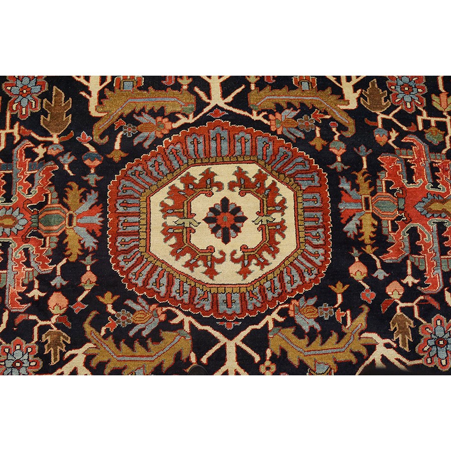 DescriptionHerizThe Heriz area in northern Azerbaijan Province (Iran) makes semi-geometric, strongly colored carpets in a variety of sizes from 2 x 3 up to 15 x 26, usually in medallion design, but formerly in a wide range of overall or centralized layouts. The area has been active for at least two centuries, with production expanding greatly in the late 19th century. Weave is medium to quite coarse but the dyes are excellent and vibrant. Silk rugs were made there in the 19th century, but production ceased by 1910. The Heriz carpet has been the most consistently popular and affordable oriental available for western consumption. | |