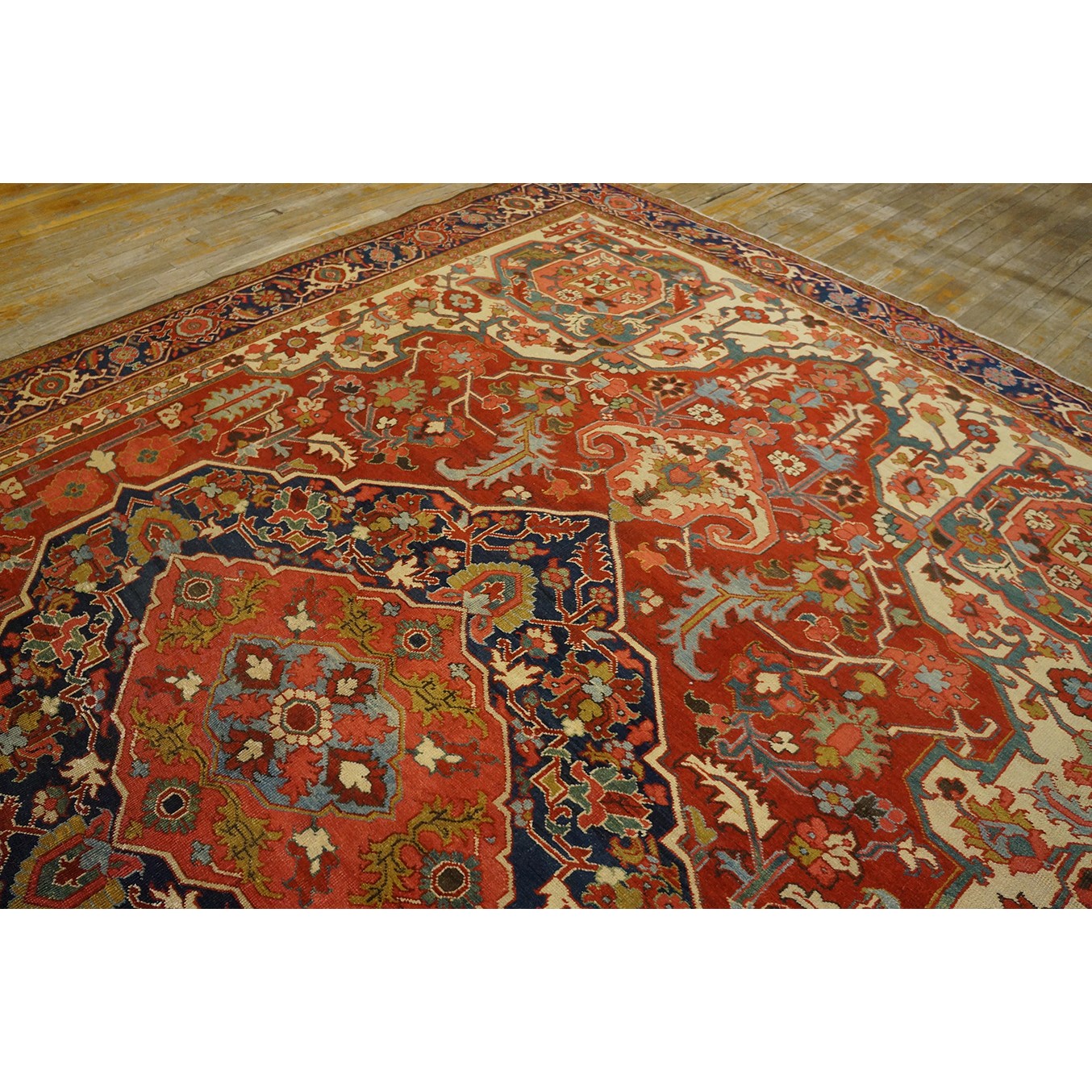 DescriptionHerizThe Heriz area in northern Azerbaijan Province (Iran) makes semi-geometric, strongly colored carpets in a variety of sizes from 2 x 3 up to 15 x 26, usually in medallion design, but formerly in a wide range of overall or centralized layouts. The area has been active for at least two centuries, with production expanding greatly in the late 19th century. Weave is medium to quite coarse but the dyes are excellent and vibrant. Silk rugs were made there in the 19th century, but production ceased by 1910. The Heriz carpet has been the most consistently popular and affordable oriental available for western consumption. | |