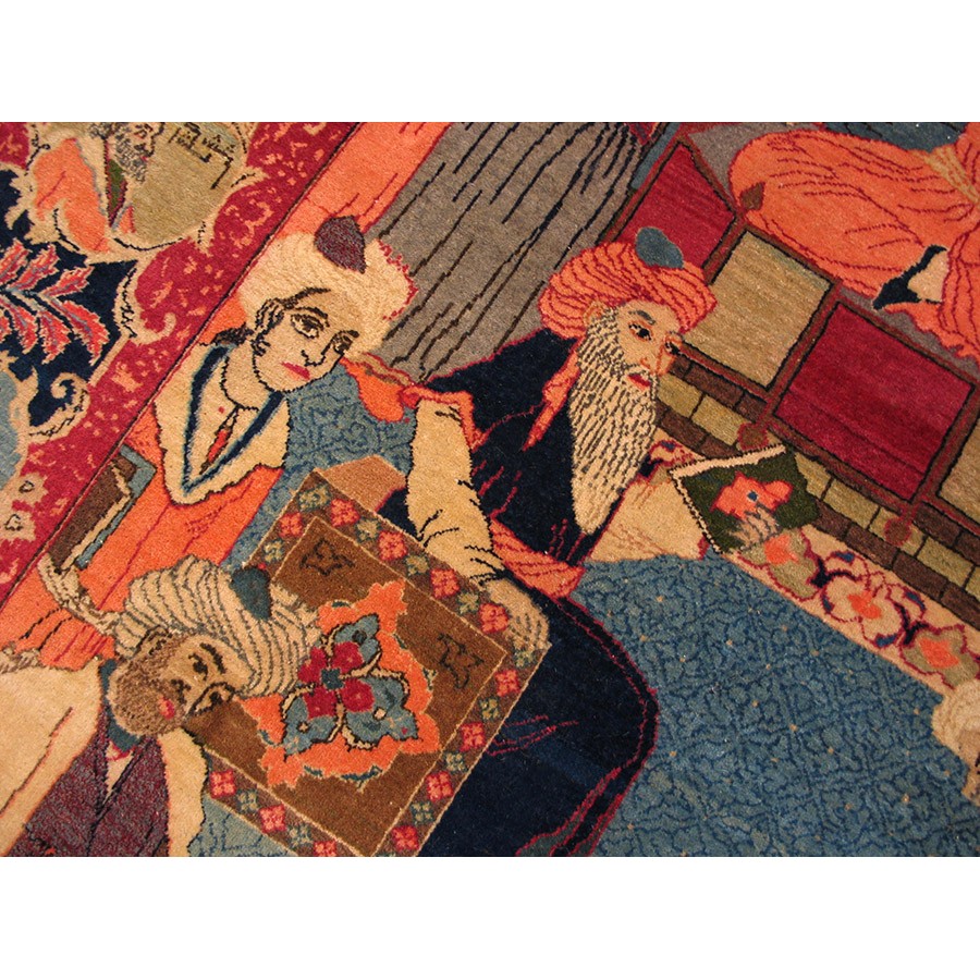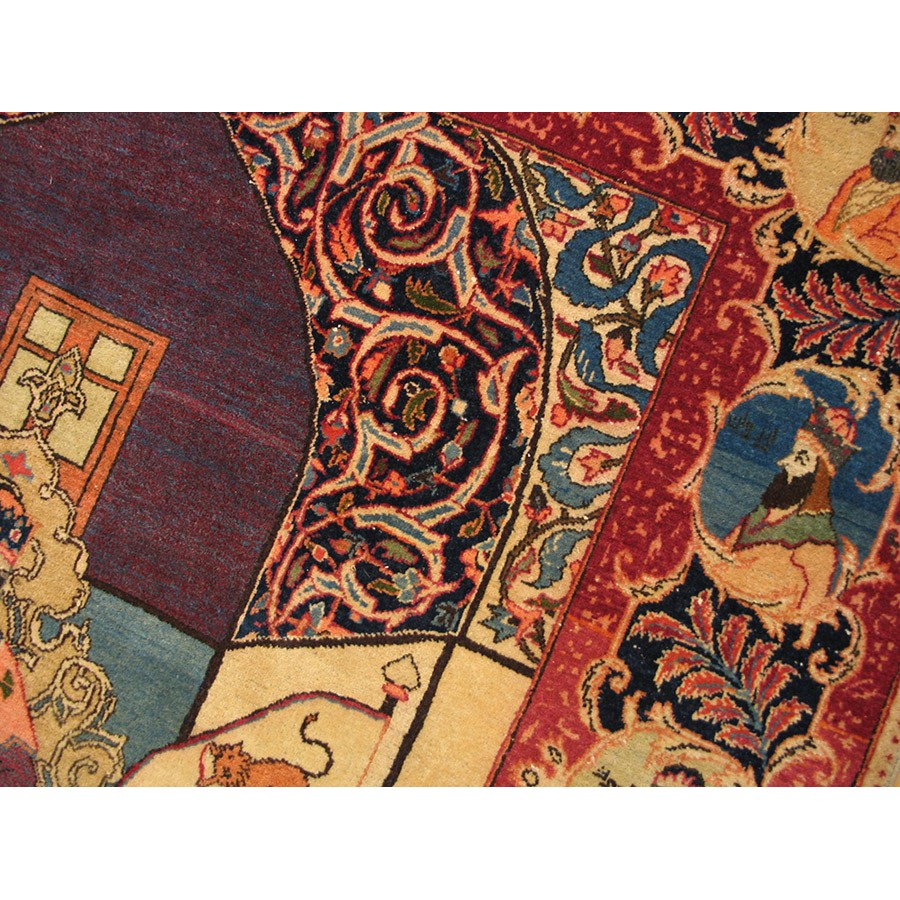 1940s Persian Pictorial Kashan Mashahir Carpet