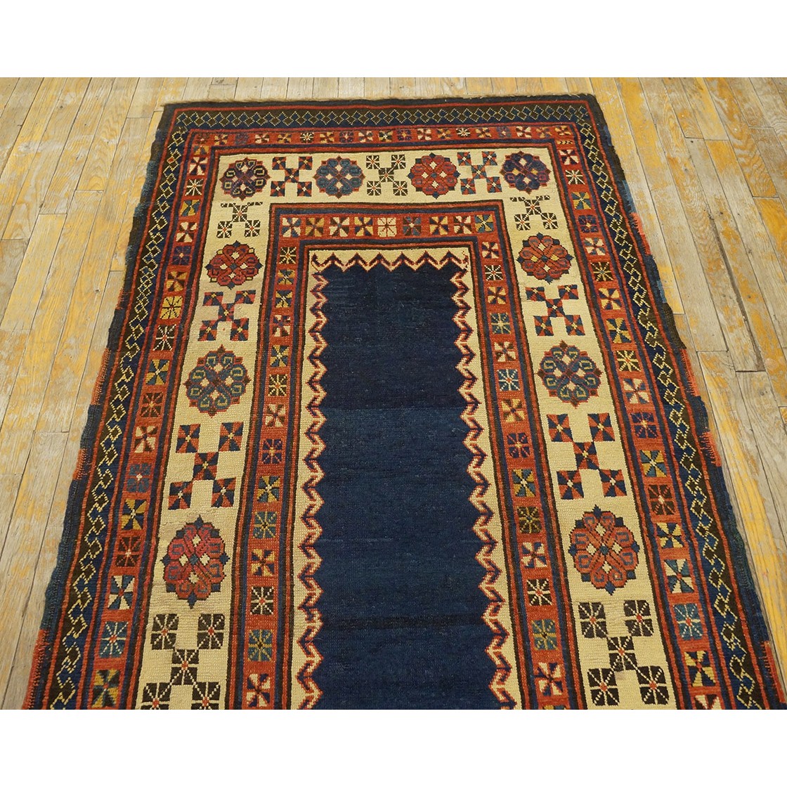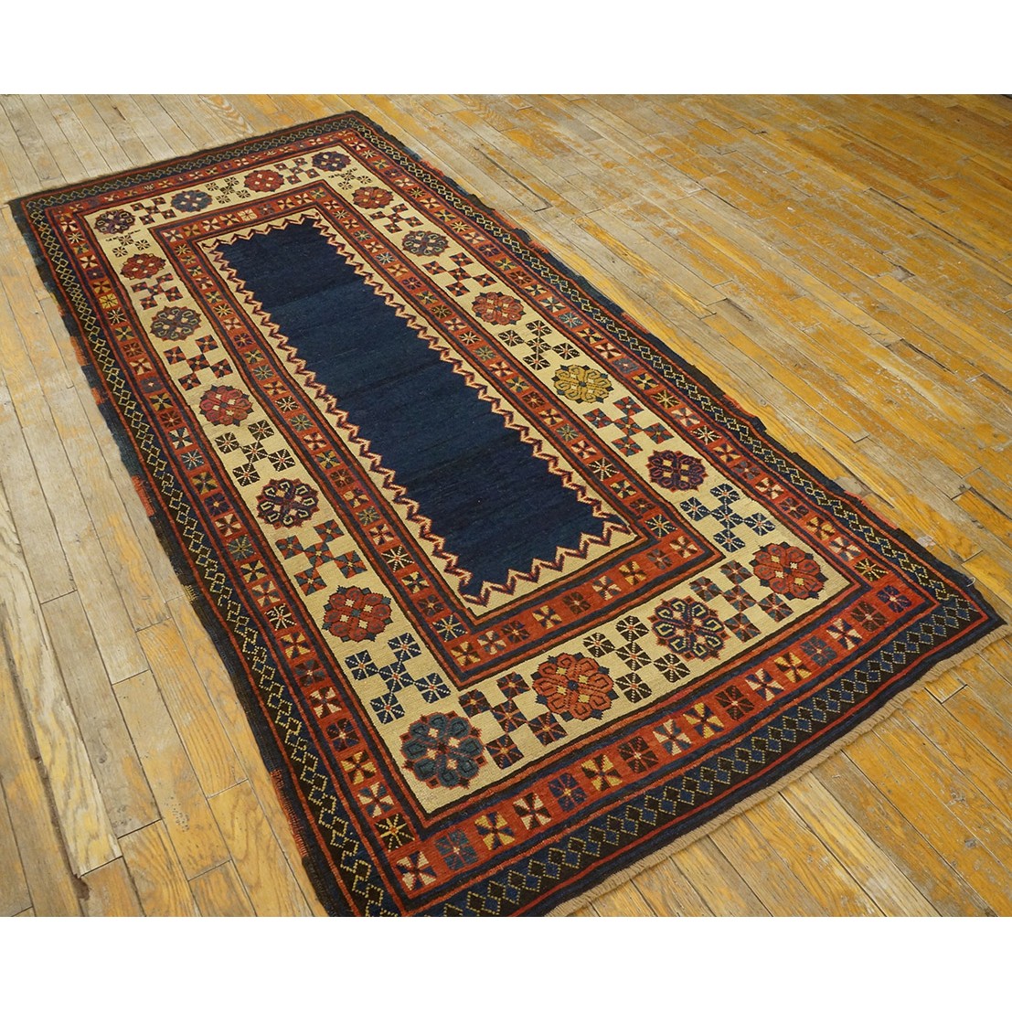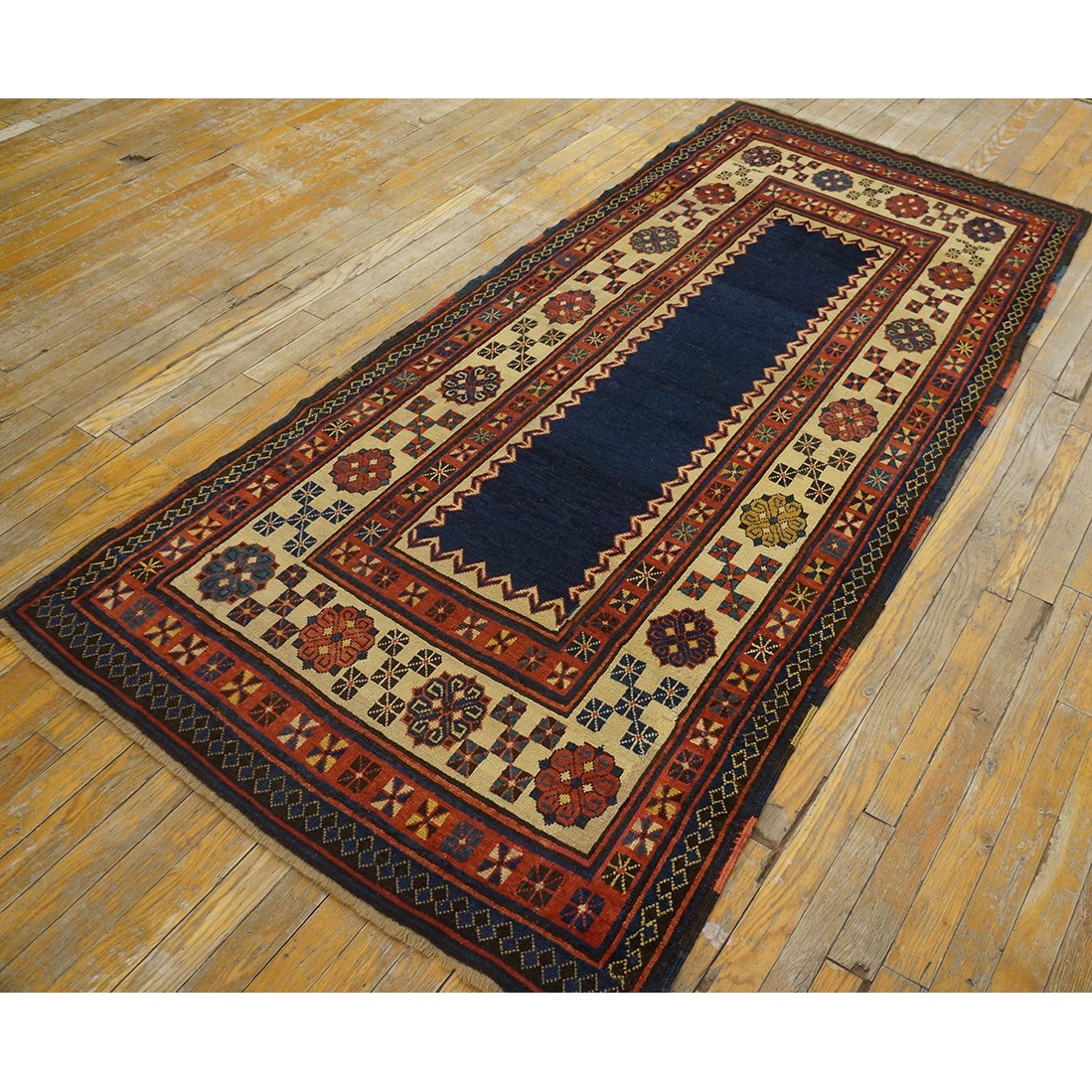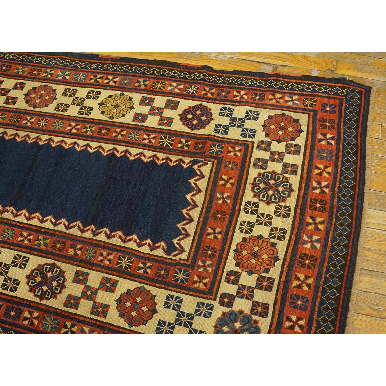 DescriptionCaucasianThis is the general heading for all rugs made in the Caucasus mountains and in the trans-Caucasus areas, north of the Arax River, and between the Black and Caspian Seas. This includes rugs from the Kazak, Karabagh, Gendje, Koghan, Talish, Akstafa, Shirvan, Baku, Kuba and hesghi districts and the variants and subtypes thereof. The rugs are usually in scatter sizes and of all wool construction, with bold colors and geometric patterns, from the 18th through 20th centuries. Prices range widely depending on rarity, color, design and condition. A strong collector market exists for the better examples. KazakThe thickly piled, boldy colored strongly geometric Caucasian rugs woven by villages in the Kars (Turkey) Tiflis (Georgia) Erivan (Armenia) triangle. Both prayer and non-directional formats abound and there are numerous subtypes depending on the town of origin as well as pattern similarities. Always popular with both collectors and decorators, the best examples were woven between 1840 and 1900 and rare exceed 6 x 10 in size. These are the most recognizable and paradigmatic of all Caucasian rugs, perennially popular in both Europe and America. | |