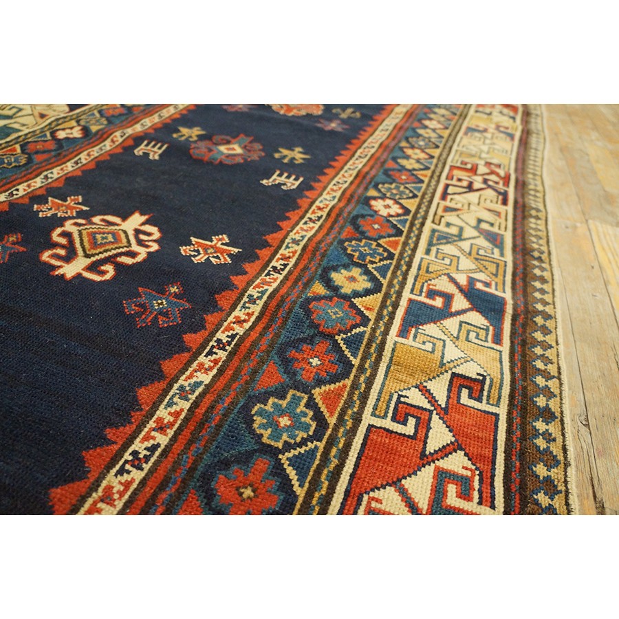 DescriptionCaucasianThis is the general heading for all rugs made in the Caucasus mountains and in the trans-Caucasus areas, north of the Arax River, and between the Black and Caspian Seas. This includes rugs from the Kazak, Karabagh, Gendje, Koghan, Talish, Akstafa, Shirvan, Baku, Kuba and hesghi districts and the variants and subtypes thereof. The rugs are usually in scatter sizes and of all wool construction, with bold colors and geometric patterns, from the 18th through 20th centuries. Prices range widely depending on rarity, color, design and condition. A strong collector market exists for the better examples. KazakThe thickly piled, boldy colored strongly geometric Caucasian rugs woven by villages in the Kars (Turkey) Tiflis (Georgia) Erivan (Armenia) triangle. Both prayer and non-directional formats abound and there are numerous subtypes depending on the town of origin as well as pattern similarities. Always popular with both collectors and decorators, the best examples were woven between 1840 and 1900 and rare exceed 6 x 10 in size. These are the most recognizable and paradigmatic of all Caucasian rugs, perennially popular in both Europe and America. | |