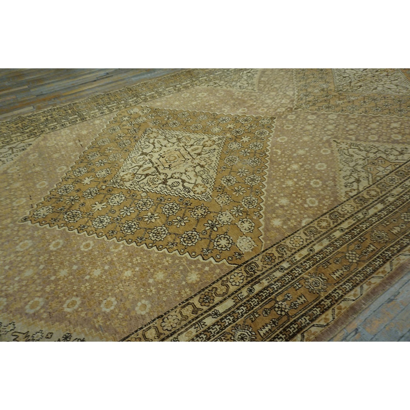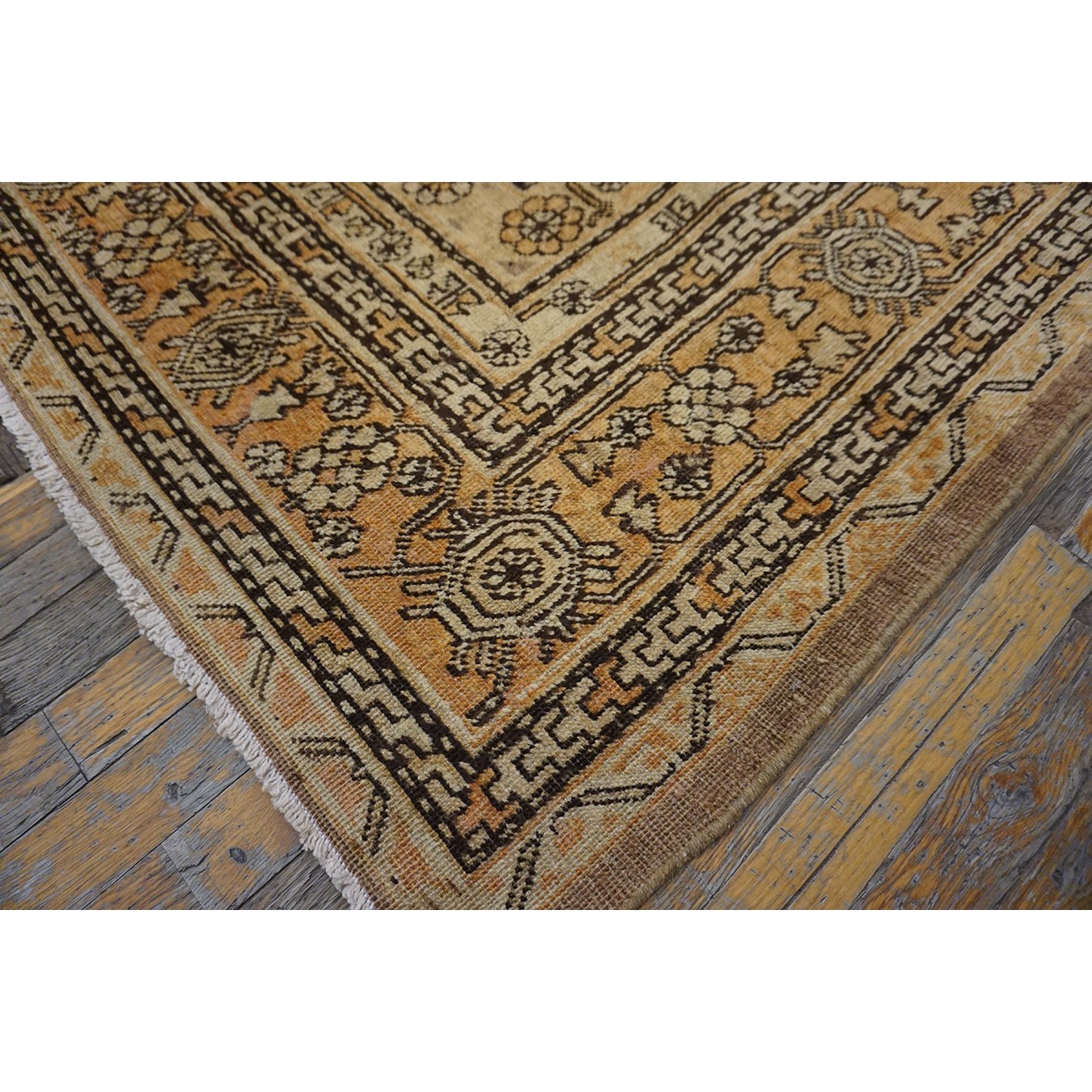 DescriptionChineseCarpets made in China proper. See entries Ningshia, Peking, Art Deco. KhotanThe innermost of the trio of Silk Road cities (with Kashgar and Yarkand), Khotan weaves carpets mostly in the 6 x 12 size with recognizable Chinese iconography, but with central Asian elements and in brighter colors with distinct wool and handle. Later examples use synthetic dyes which have been treated to mellow the colors. Although this later period is not collectible, it is much in demand decoratively. A few smaller rugs and chair seat (2 square) are also encountered. | |