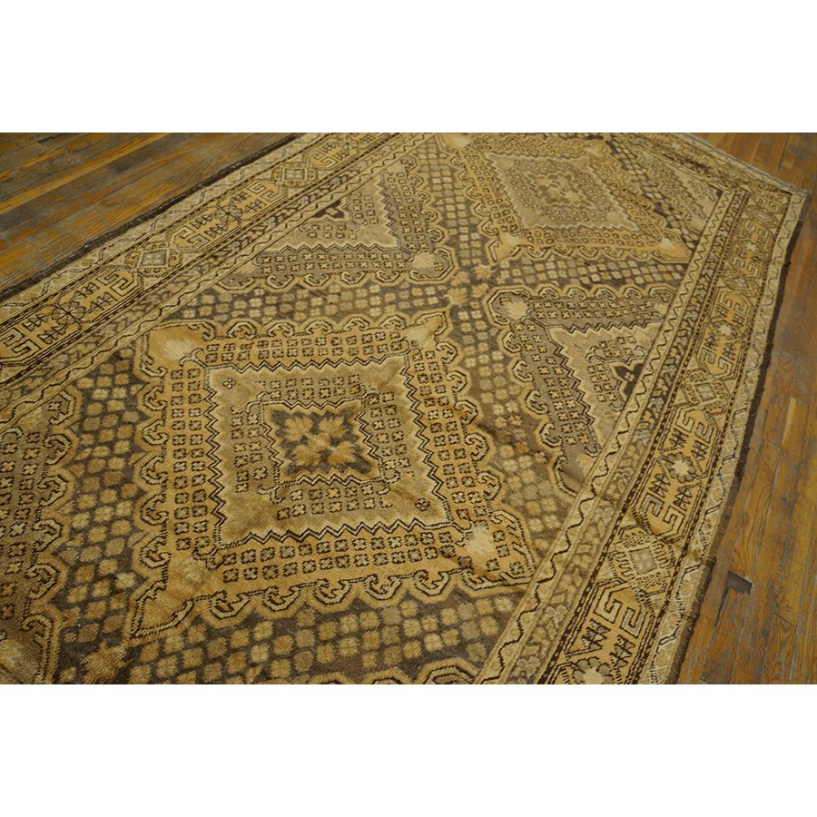 The innermost of the trio of Silk Road cities (with Kashgar and Yarkand), Khotan weaves carpets mostly in the 6’ x 12’ size with recognizable Chinese iconography, but with central Asian elements and in brighter colors with distinct wool and handle. Later examples use synthetic dyes which have been treated to mellow the colors. Although this later period is not collectible, it is much in demand decoratively. A few smaller rugs and chair seat (2’ square) are also encountered.