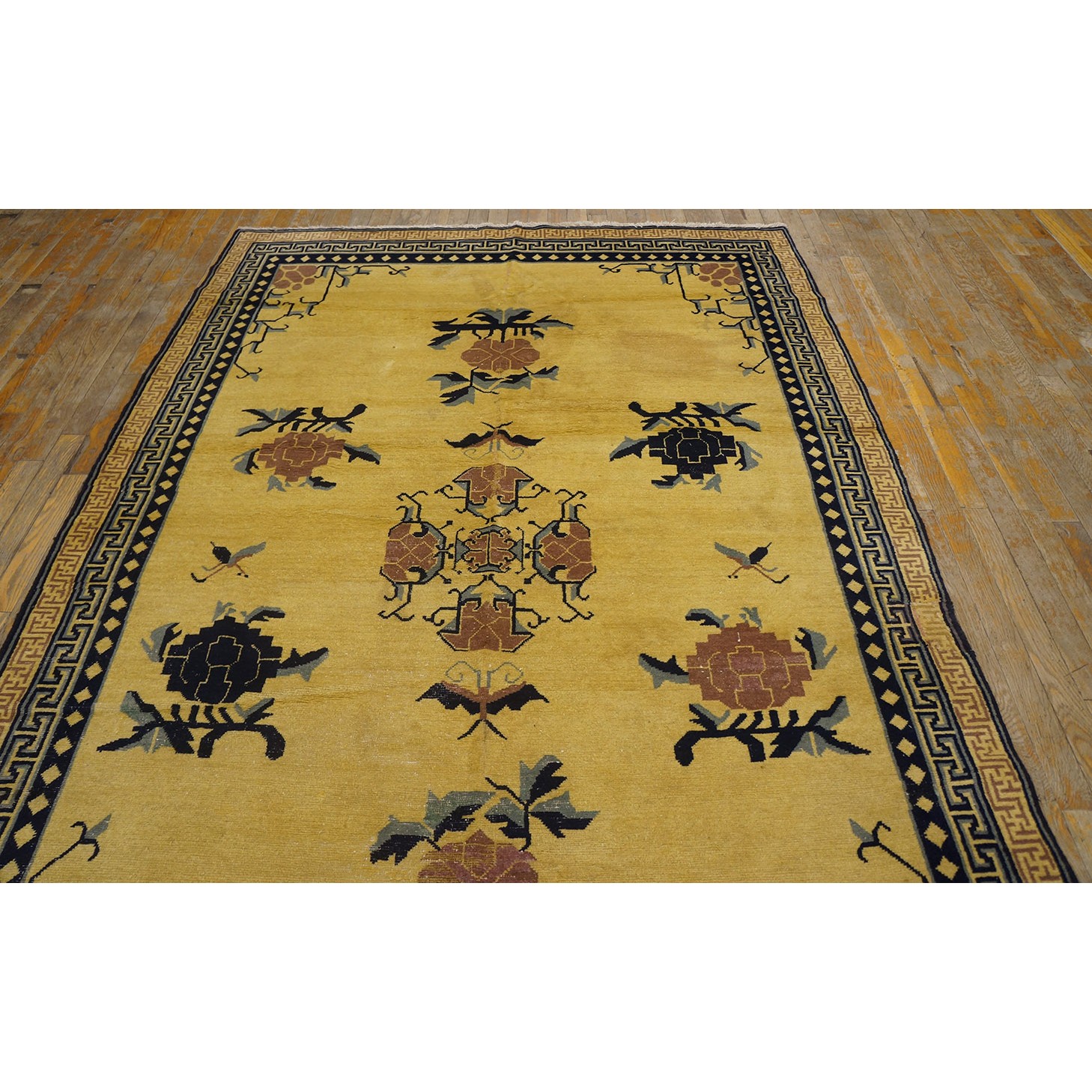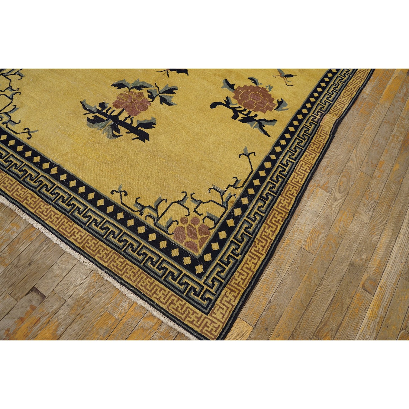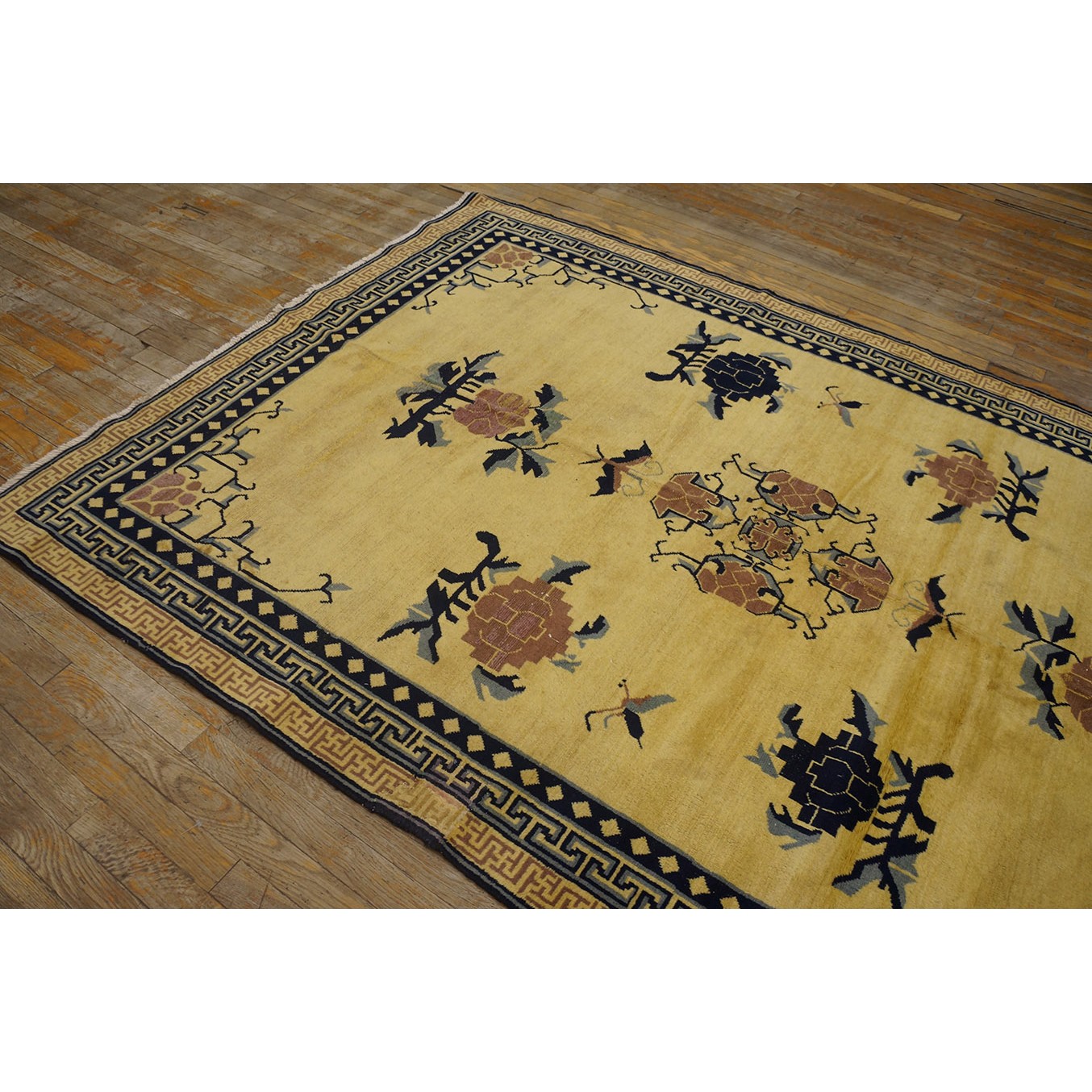 DescriptionChineseCarpets made in China proper. See entries Ningshia, Peking, Art Deco. KhotanThe innermost of the trio of Silk Road cities (with Kashgar and Yarkand), Khotan weaves carpets mostly in the 6 x 12 size with recognizable Chinese iconography, but with central Asian elements and in brighter colors with distinct wool and handle. Later examples use synthetic dyes which have been treated to mellow the colors. Although this later period is not collectible, it is much in demand decoratively. A few smaller rugs and chair seat (2 square) are also encountered. | |