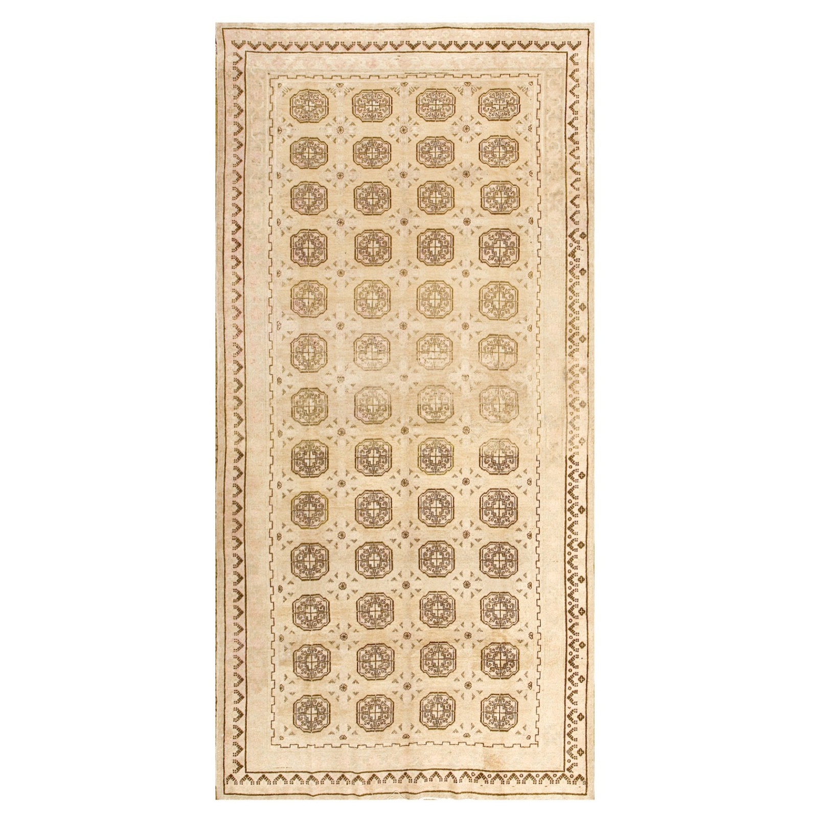 DescriptionChineseCarpets made in China proper. See entries Ningshia, Peking, Art Deco. KhotanThe innermost of the trio of Silk Road cities (with Kashgar and Yarkand), Khotan weaves carpets mostly in the 6 x 12 size with recognizable Chinese iconography, but with central Asian elements and in brighter colors with distinct wool and handle. Later examples use synthetic dyes which have been treated to mellow the colors. Although this later period is not collectible, it is much in demand decoratively. A few smaller rugs and chair seat (2 square) are also encountered. | |