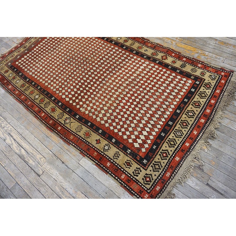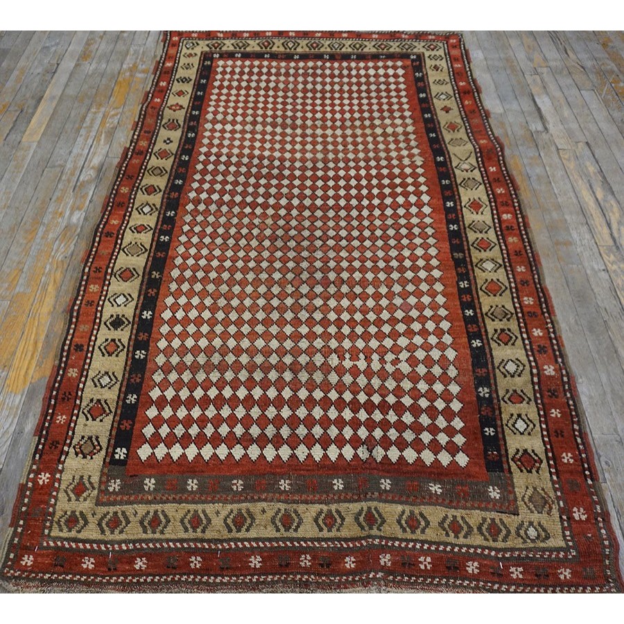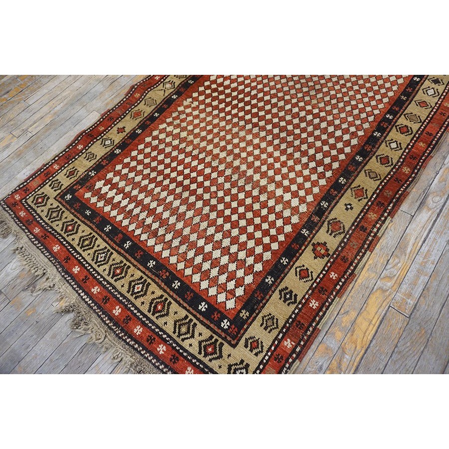 19th Century W. Persian Kurdish Checkerboard Pattern Carpet