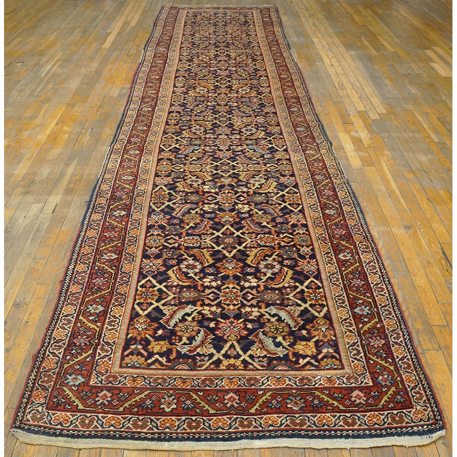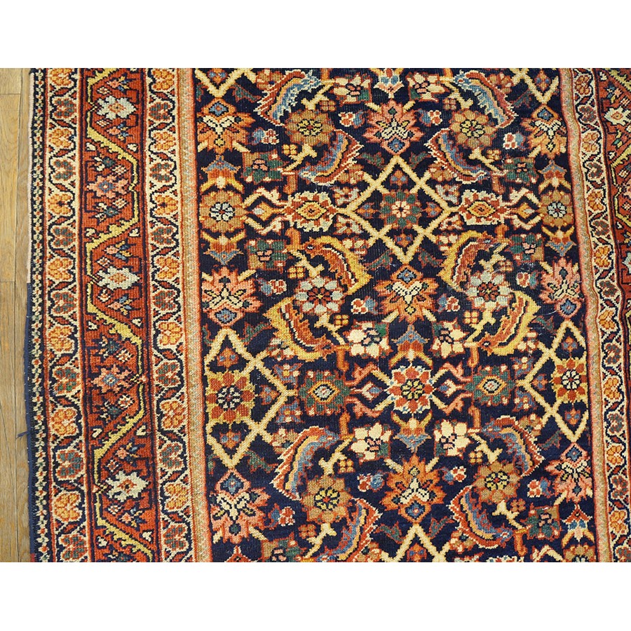 DescriptionMahalPrecisely, this is the intermediate grade of carpet between Sarouks and Mushkabads from the Ferahan plain area. Arak Province, western Persia. Woven in large quantities in room sizes, the patterns tend to be overall repeats in traditional and innovative styles. Those pieces with slightly softer colors and bigger, bolder patterns are often called Ziegler Mahals. For the late 19th century onwards, production was very substantial, thousands of carpets per year, and prices for most pieces are moderate. The usual jewel tones predominate unless the piece has been exposed to light and washing, or to an initial chemical treatment. Mahals are popular everywhere and the overall patterns make them excellent for dining rooms. | |