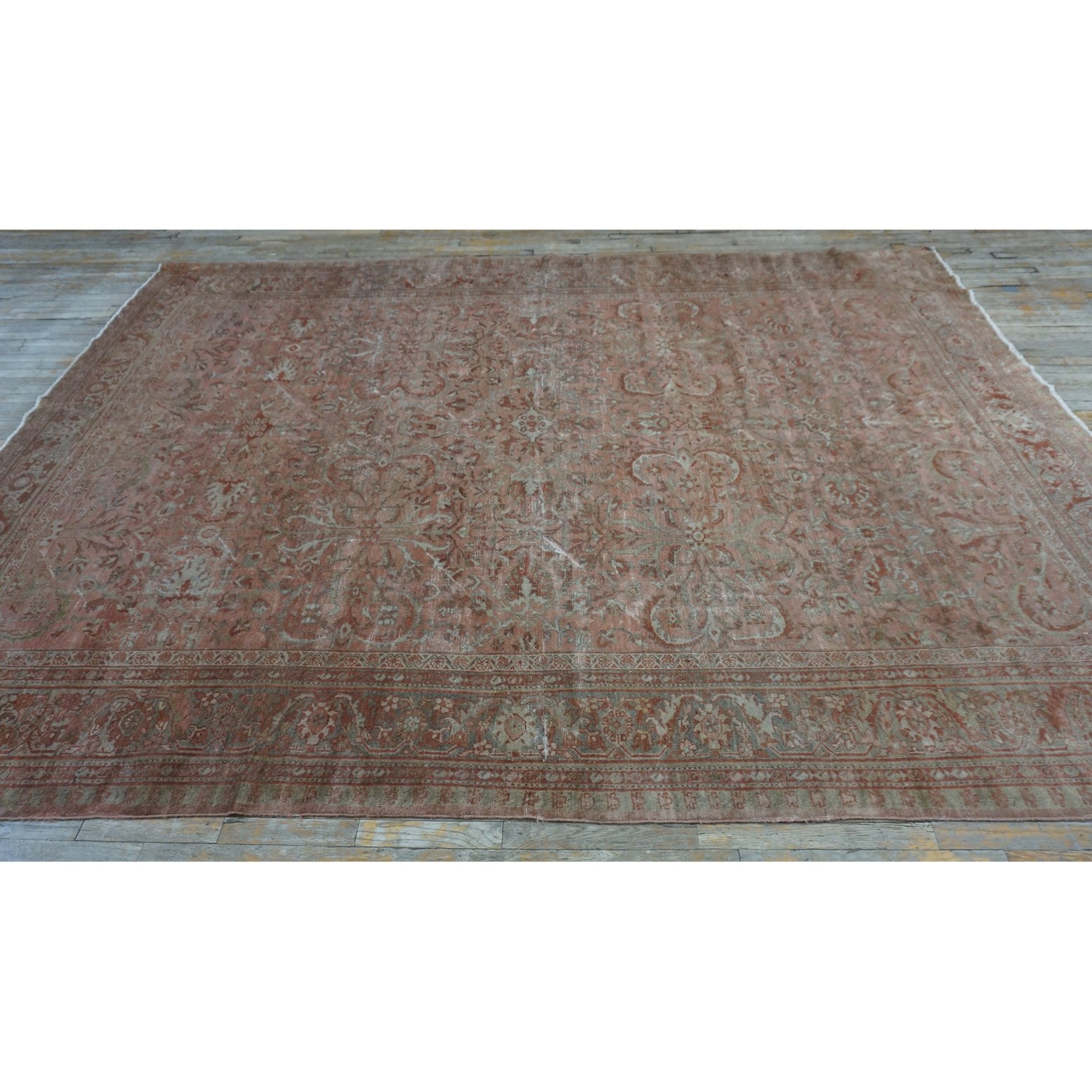 DescriptionMahalPrecisely, this is the intermediate grade of carpet between Sarouks and Mushkabads from the Ferahan plain area. Arak Province, western Persia. Woven in large quantities in room sizes, the patterns tend to be overall repeats in traditional and innovative styles. Those pieces with slightly softer colors and bigger, bolder patterns are often called Ziegler Mahals. For the late 19th century onwards, production was very substantial, thousands of carpets per year, and prices for most pieces are moderate. The usual jewel tones predominate unless the piece has been exposed to light and washing, or to an initial chemical treatment. Mahals are popular everywhere and the overall patterns make them excellent for dining rooms. | |