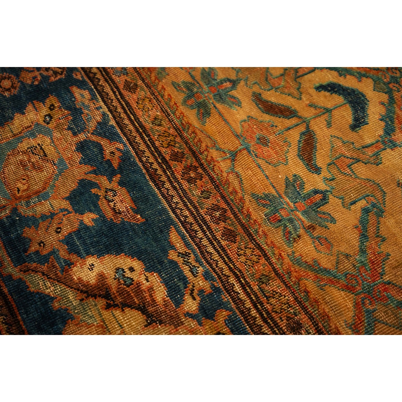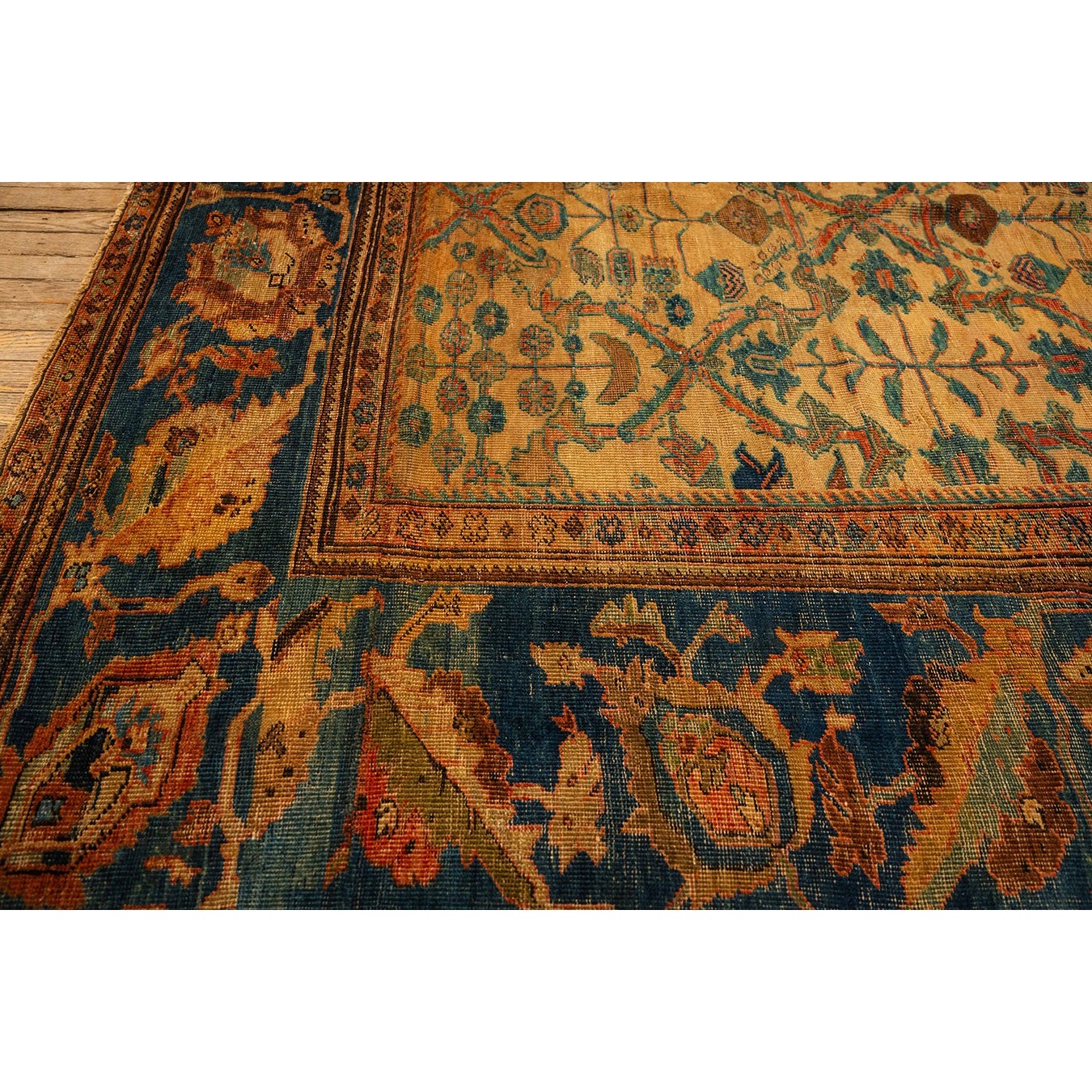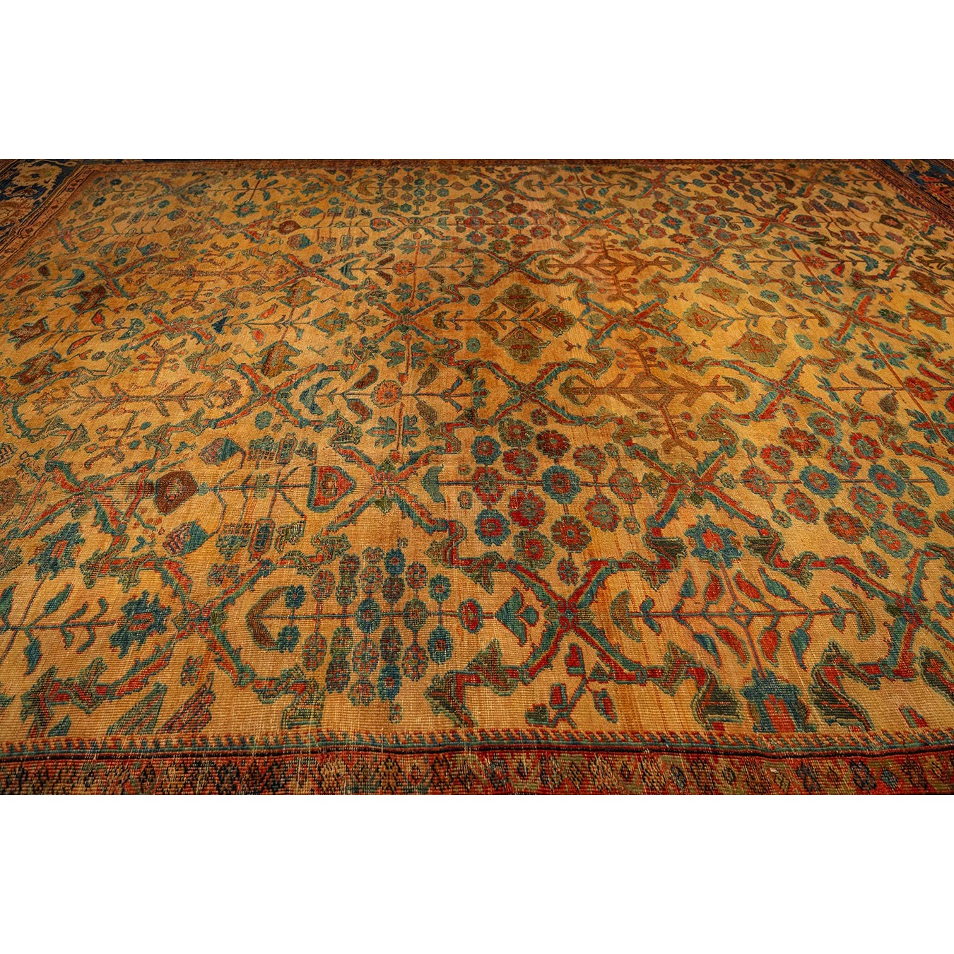 DescriptionMahalPrecisely, this is the intermediate grade of carpet between Sarouks and Mushkabads from the Ferahan plain area. Arak Province, western Persia. Woven in large quantities in room sizes, the patterns tend to be overall repeats in traditional and innovative styles. Those pieces with slightly softer colors and bigger, bolder patterns are often called Ziegler Mahals. For the late 19th century onwards, production was very substantial, thousands of carpets per year, and prices for most pieces are moderate. The usual jewel tones predominate unless the piece has been exposed to light and washing, or to an initial chemical treatment. Mahals are popular everywhere and the overall patterns make them excellent for dining rooms. | |