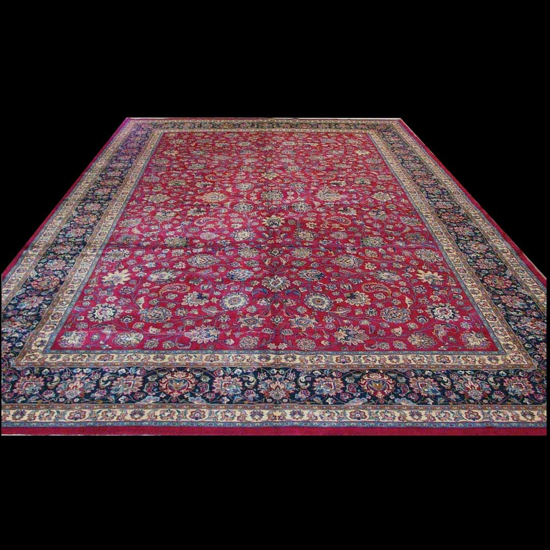 DescriptionMashadThe largest city in Khorassan Province, northeast Iran. The carpet industry there is a late 19th century creation of relocated Tabriz merchants. Both Turkish (Turkhaff) and Persian-(Farsihaft) knotted rugs are produced in large sizes up to 20 x 30, in rich colors including a mulberry. Red designs are strictly curvilinear and often large animals and birds appear. Open fields with medallion and corner ornamentation are common. The texture is thick and heavy. The use of jufti knots allows rapid production. In the 20th century, several renowned workshops (Emogli, | |
